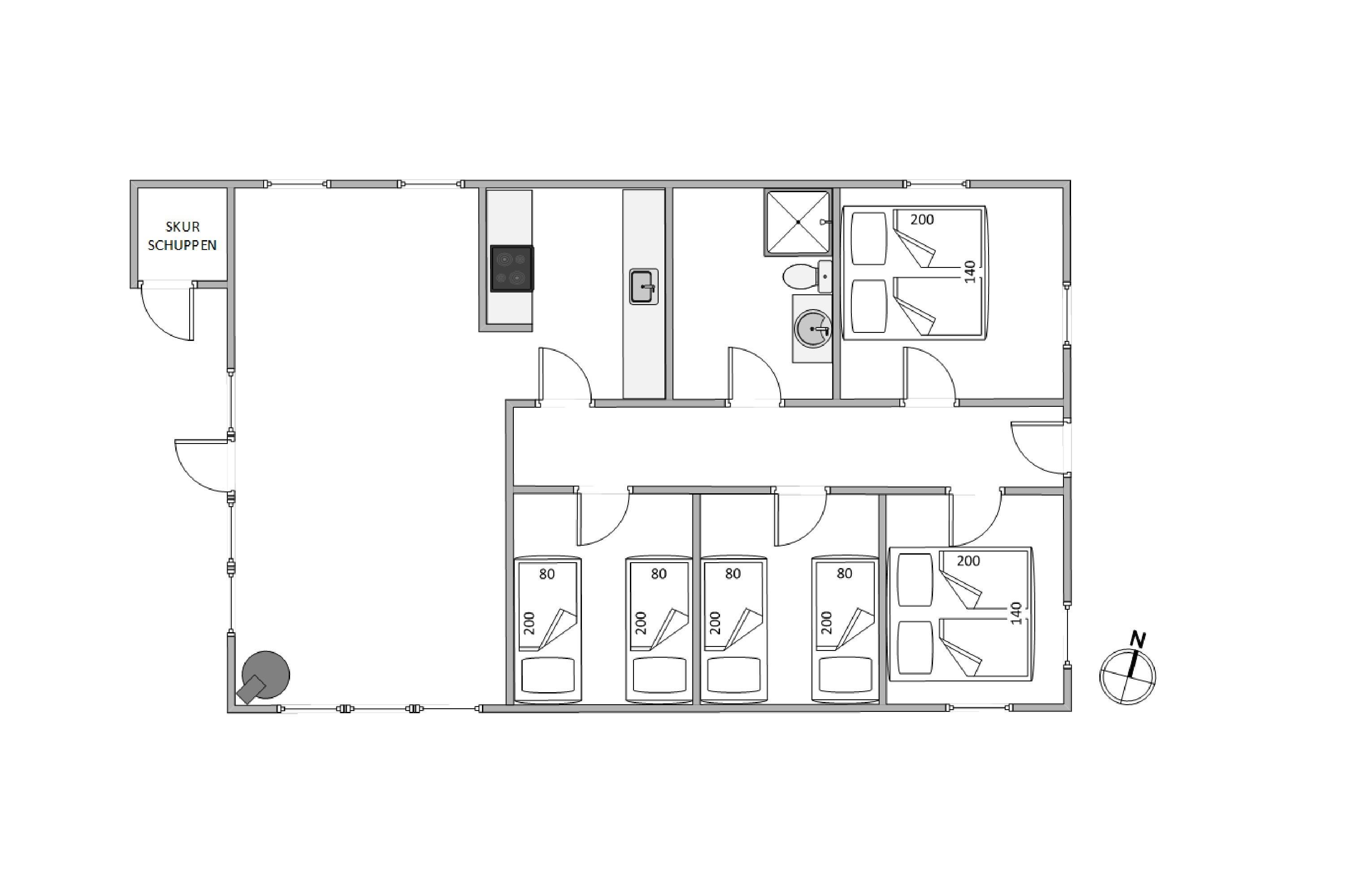 Sommerhuset har fire dejlige soveværelser, der sikrer en god nattesøvn for alle, og sikrer velvære og afslapning. Der er også gulvvarme på badeværelset for ekstra komfort på kolde dage. Hver en krog i huset er lavet med omhu for at sikre, at jeres ophold bliver så behageligt som muligt for alle familiemedlemmer.