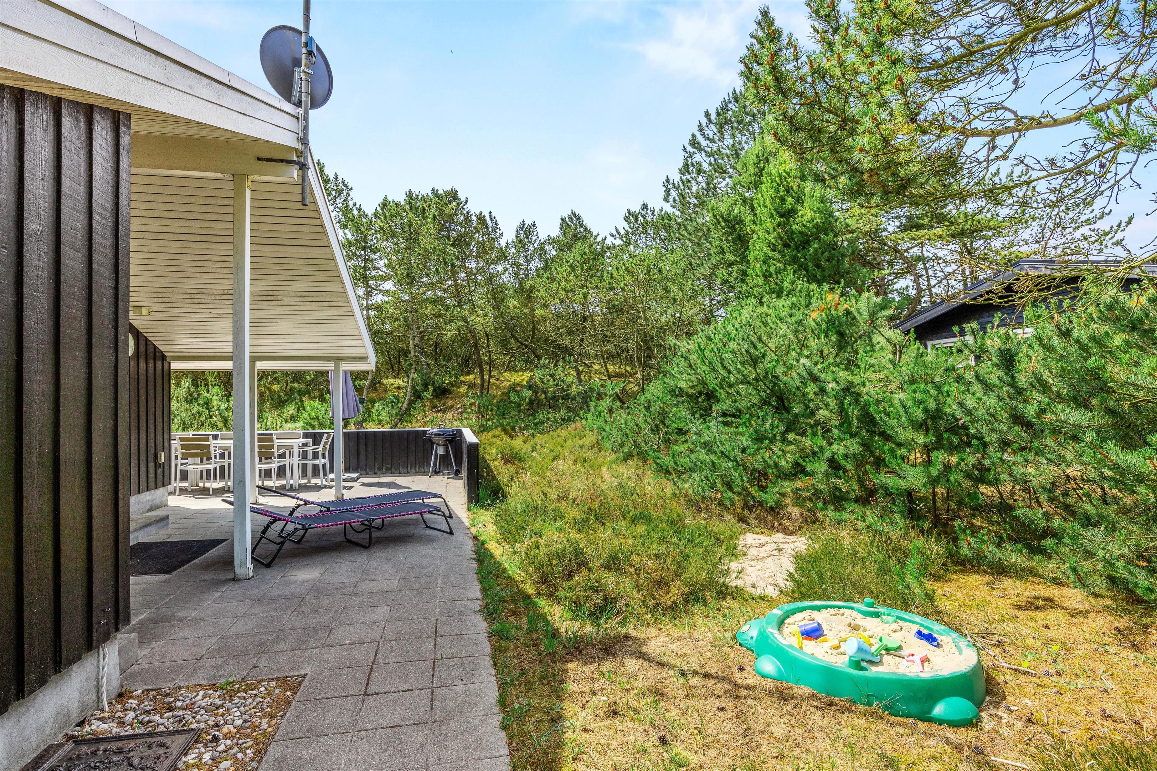 For de små er der en gynge og en sandkasse i haven med utallige legemuligheder og uforglemmelige oplevelser. Mens børnene boltrer sig i haven, kan du nyde solen eller arrangere hyggelige grillmiddage på terrassen, der både har åbne og afskærmede områder. Udnyt det store grundareal til at udforske naturen eller bare slappe af uforstyrret i haven.