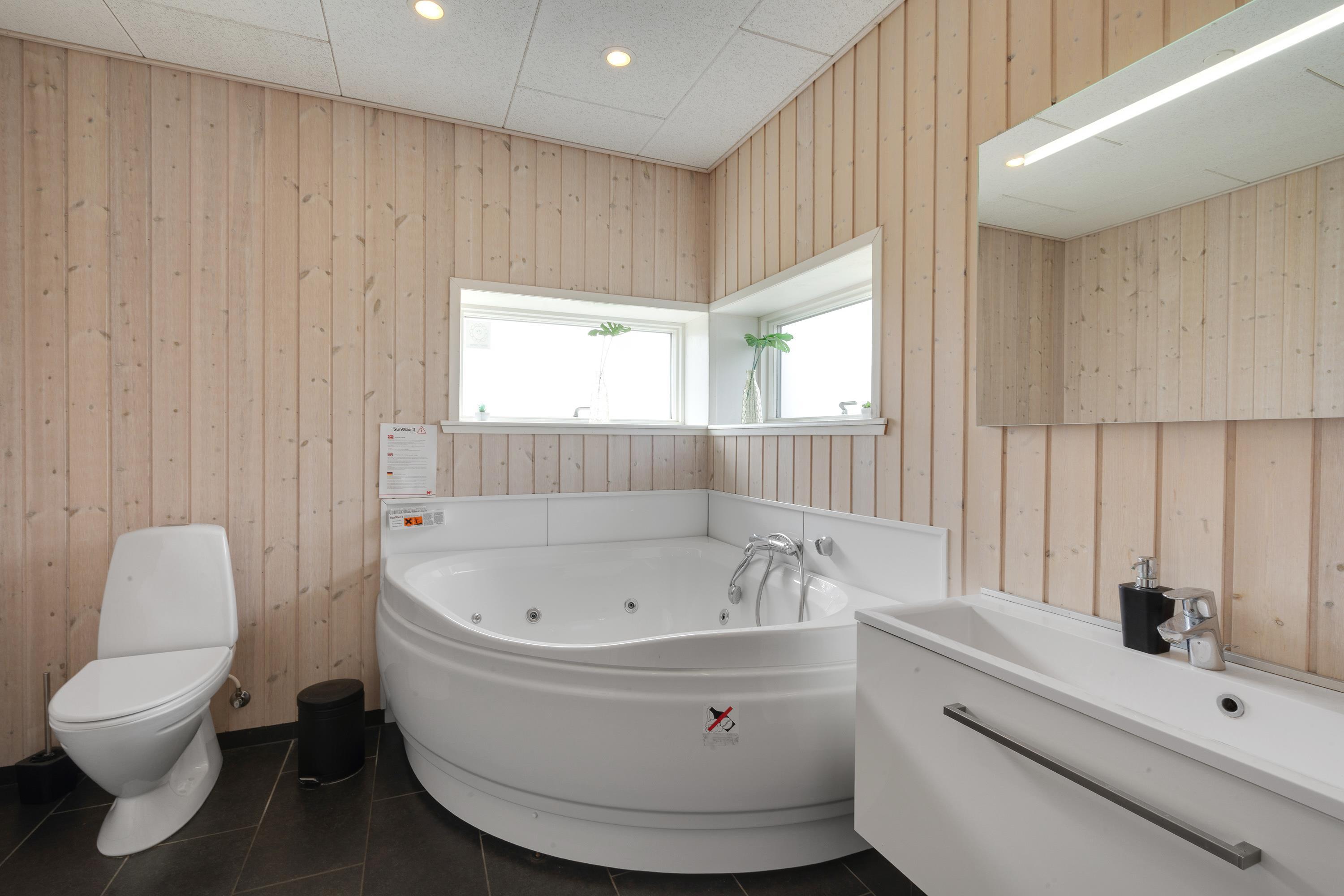 I sommerhuset er der afslapning for alle. Om I foretrækker at sidde og slappe af i et boblende spabad eller at sætte jer til rette i en varm sauna, så har I muligheden for det her. Begge dele finder I på det store af sommerhusets to badeværelser.