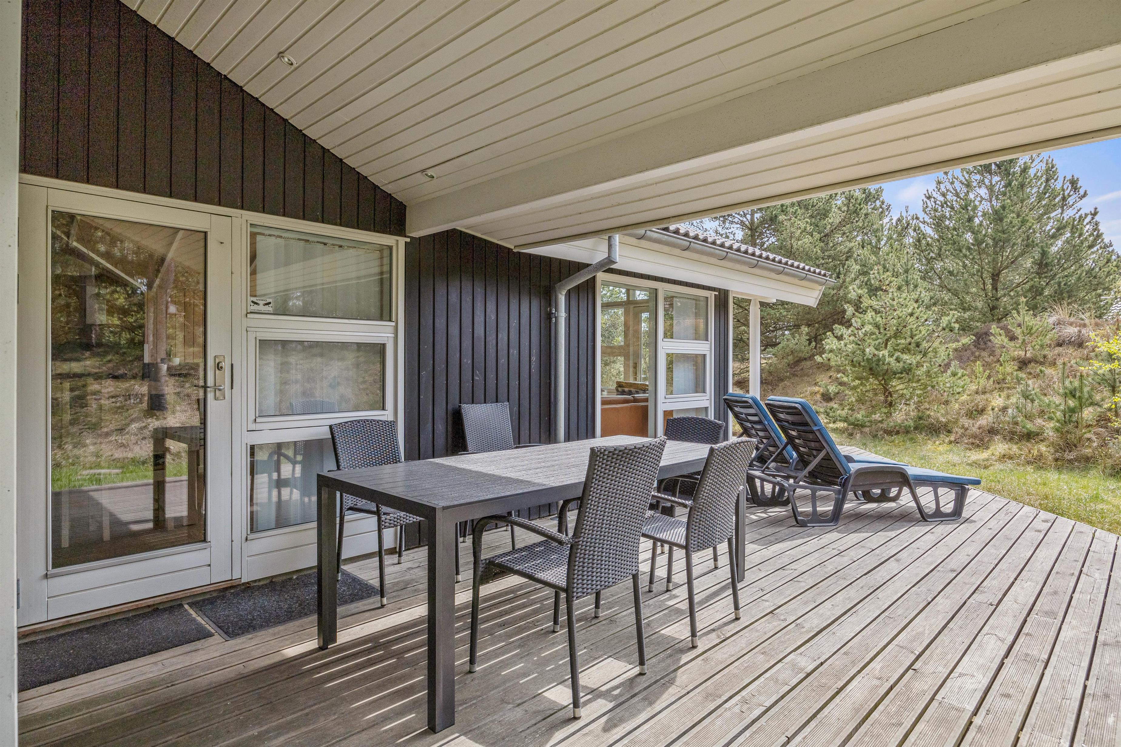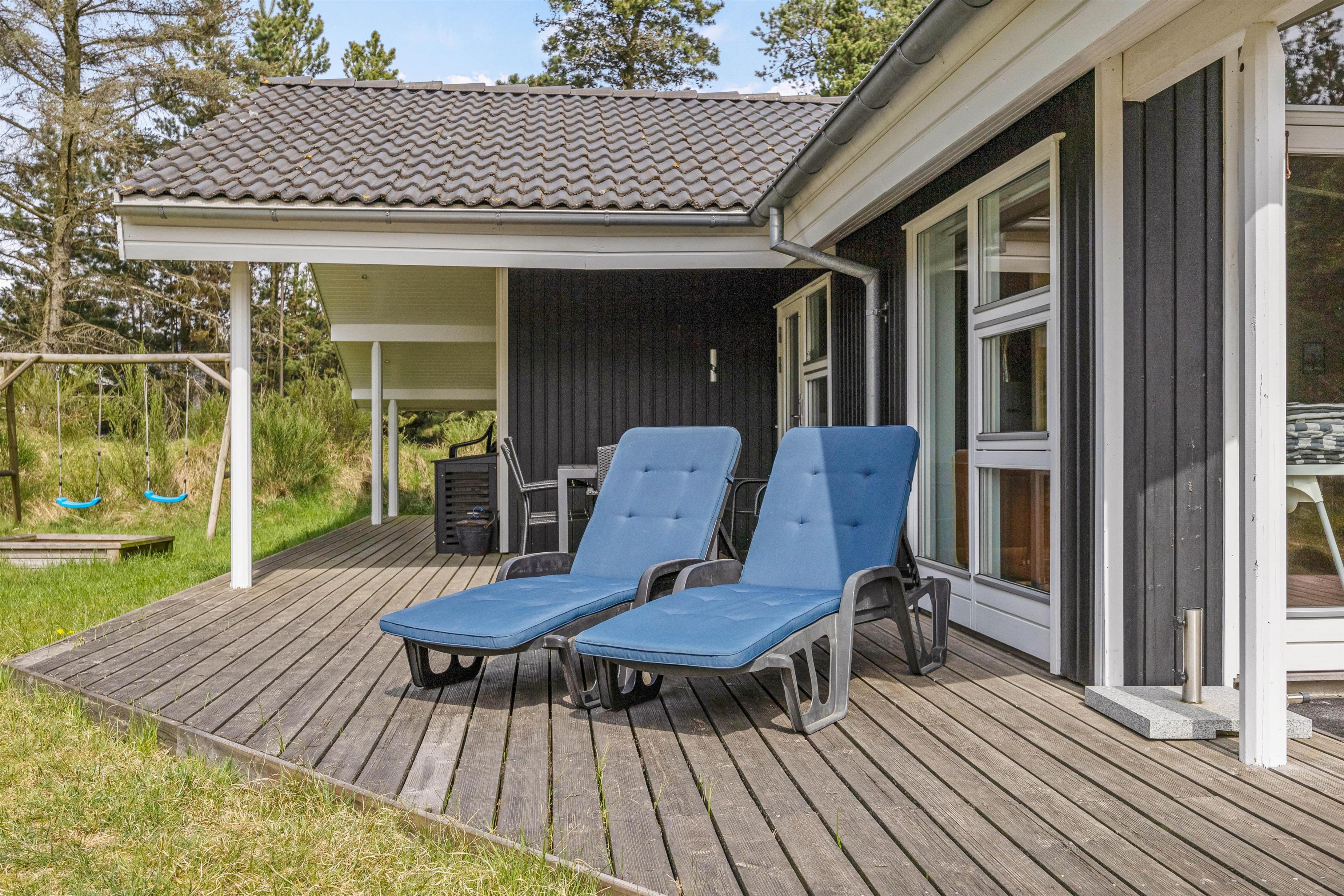 På den beskyttede grund har jeres børn masser af plads til at lege og boltre sig i husets sandkasse eller på gyngestativet. I mellemtiden kan I gøre det behageligt på den delvist overdækkede træterrasse i liggestolene eller havemøblerne, hvorfra I kan holde øje med de mindste.