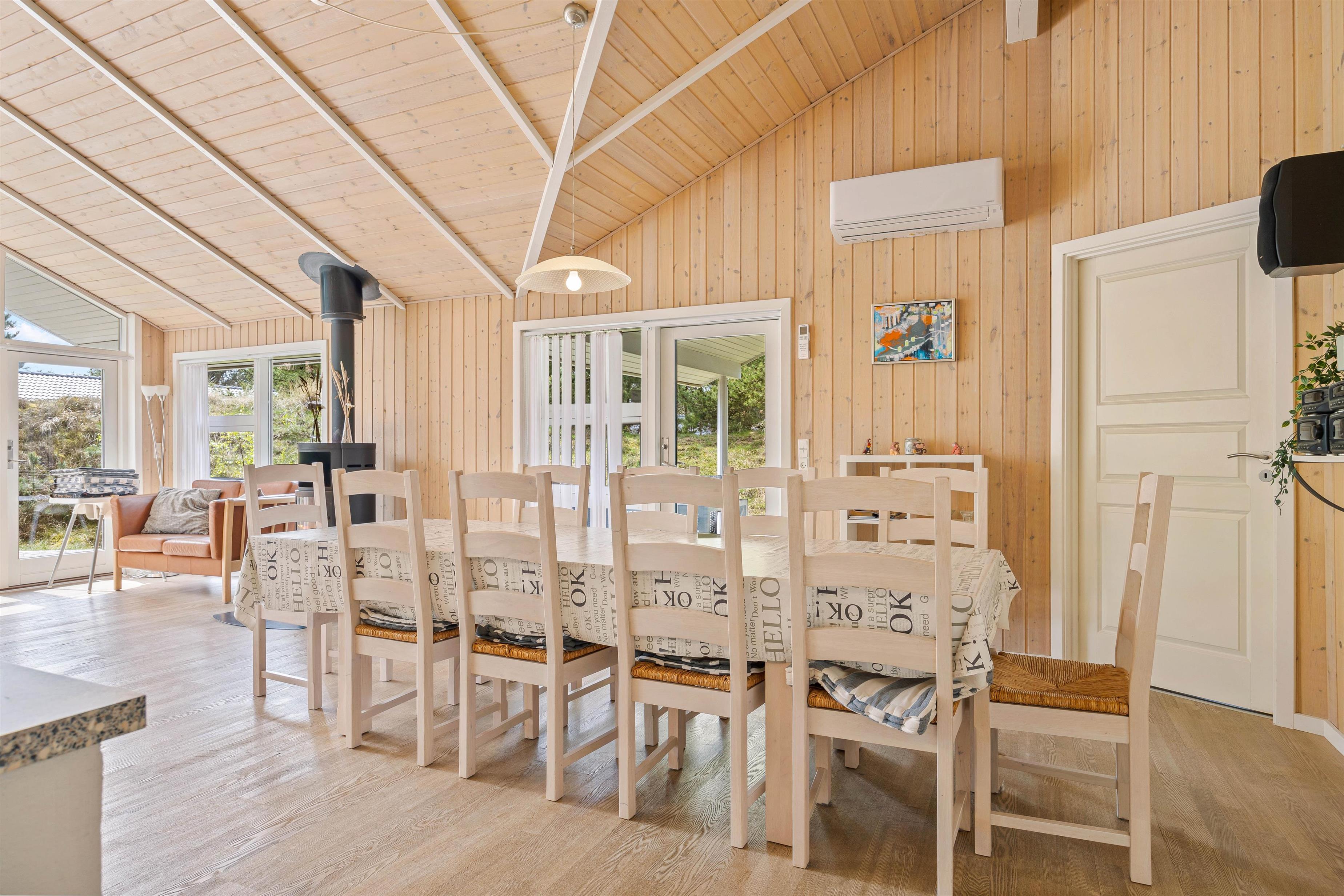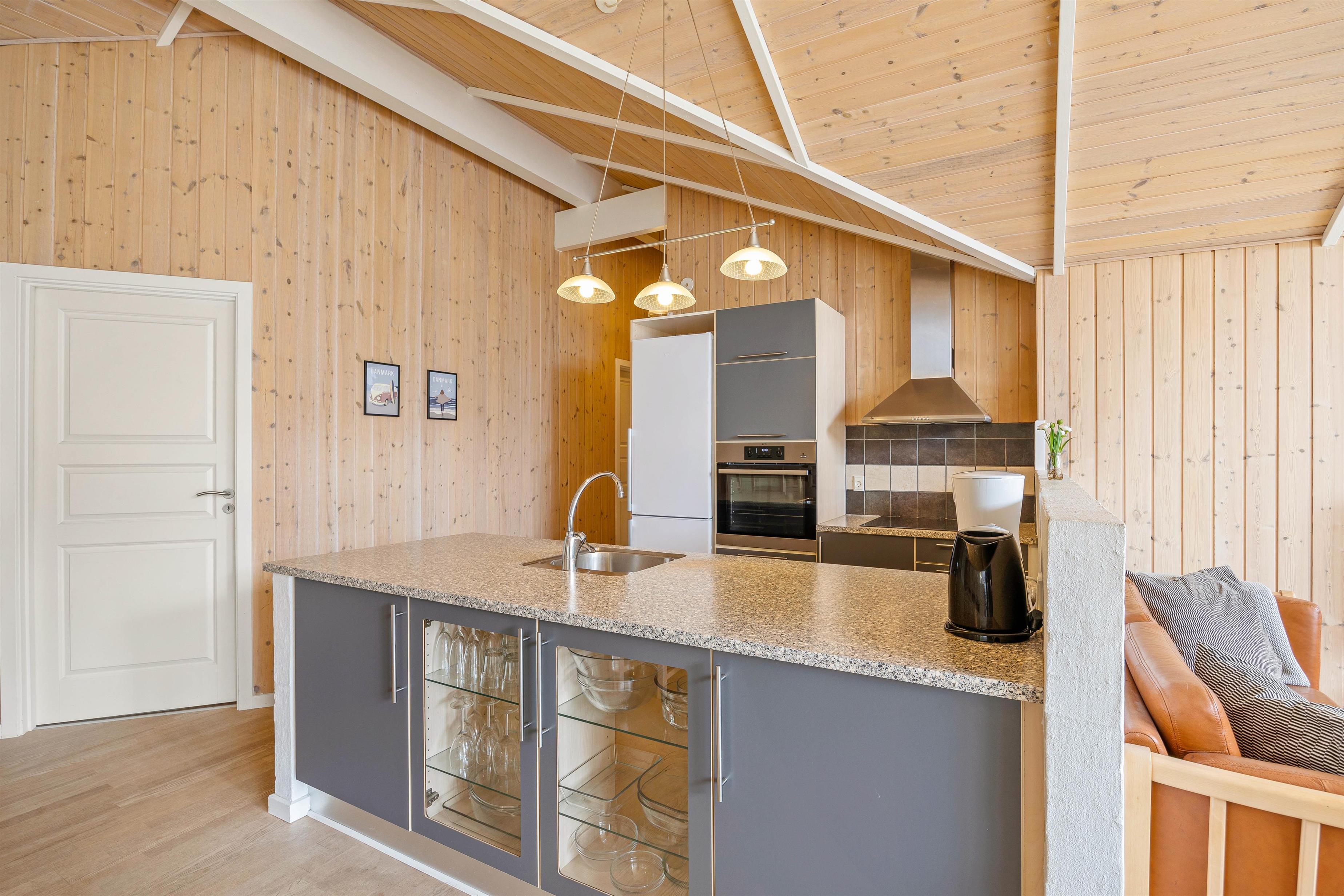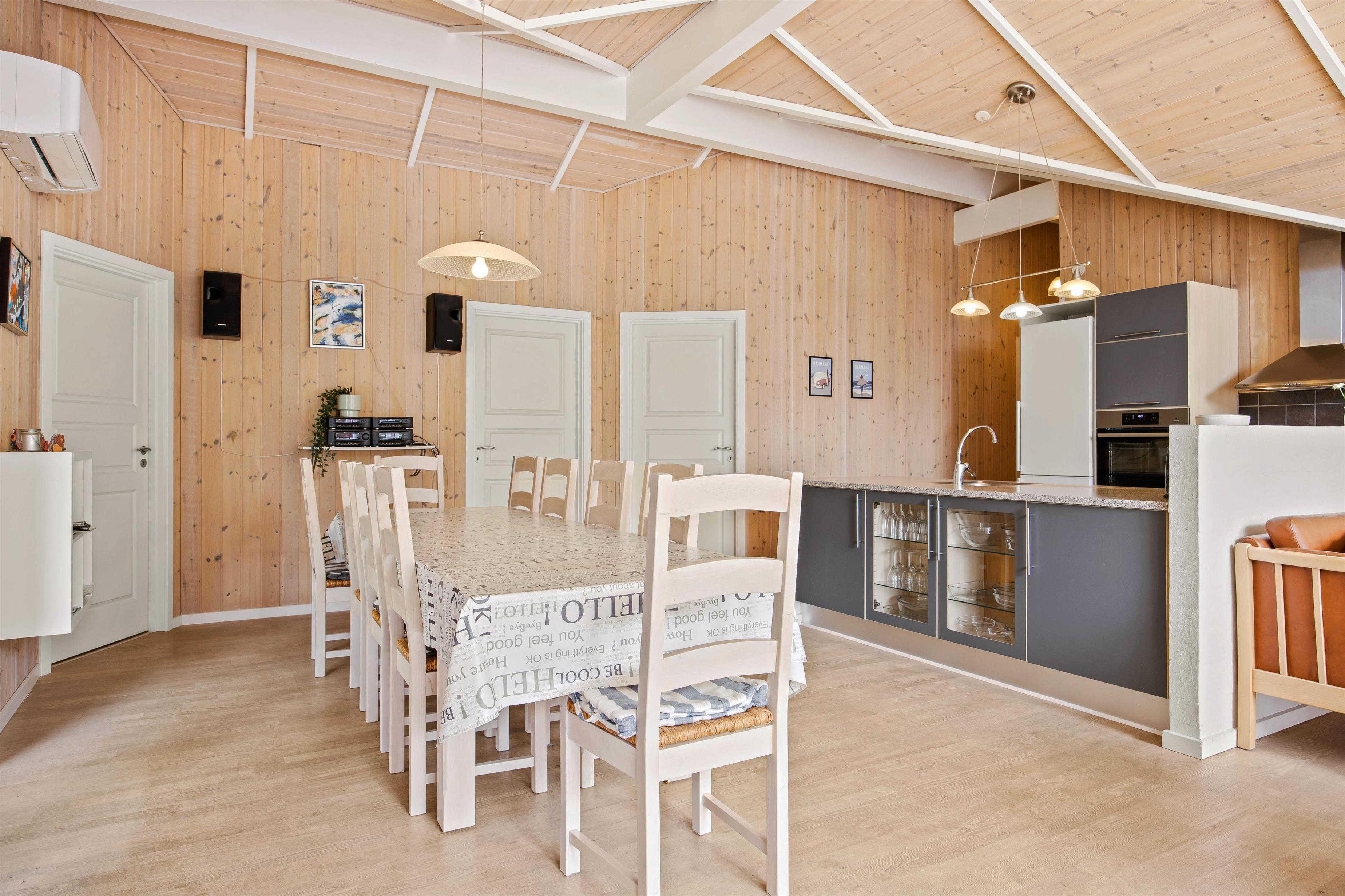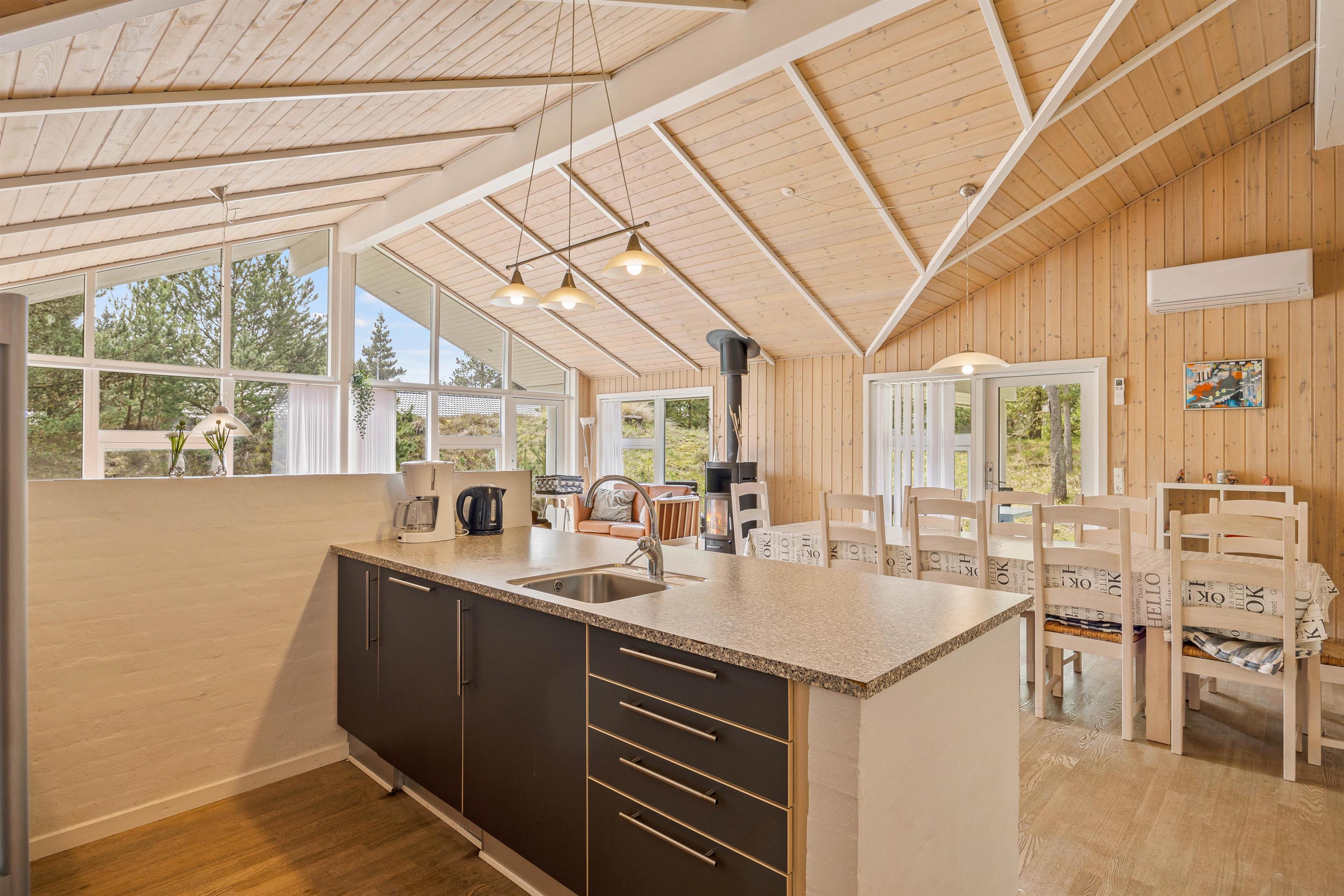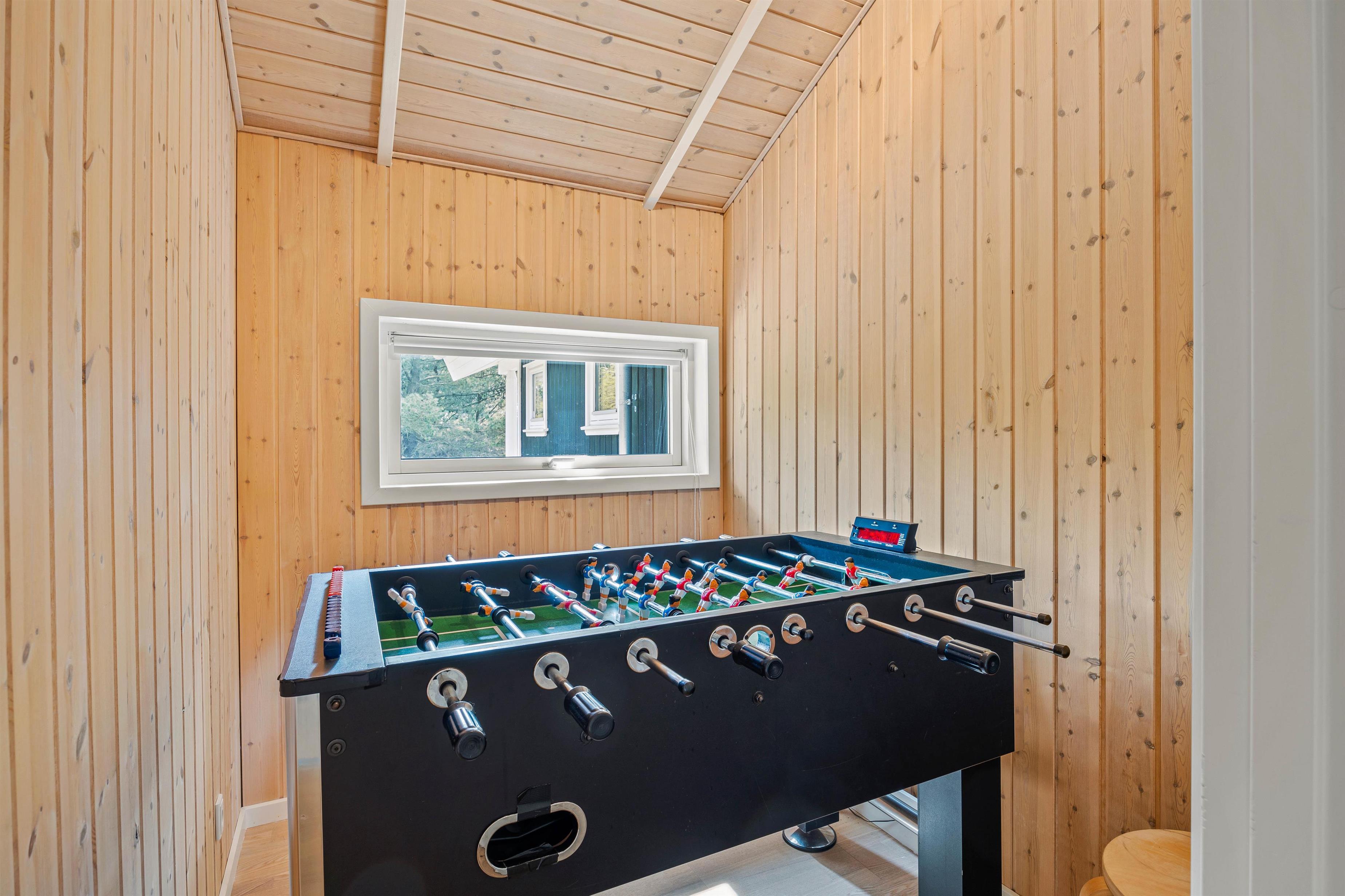 I køkkenalrummet kan I alle samles om hygge og samvær med hinanden. Her kan I lave mad sammen og nyde et måltid rundt om køkkenbordet. Om aftenen kan I synke ned i de behagelige møbler og se en god film hele ferieflokken. I kan samtidig tænde op i brændeovnen, som kan sprede hygge og ægte feriehusstemning med de knitrende flammer i baggrunden. Hvis I keder jer, kan I også spille bordfodbold og kåre familiens mester.