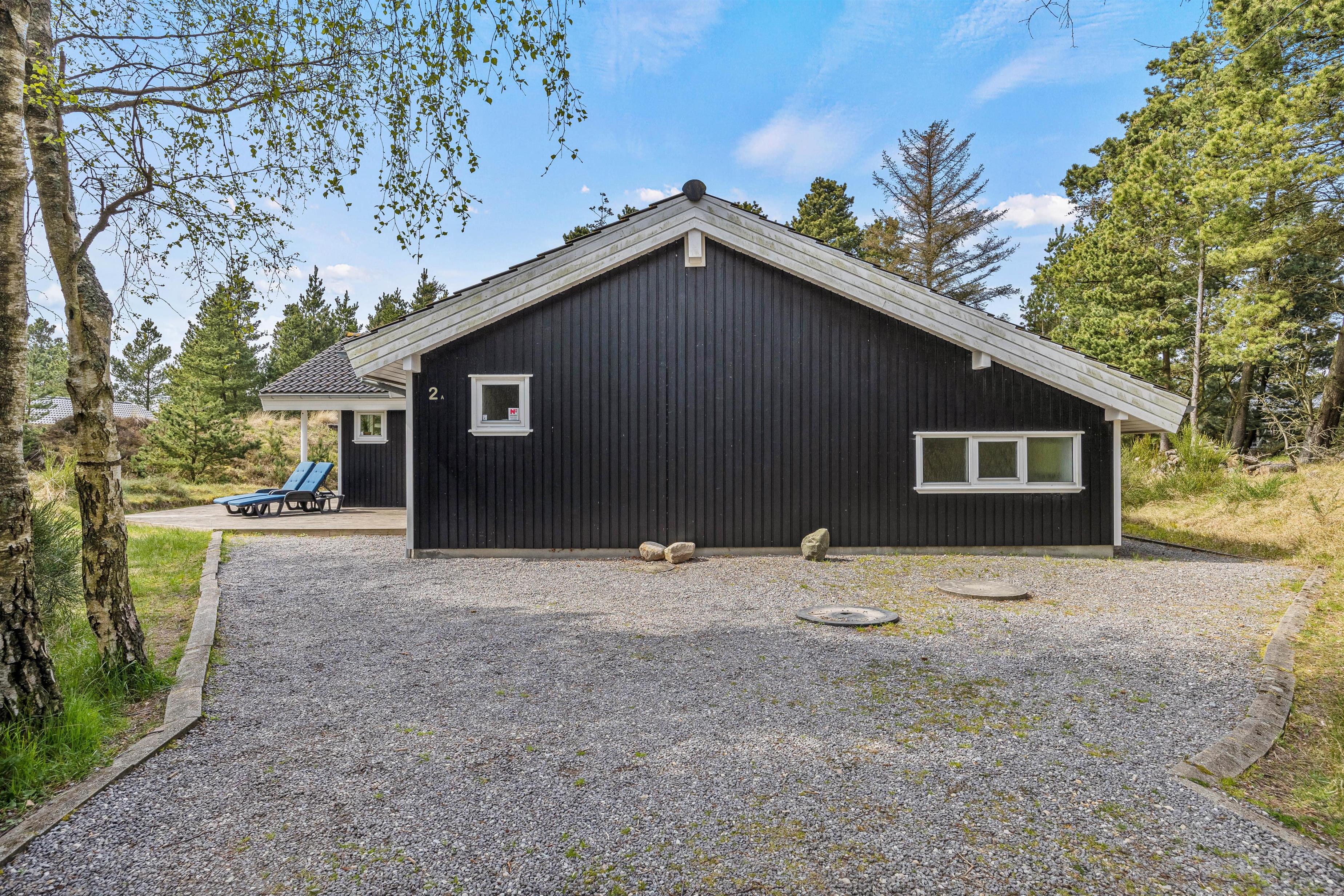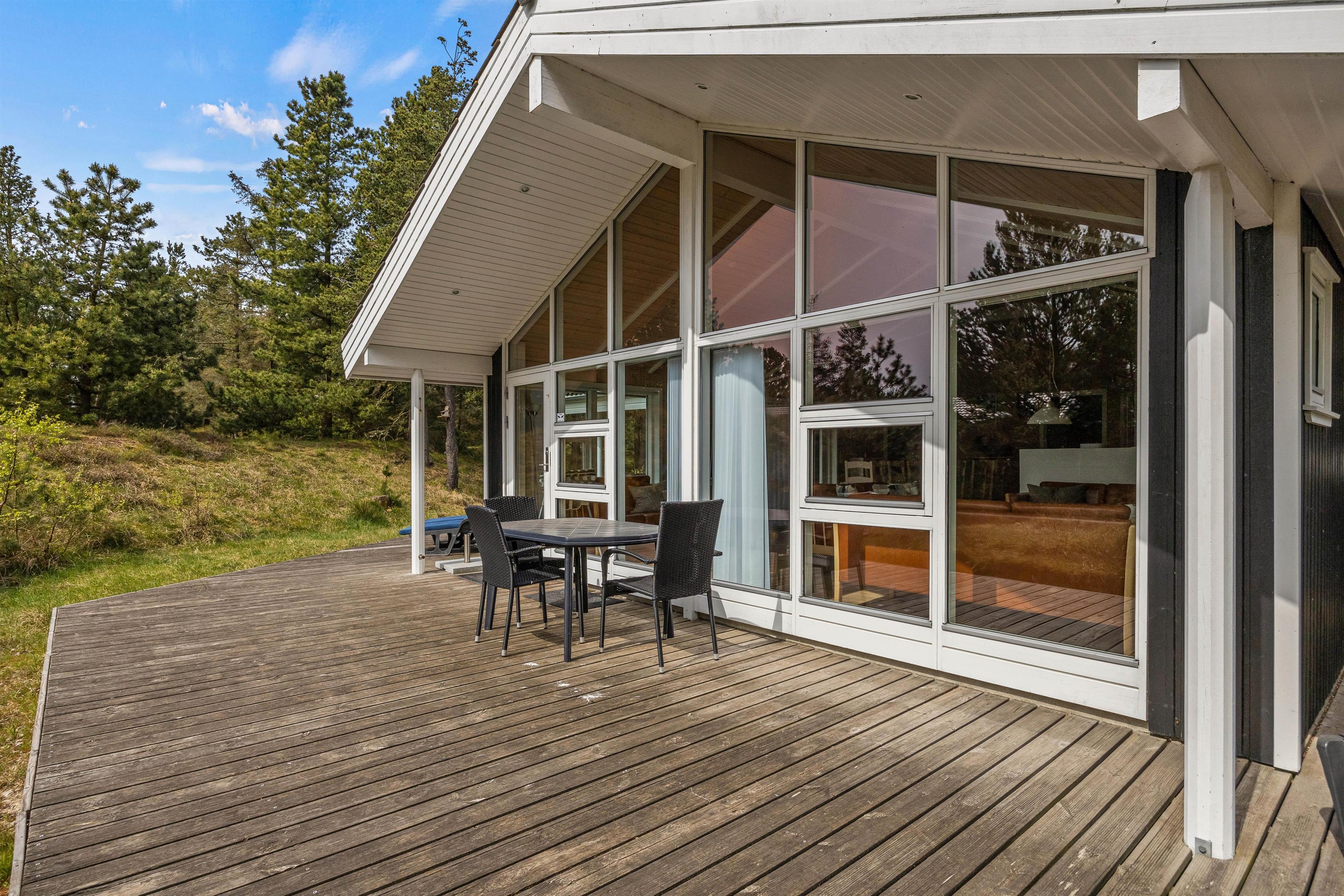 Dette hyggelige feriehus med højt til loftet og en stor vinduesfront ligger på Port Arthursvej 2A i Blåvand. Det er et smukt firestjernet hus med både sauna og spa, hvor I kan tilbringe en afslappende ferie sammen med jeres venner eller to familier. I kan også tage jeres hund med. Udenfor er der både gynge og sandkasse til rådighed, som de mindste kan lege frit på.