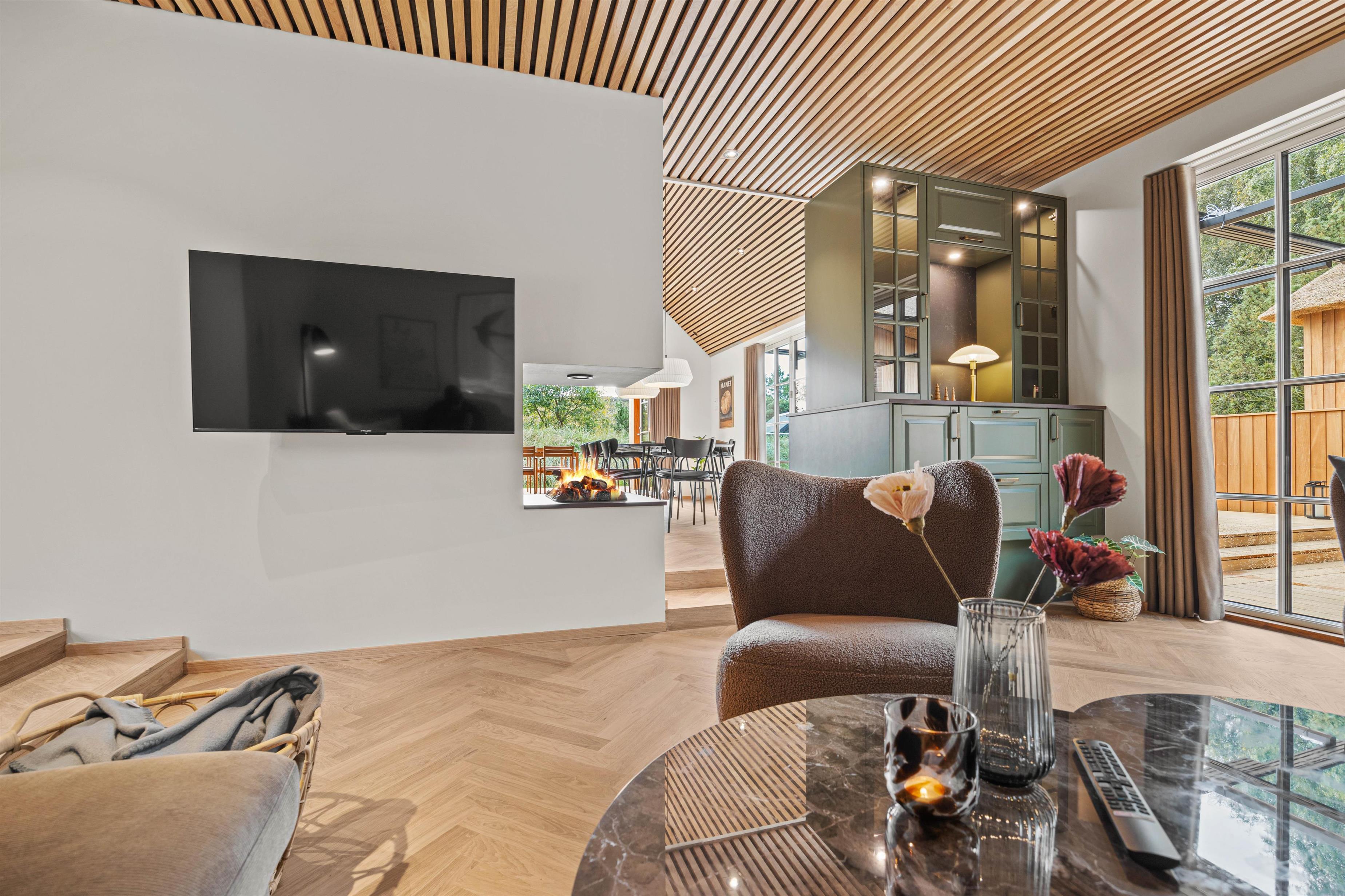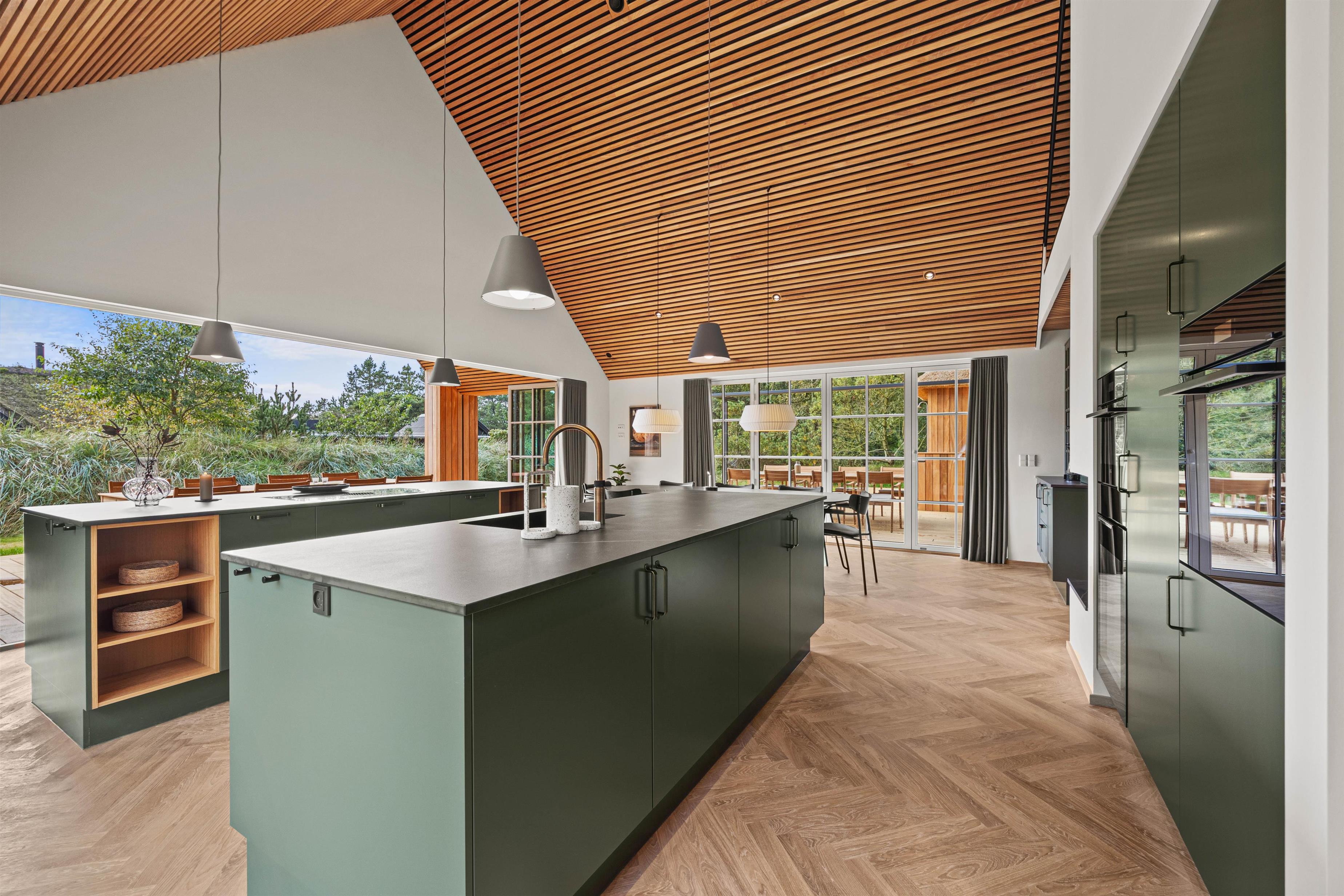 I køkkenet bliver madlavningen en begivenhed. Hvem vil ikke gerne være kok i et helt nyt køkken af høj kvalitetm, hvor der både er indstalleret Quooker og mulighed for at tappe danskvand? Mens du svinger træskeen, kan de andre byde på en aperitif og dække bord til middagen. Det store spisekøkken fører ind til opholdsstuen, hvor man kan slænge sig i sofaen til den hyggelige del af dagen. Nyd den frie udsigt over naturen og send hverdagens stress på en lang rejse.
