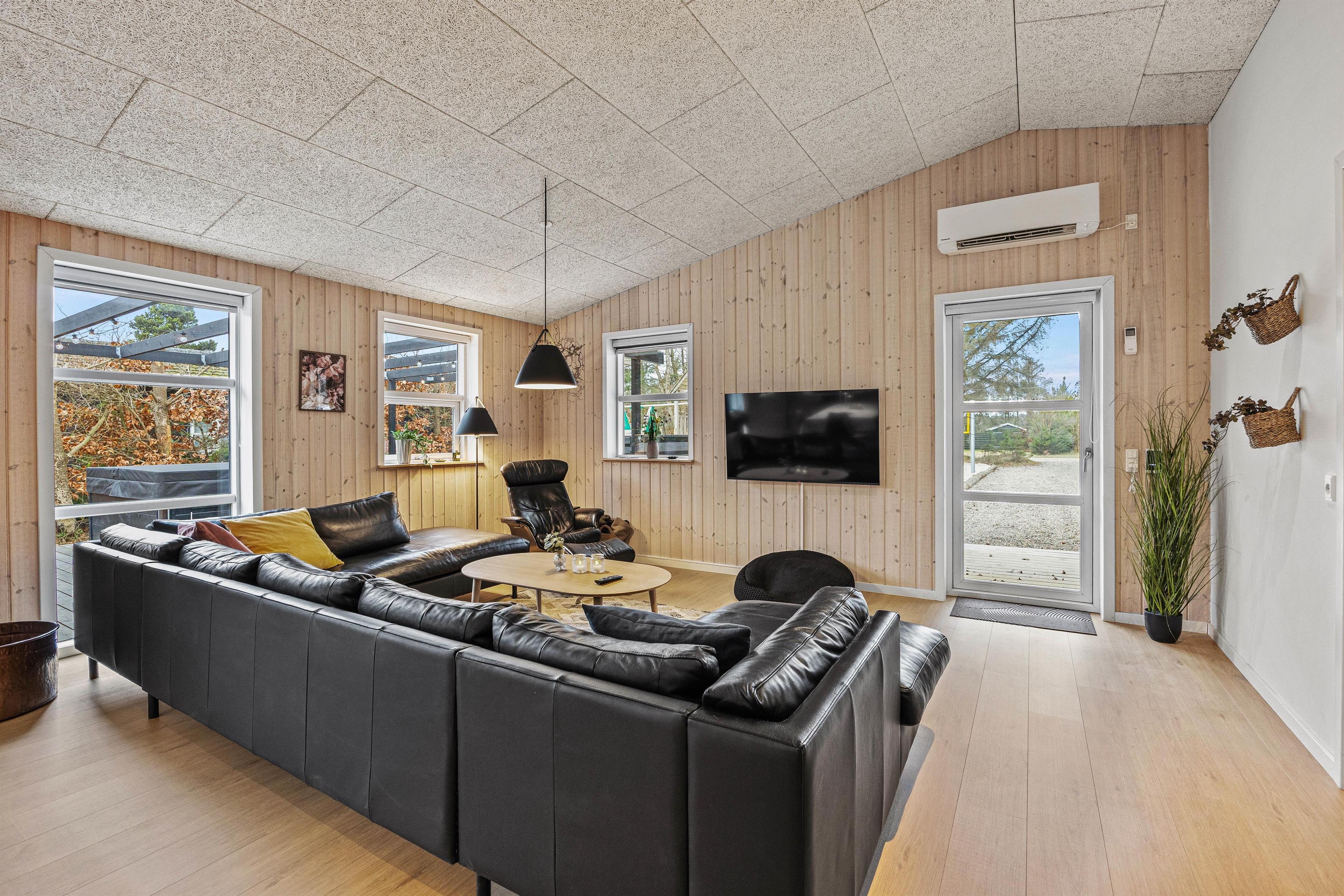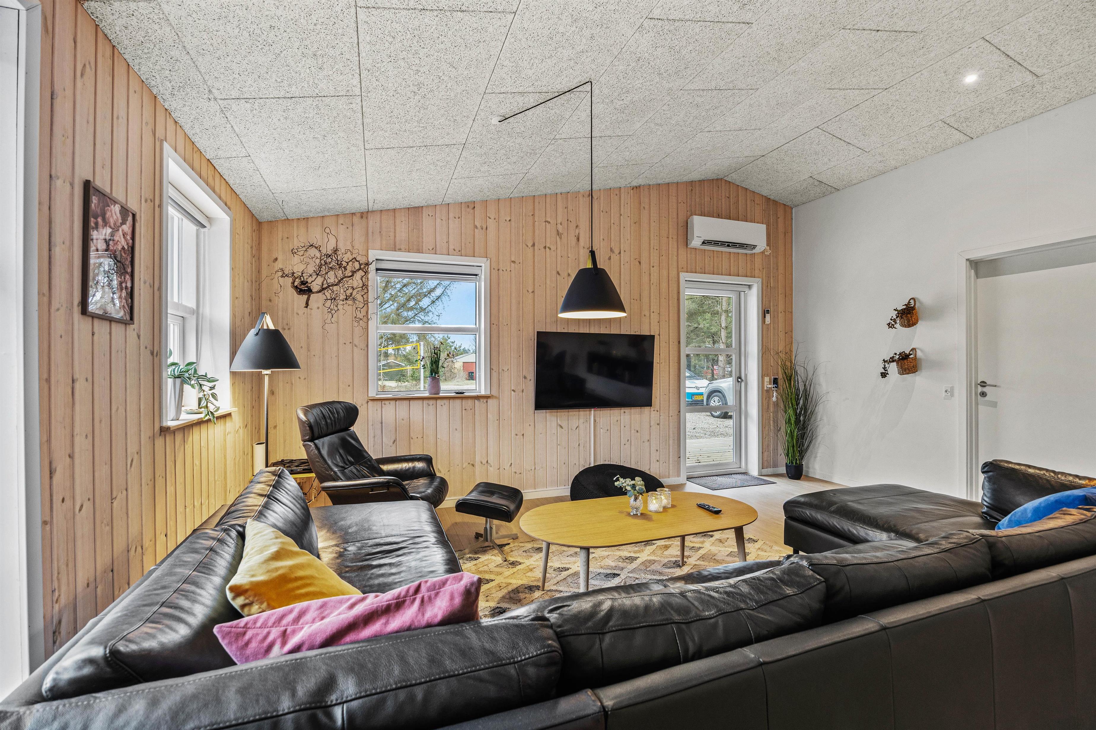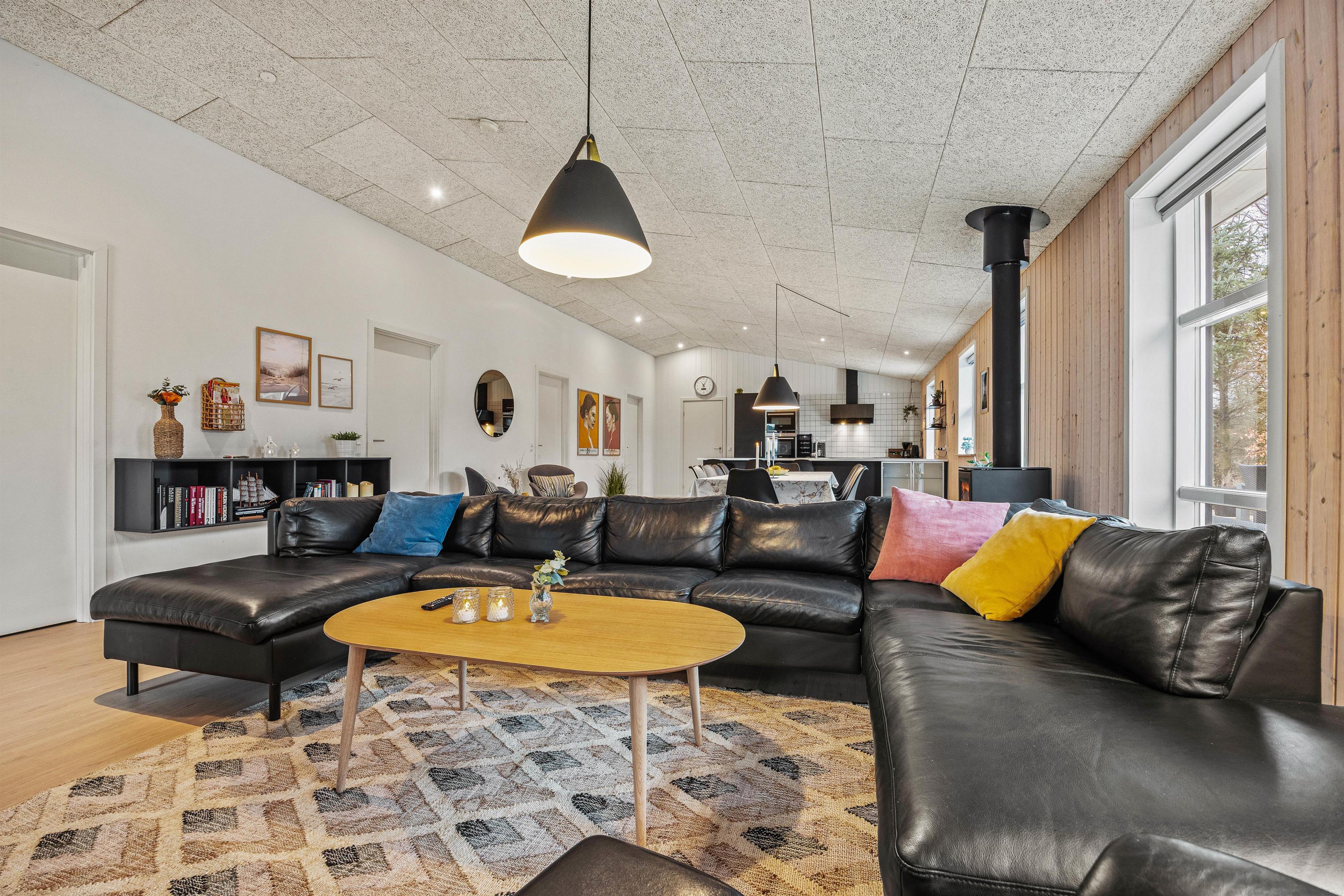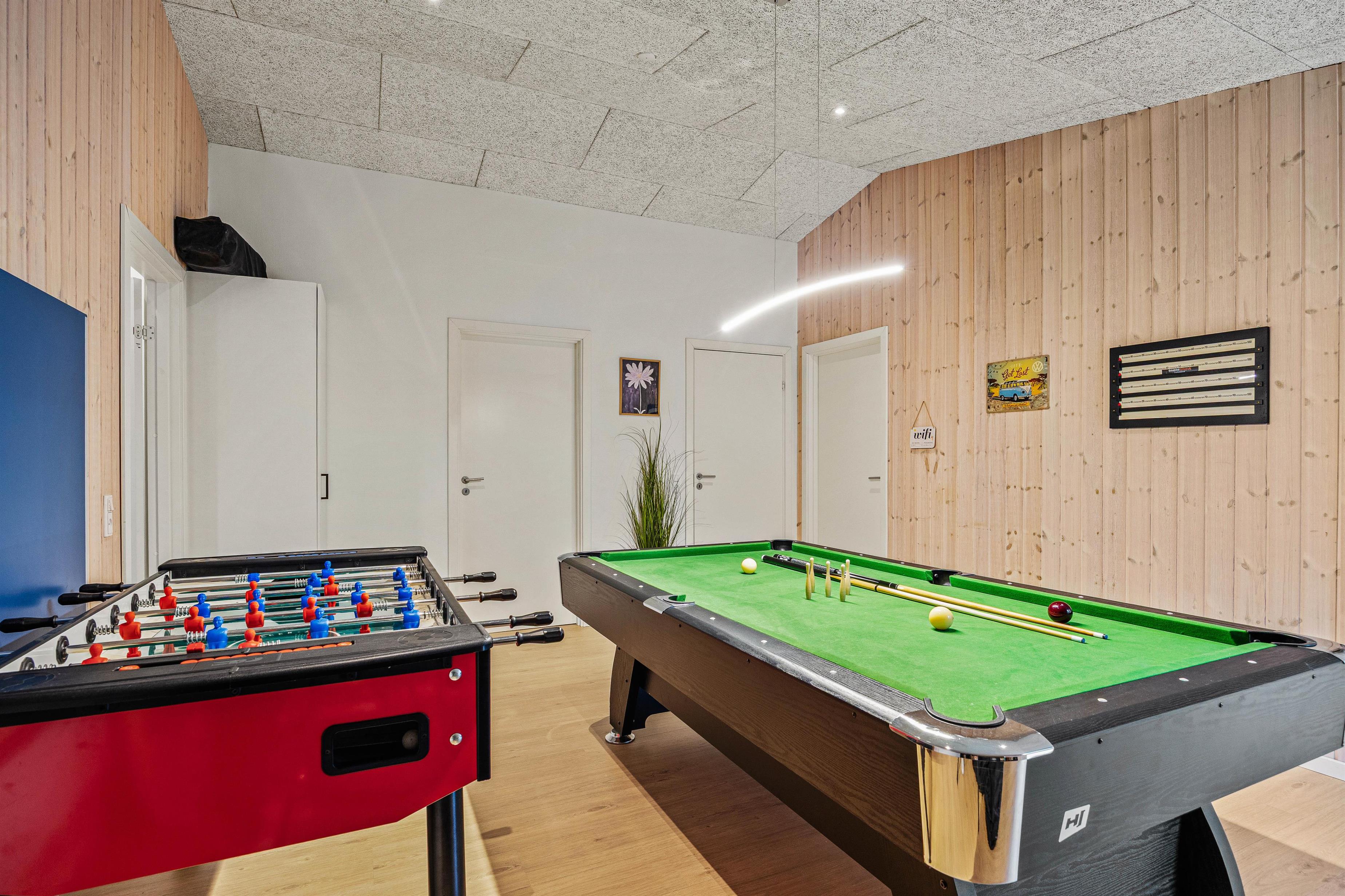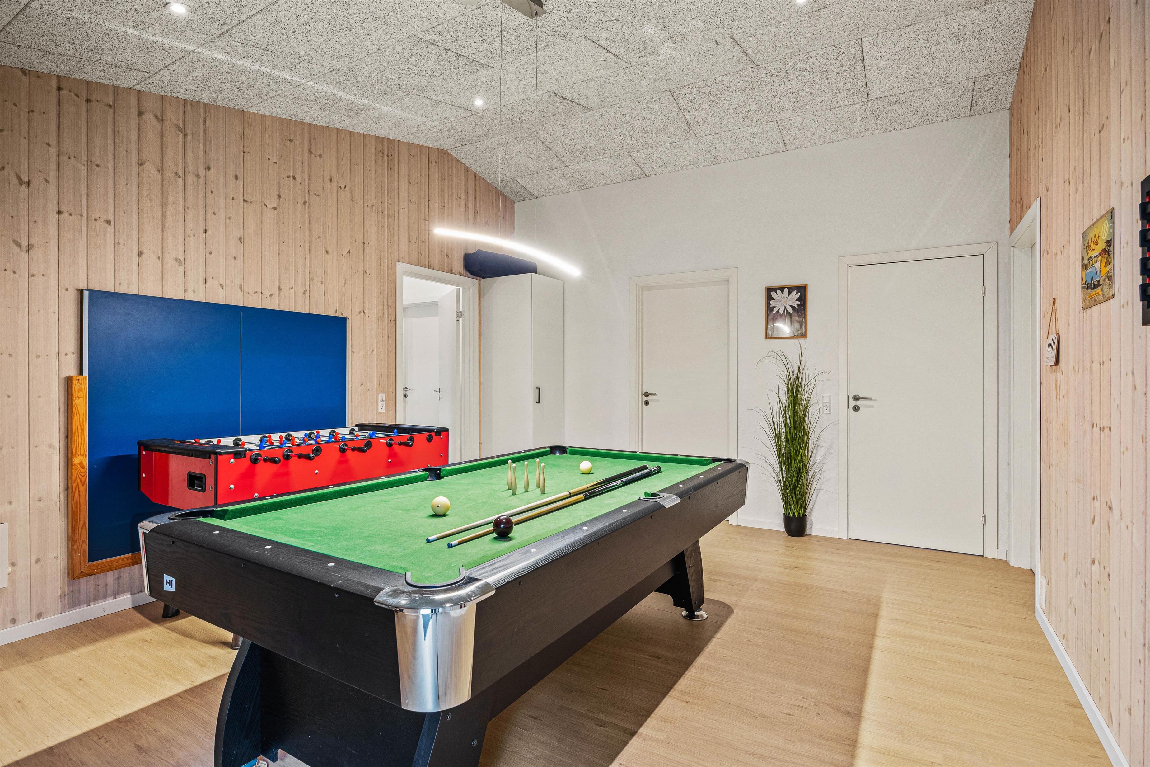 Sommerhuset emmer af feriehygge, og I vil føle jer velkommen, så snart I træder inden for døren. De lyse omgivelser og den hyggelige atmosfære skaber den perfekte ramme om jeres ferie. I stuen kan I alle samles og se en god film på fladskærms-tv’et, hvor brændeovnen hæver hyggen til det næste niveau. I kan også tænde for sommerhusets PlayStation eller tage et spil pool/billard eller bordtennis.