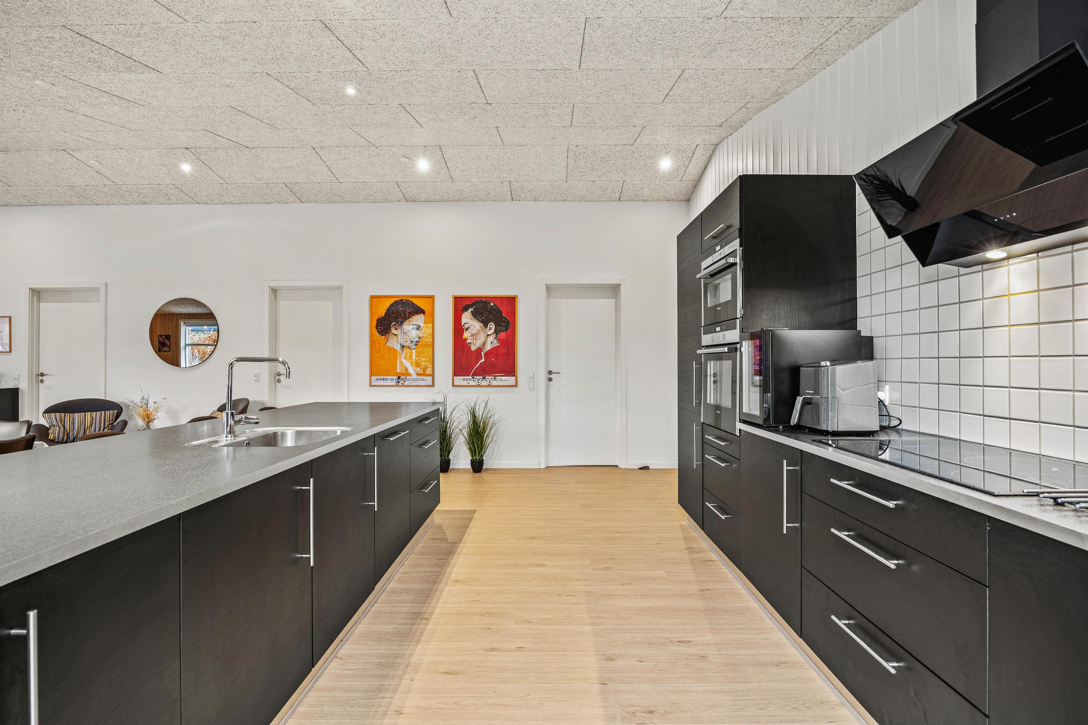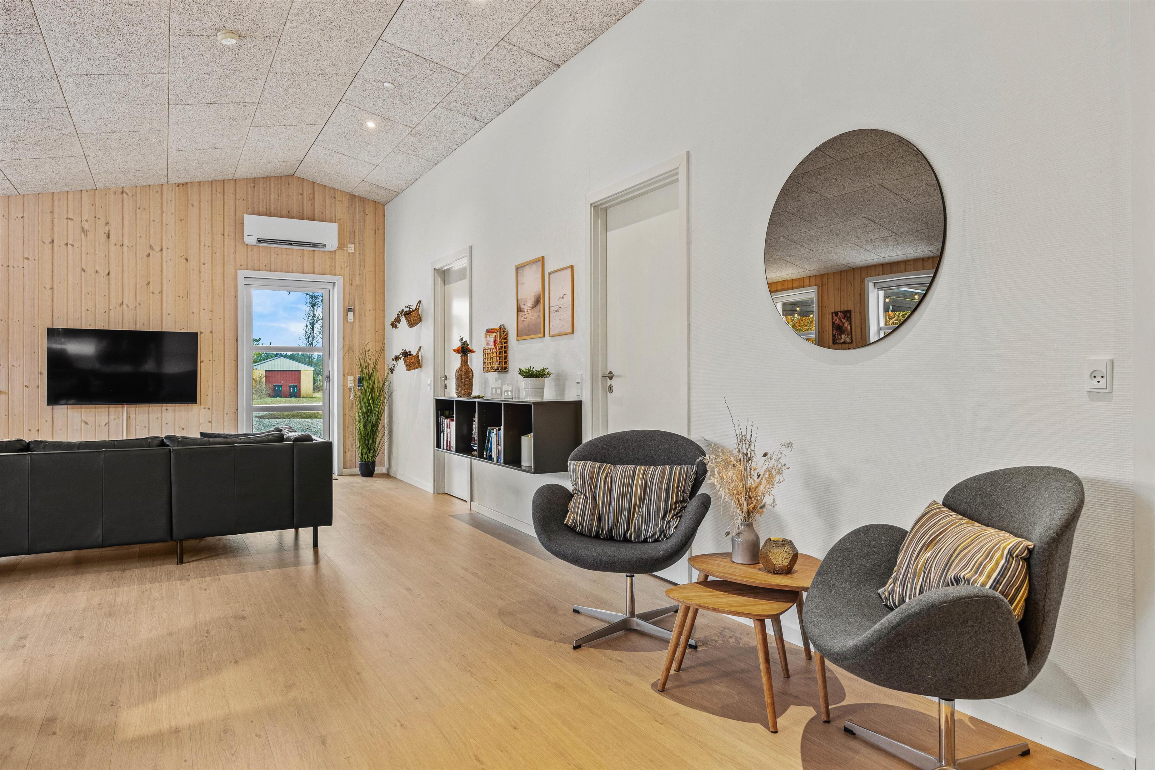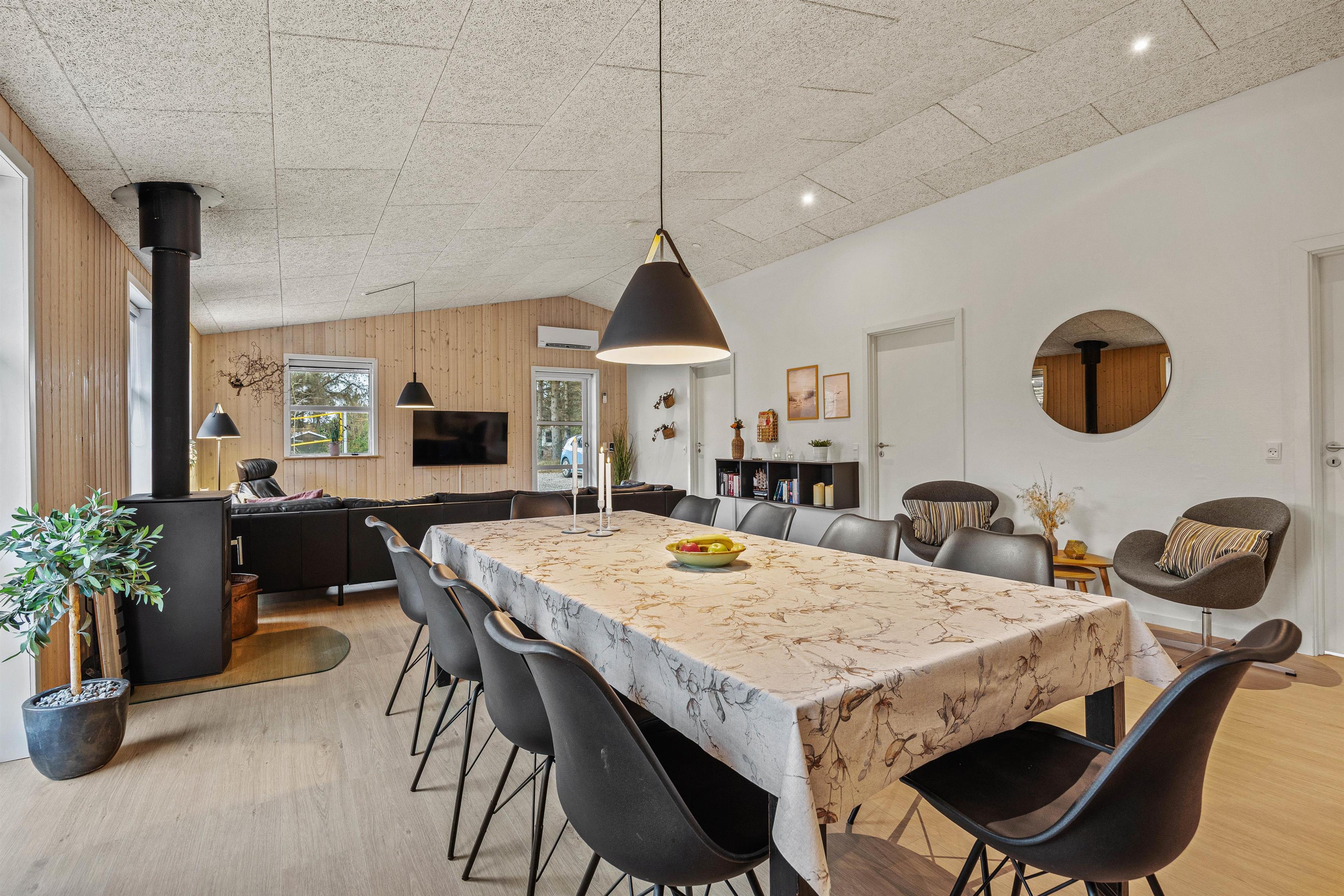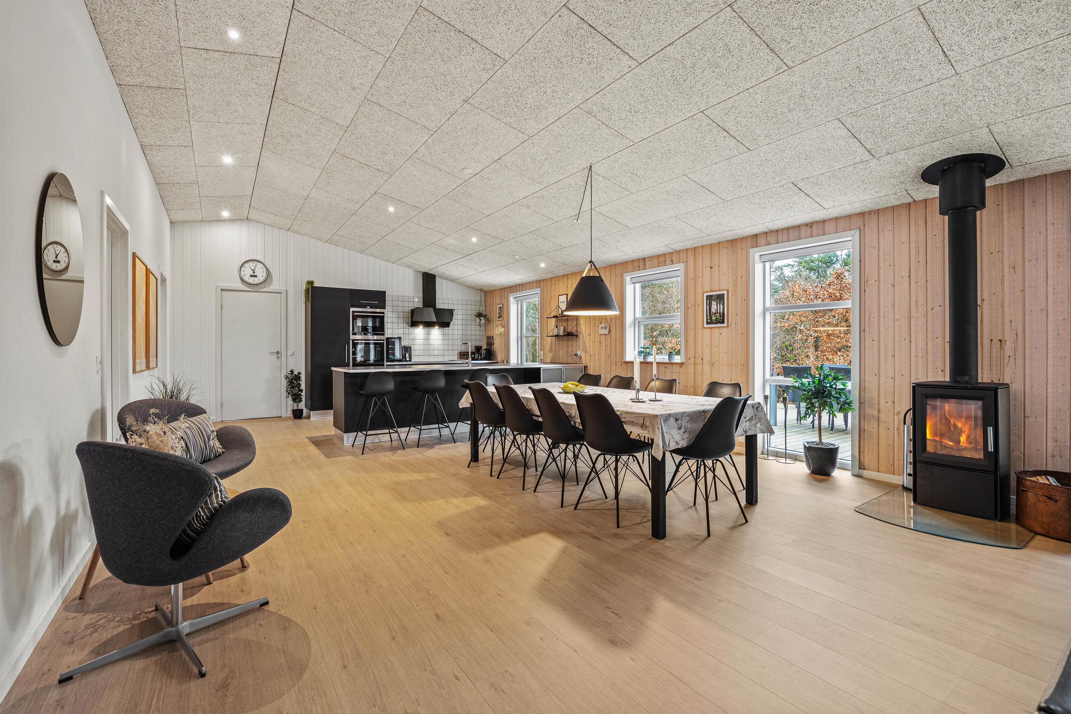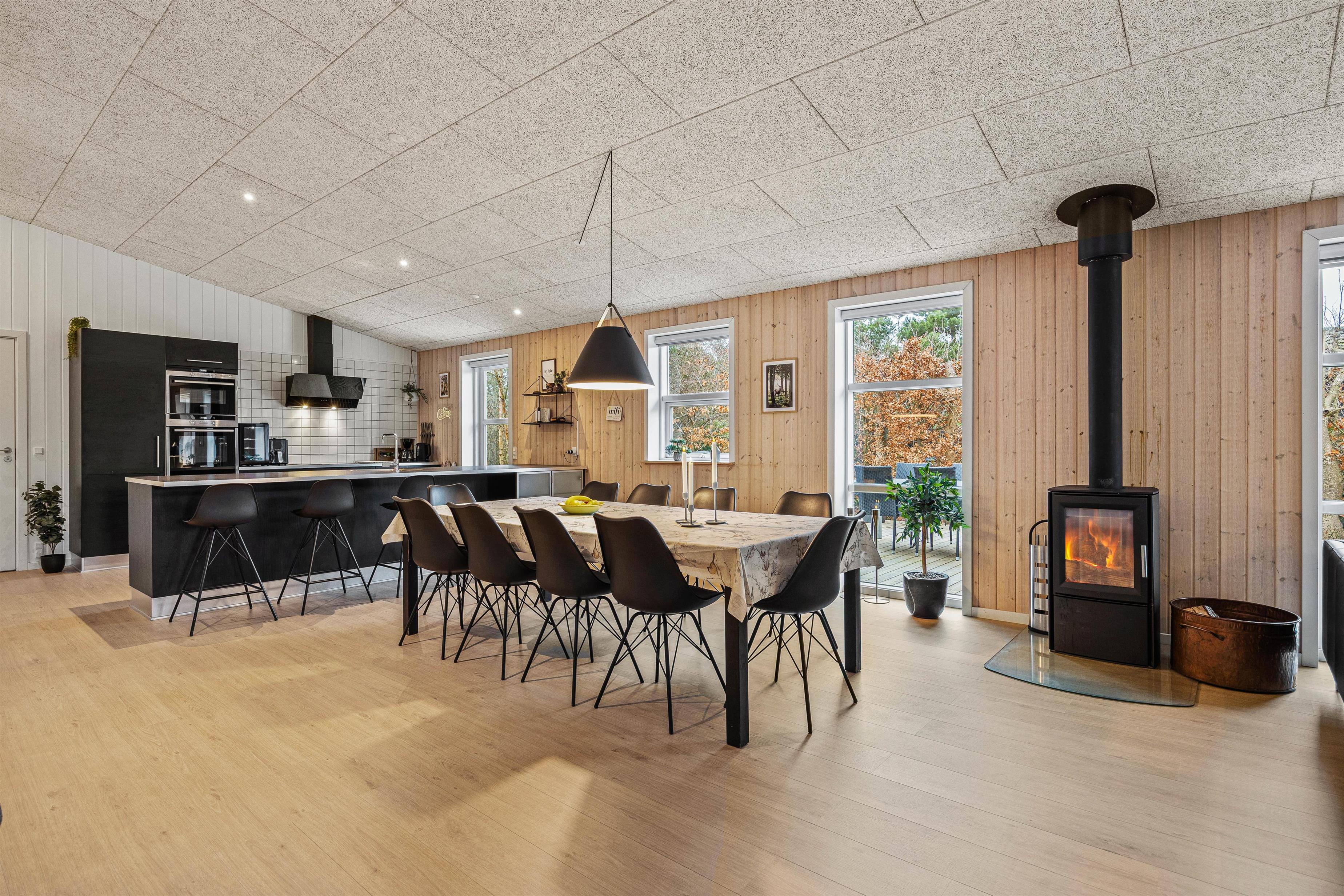 Sommerhuset emmer af feriehygge, og I vil føle jer velkommen, så snart I træder inden for døren. De lyse omgivelser og den hyggelige atmosfære skaber den perfekte ramme om jeres ferie. I stuen kan I alle samles og se en god film på fladskærms-tv’et, hvor brændeovnen hæver hyggen til det næste niveau. I kan også tænde for sommerhusets PlayStation eller tage et spil pool/billard eller bordtennis.