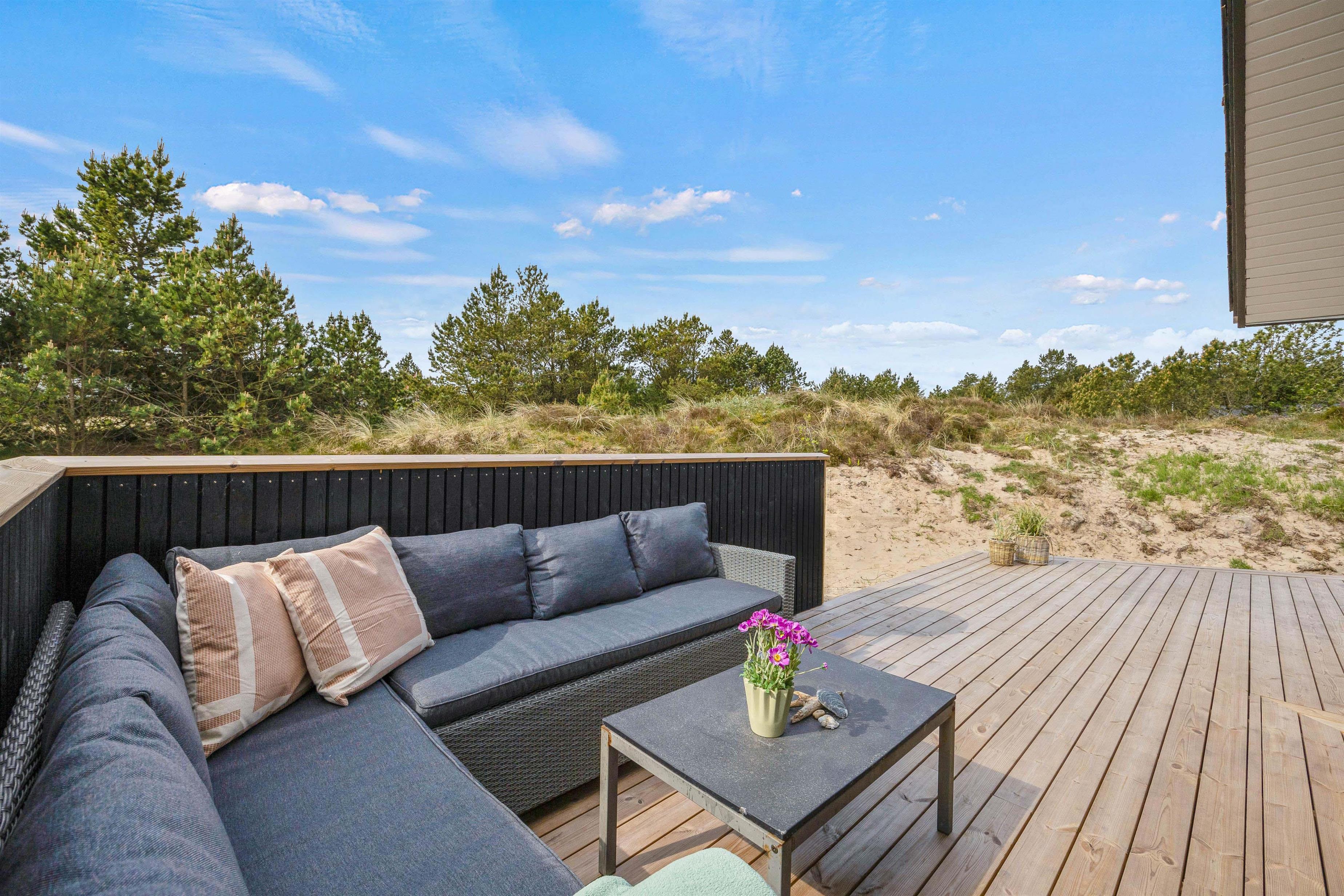 Fra stuen har I adgang til en delvist overdækket træterrasse, her kan I søge hen, hvis I har brug for en skyggeplads. Nyd en kop kaffe i de gode havemøbler og senere en grillmiddag og et glas vin. På den åbne del kan I nyde solen på solsengene og det gode vejr. Her er I godt afskærmet på grund af det bakkede område.