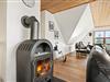 Straks I træder ind i det charmerende feriehus, vil I føle jer godt tilpasse og mærke den hyggelige feriestemning. Hvert enkelt rum er indbydende indrettet med komfort i tankerne, og ved spisepladsen i køkkenet kan I tænde op i brændeovnen. Den spreder ikke blot god varme til rummet, men sætter også prikken over i'et til feriestemningen. Køkkenet er indrettet med udstyr som opvaskemaskine, mikroovn, induktionskogeplade, ovn og stort indbygget køleskab. Der er desuden et ekstra kølefryseskab i depotrummet.