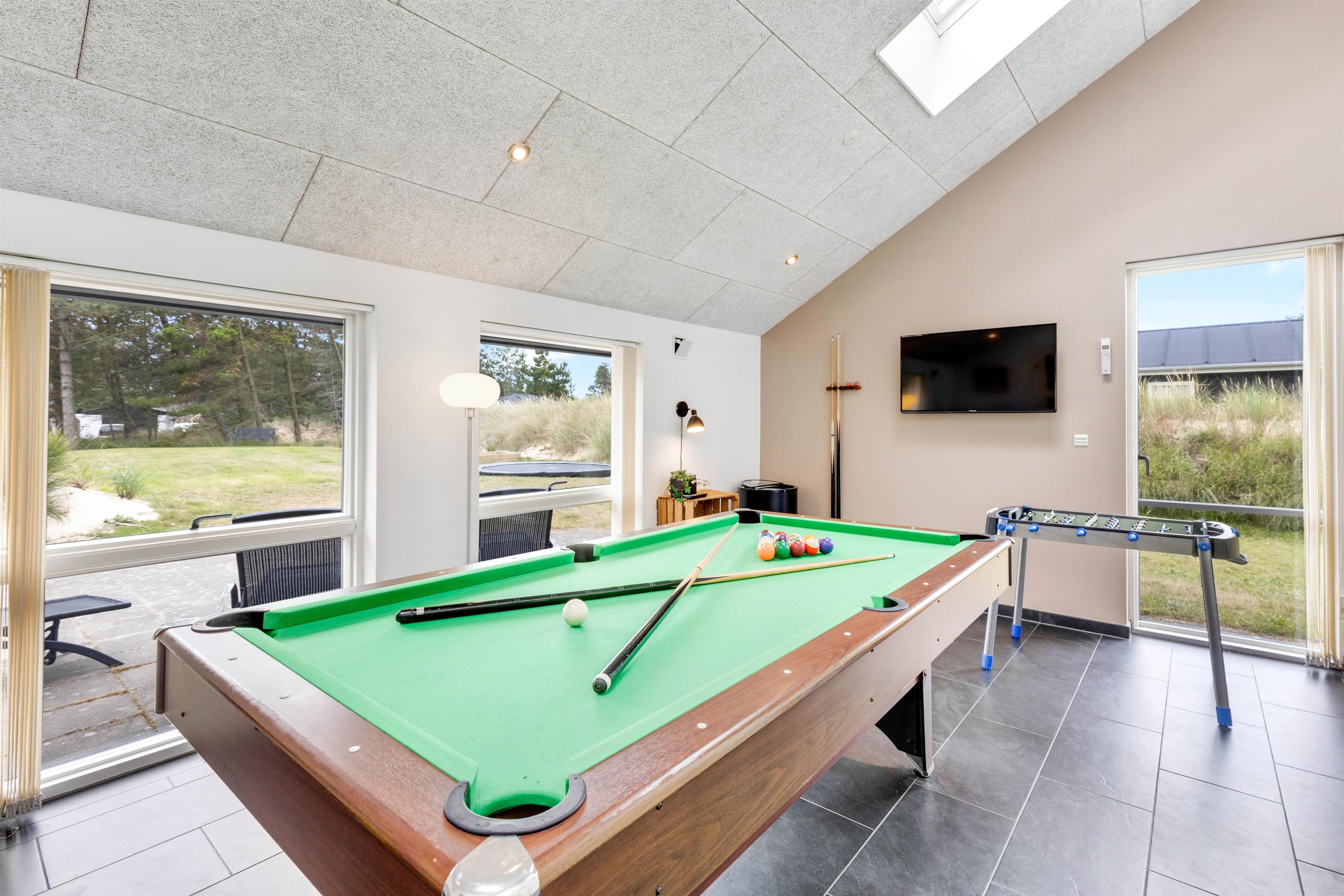 I feriehuset på Toldbodvej 10 skal I ikke vælge mellem afslapning og aktivitet. Hér er der nemlig rig mulighed for begge dele. I aktivitetsrummet kan I give jer i kast med at spille billard og bordtennis – og hvorfor ikke få gang i en turnering eller to?