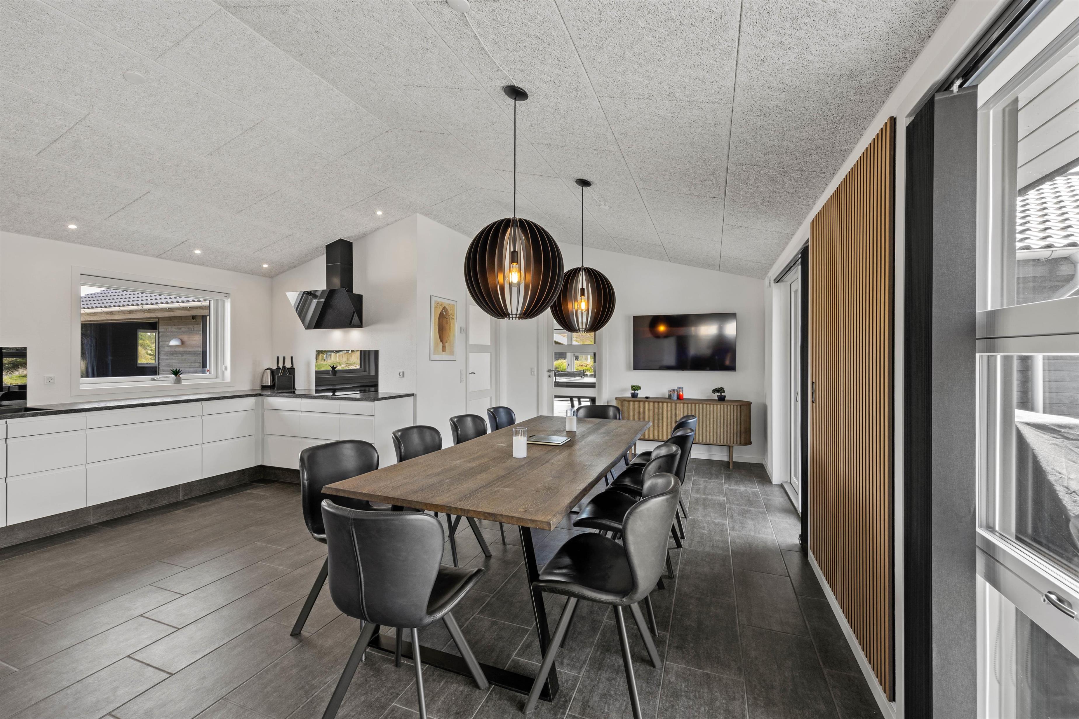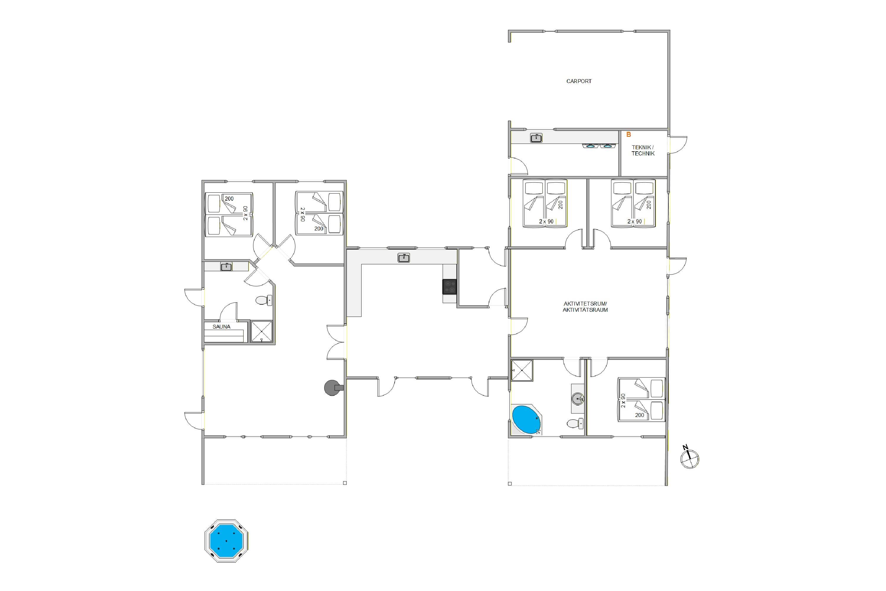 Solhaven 7 byder med sine 201 kvadratmeter på en smagfuld indretning og funktionel planløsning, hvor der er plads til hele familien. Hele feriehuset er indrettet i rolige og natur-materialer samt belagt med klinkegulv med gulvvarme. Planløsningen byder bl.a. på køkkenalrum i forbindelse med stue, to badeværelser, fem soveværelser og et stort aktivitetsrum.