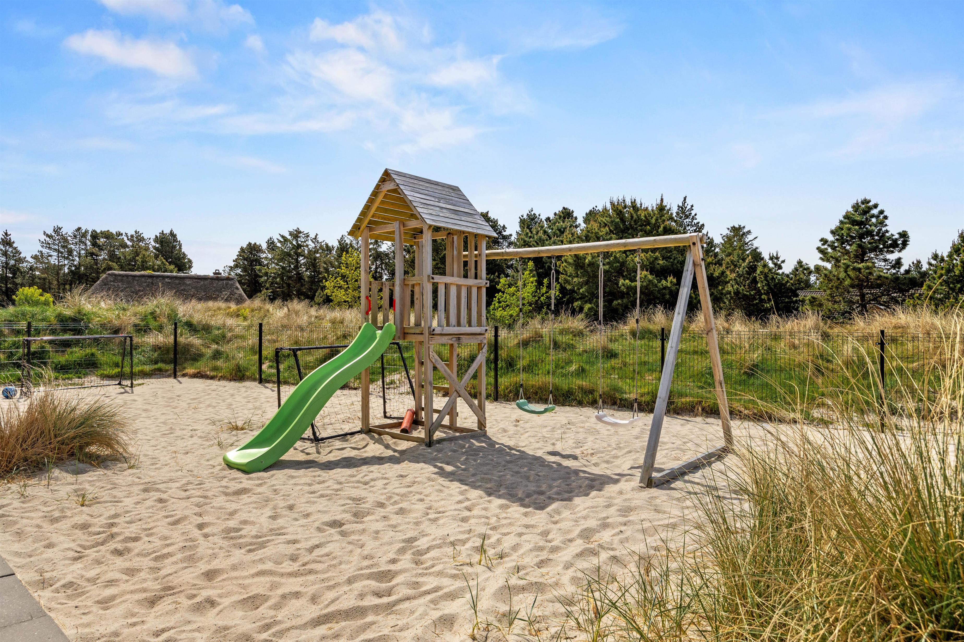 I har desuden også både parasol og solvogne til rådighed, så forældrene kan ligge i solen og holde øje med børnene, som leger i den store sandkasse eller på gynger. Eller måske skal I have en dyst på den lille beachvolleybane eller i en fodboldkamp ved de to små fodboldmål?