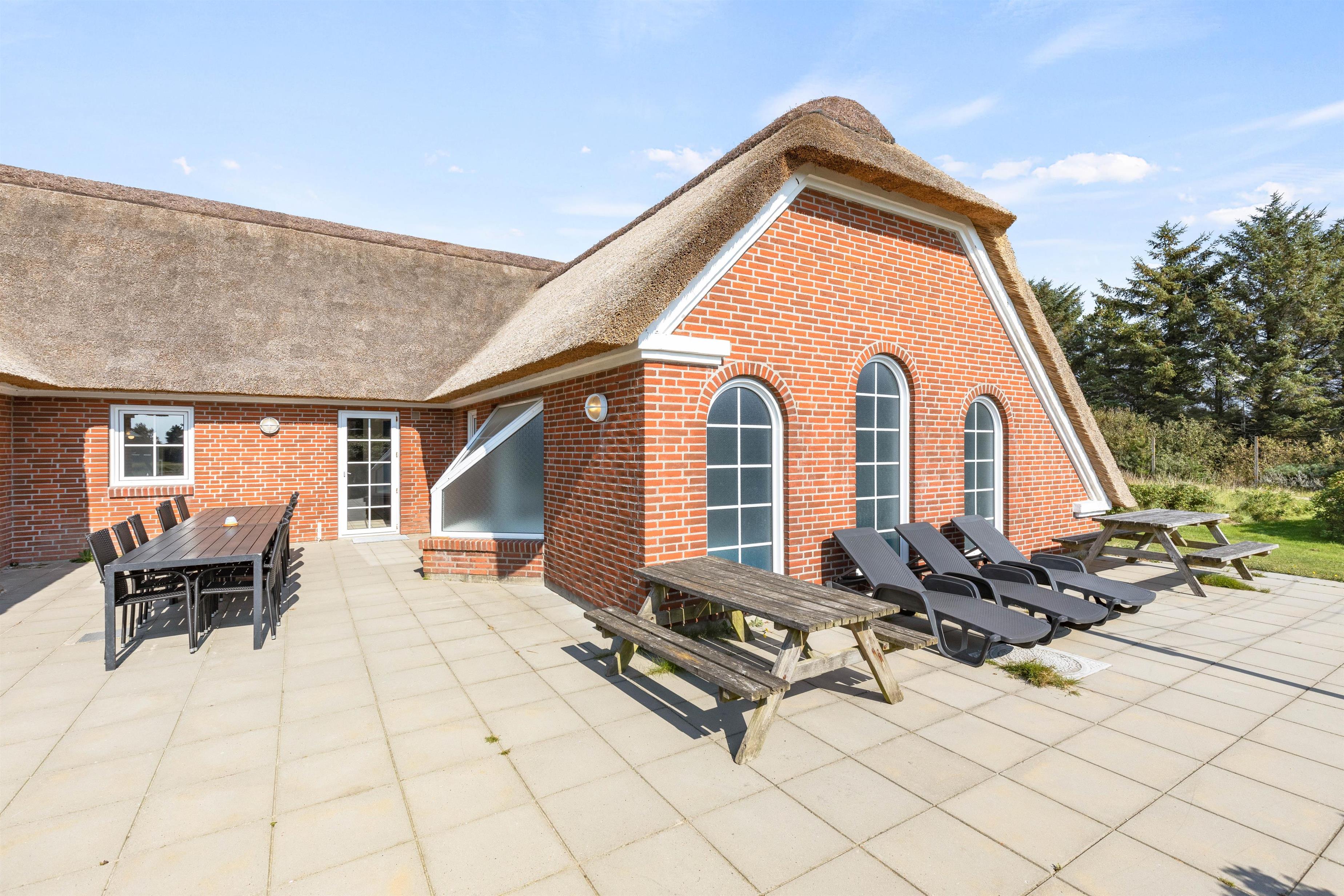 På en stor plænegrund i Blåvand ligger dette dejlige sommerhus til 10 personer og 1 hund. Her kan I nyde en dejlig ferie i skønne omgivelser. I sommerhuset er der både 18 m2 pool, sauna og spabad, så her er der god mulighed for både leg og afslapning. Sommerhuset ligger blot 500 meter fra Vesterhavet, der indbyder til lange gåture med fødderne i vandkanten.