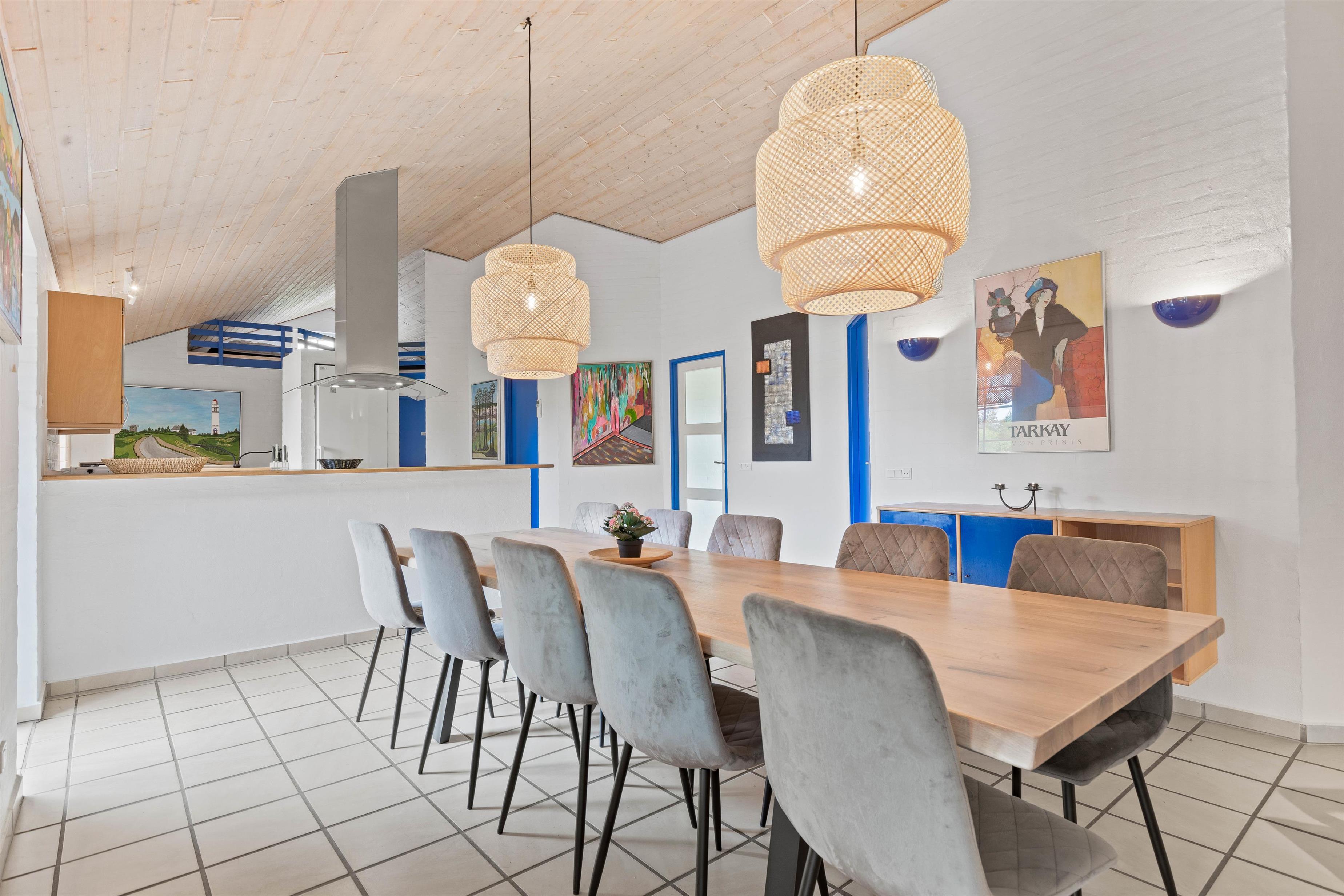 Sommerhuset på Ingridsvej 28 byder op til 10 feriegæster og 1 hund velkommen til en dejlig ferie. Her er et rummeligt køkken/alrum, hvor hele familien kan samles til hyggelige stunder. For at skabe en ekstra hyggelig feriestemning kan I tænde op i brændeovnen, der også spreder en god varme på en kølig efterårsdag. Der er også en varmepumpe i sommerhuset, som I med fordel kan benytte jer af.