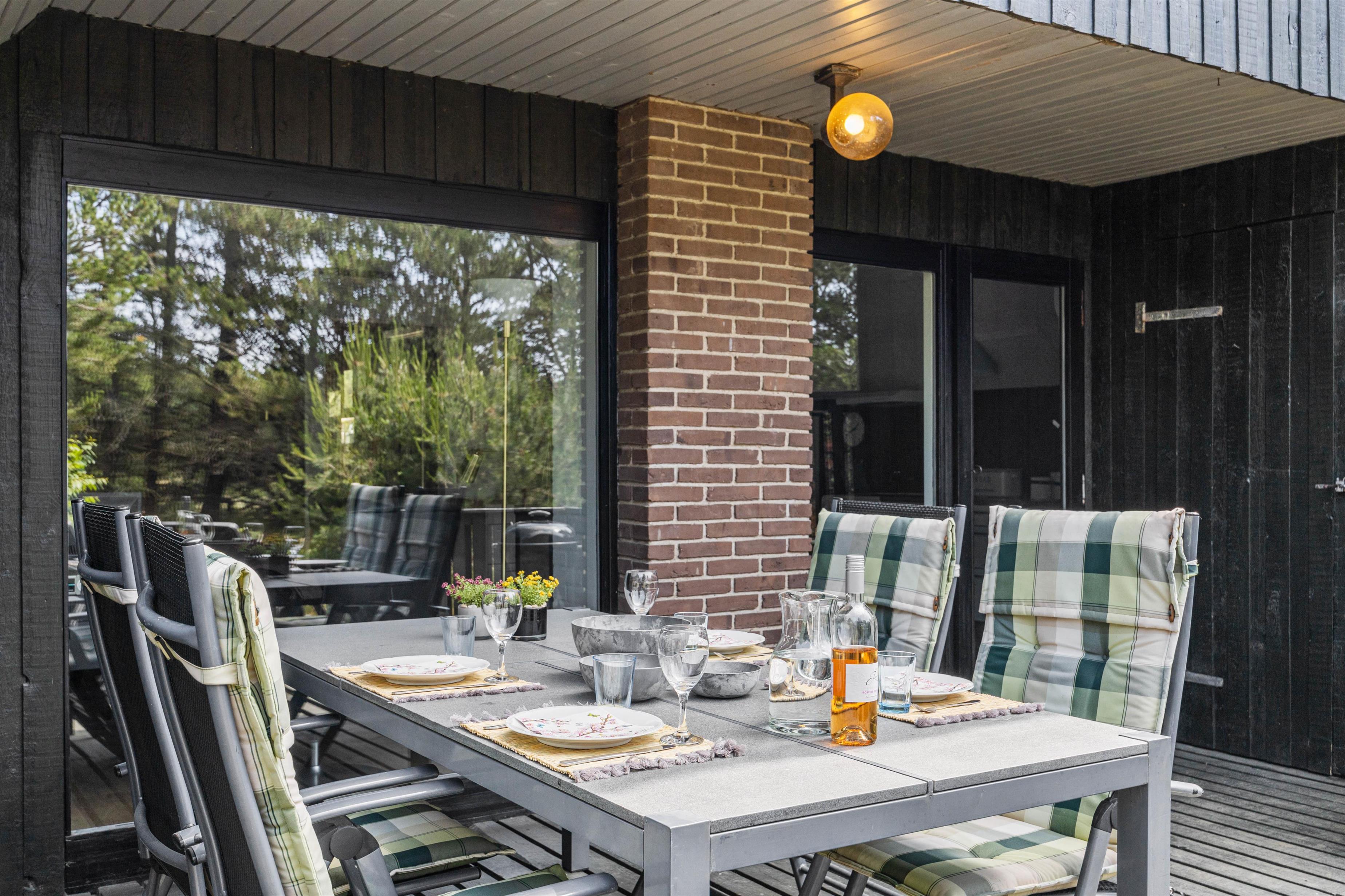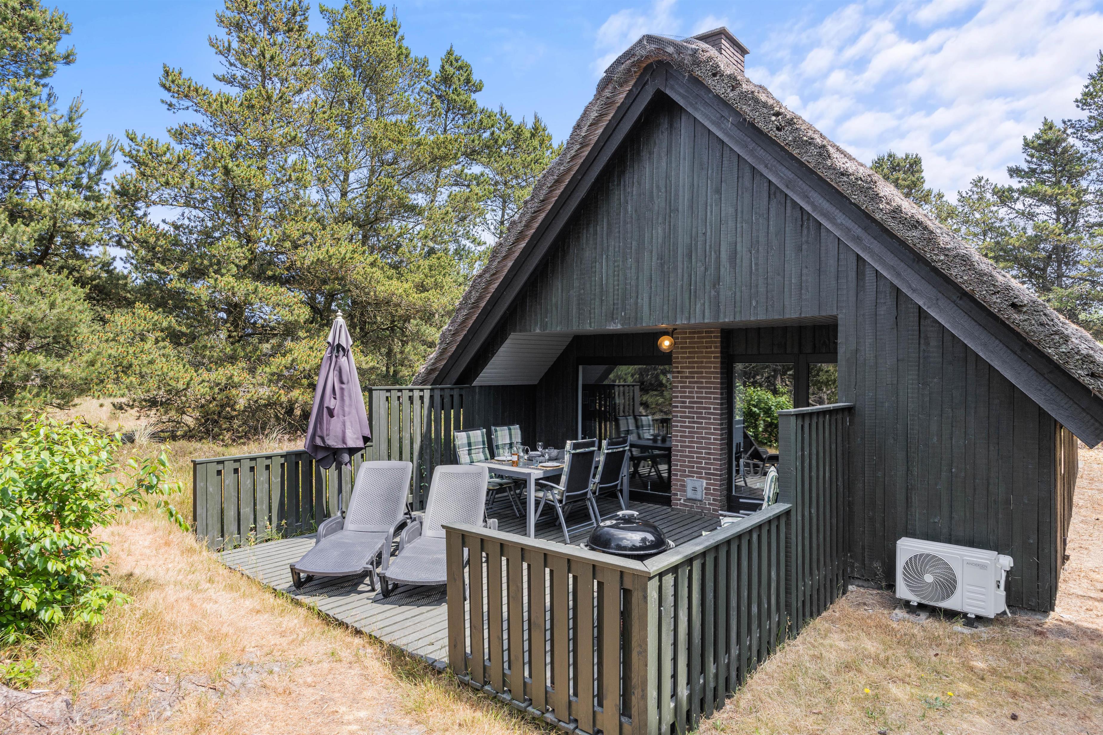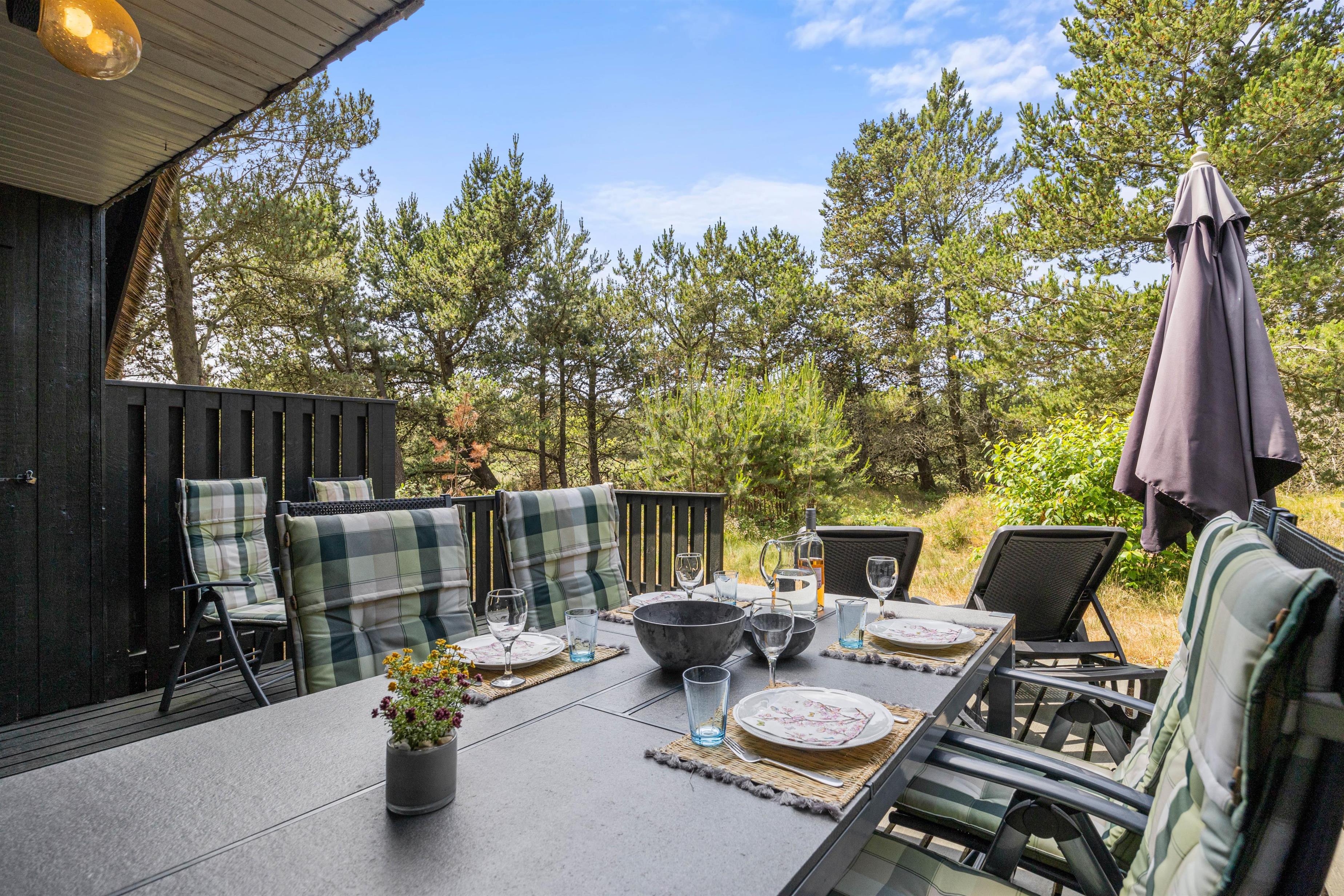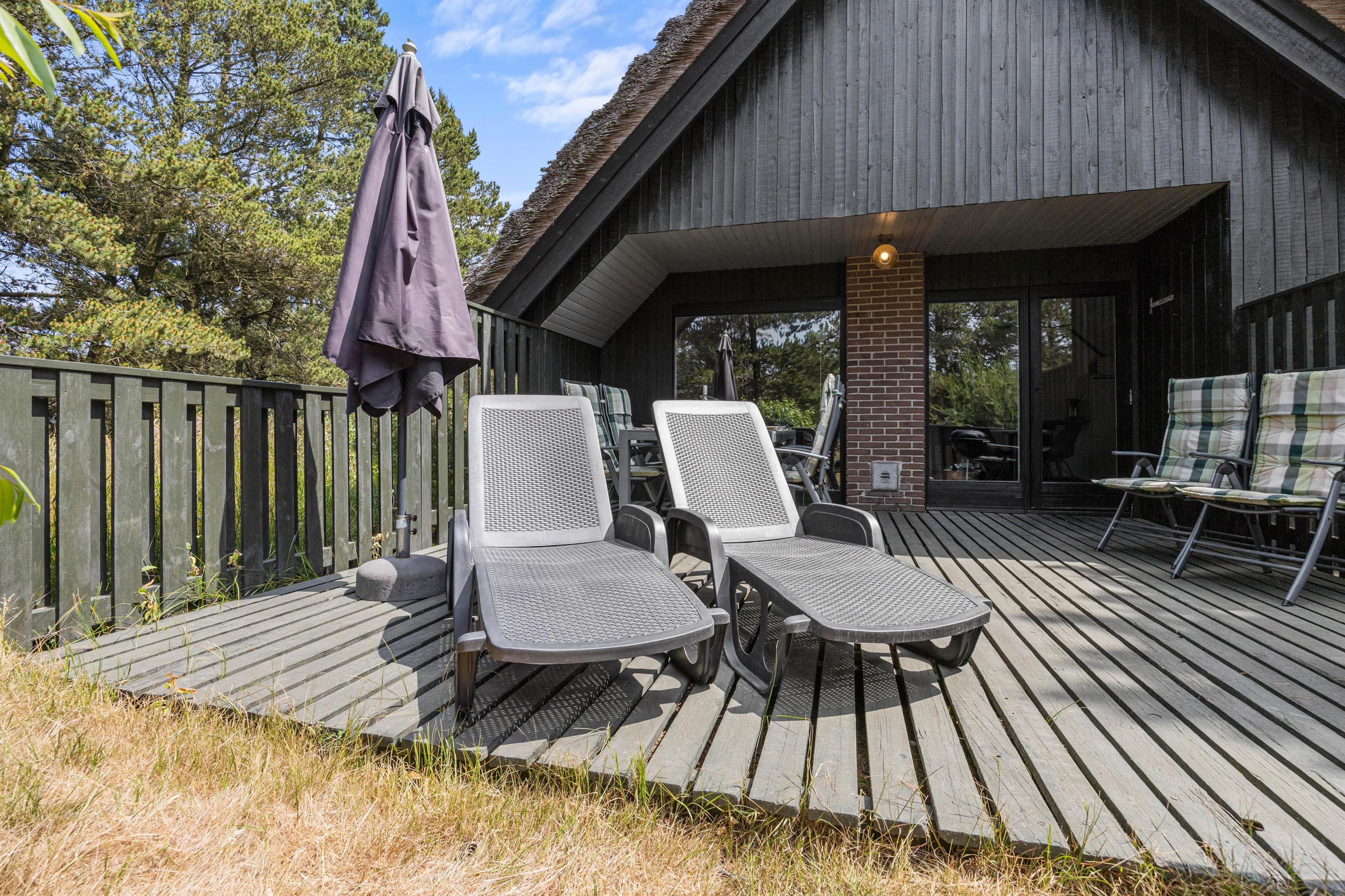 Udendørs kan I finde jer til rette på sommerhusets terrasse, der er afskærmet, hvor der står havemøbler og liggestole klar til jer. Mens I slapper af og nyder ferien på terrassen, kan børnene lege i haven, hvor der desuden står en gyngestativ klar til dem.