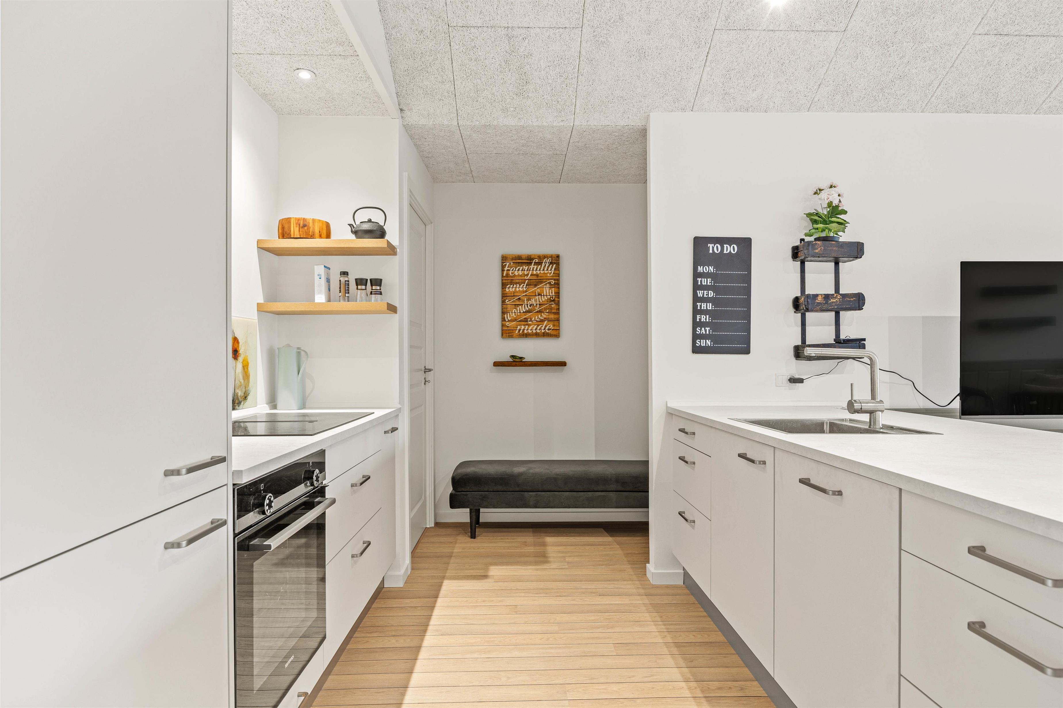 Sommerhuset, som er bygget i 2025, kombinerer moderne faciliteter med en hyggelig atmosfære i dejlige rum med en enkel og smagfuld indretning. Opholdsområdet er lyst og rummeligt, og køkkenet er fuldt udstyret med en opvaskemaskine, en mikroovn og en separat 90-liters fryser, perfekt til tilberedningen af lækre feriemåltider.