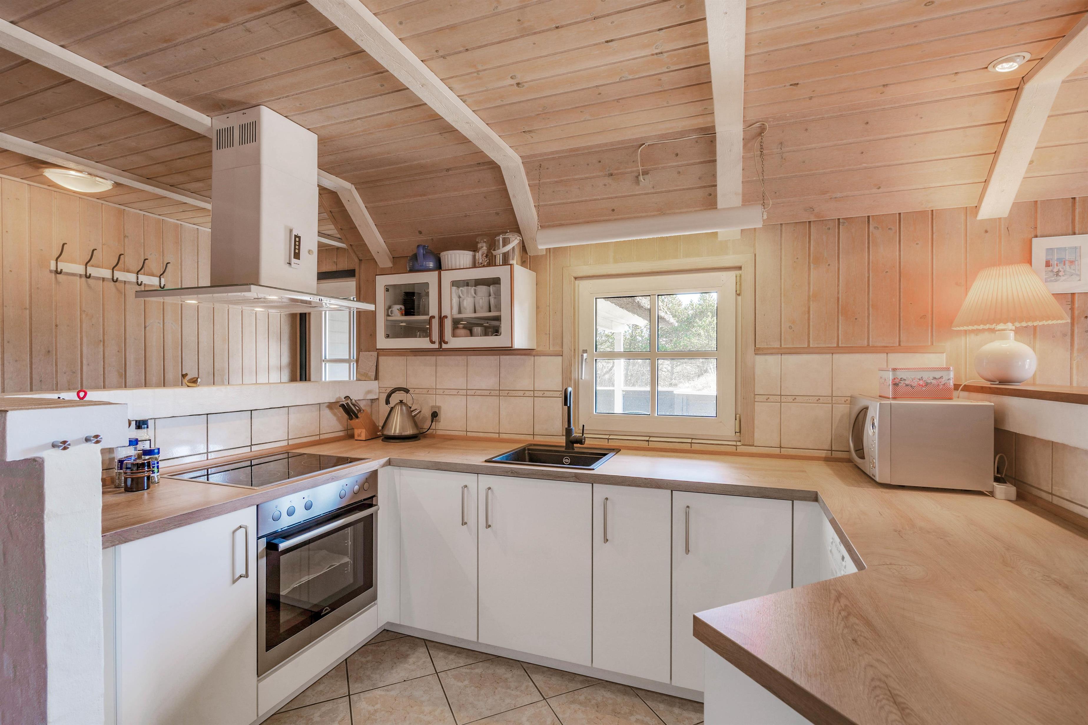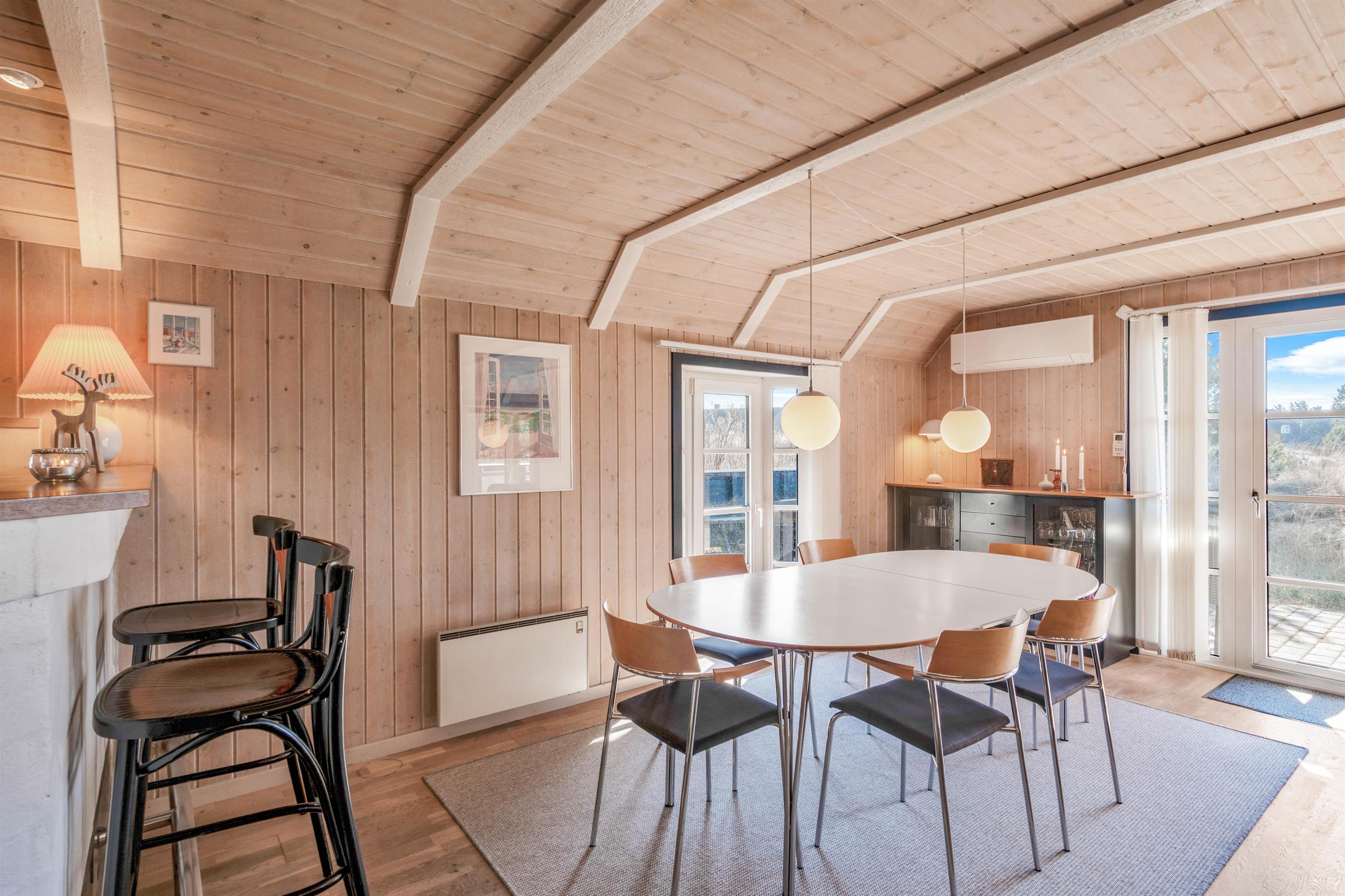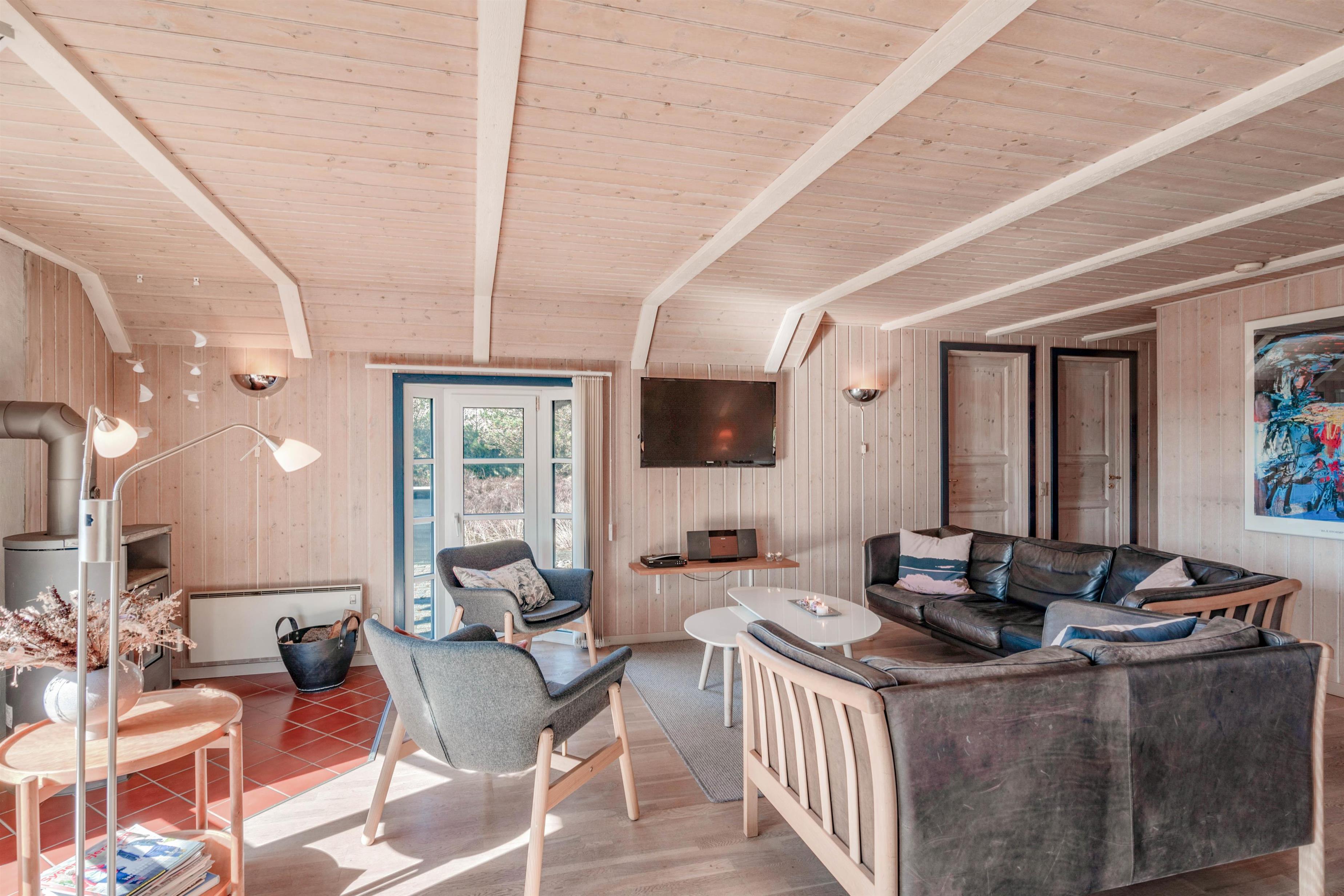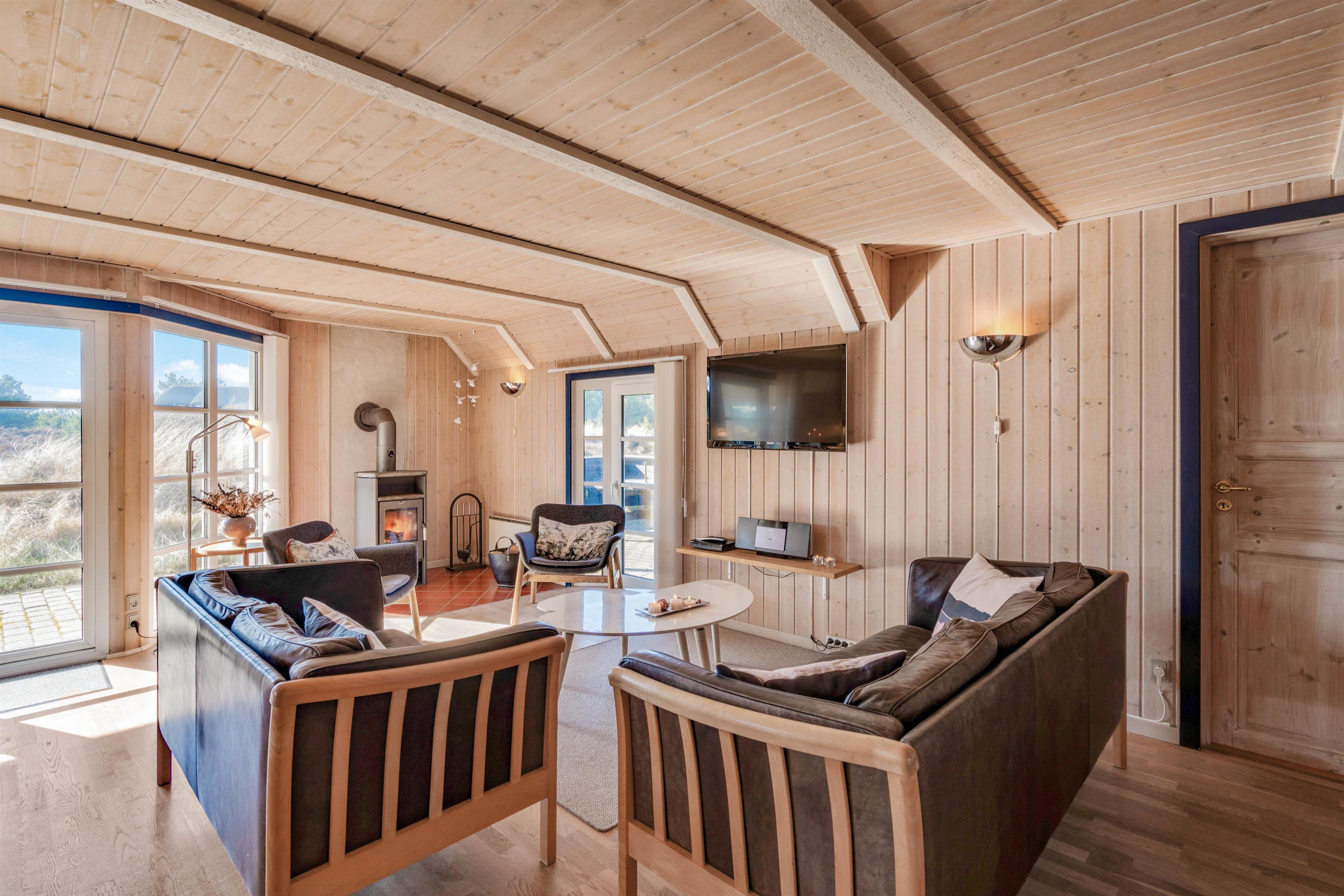 Så snart I træder inden for døren til sommerhuset, kan I mærke den hyggelige feriestemning. Det hyggelige køkken alrum indbyder til fælles madlavning eller hygge i stuen, hvor I kan snakke om dagens aktiviteter, med den hyggelige knitren og varme fra brændeovnen i baggrunden. Her kan I også streame jeres yndlingsserie på fladskærms-tv’et via sommerhusets Chromecast og jeres smartphone.