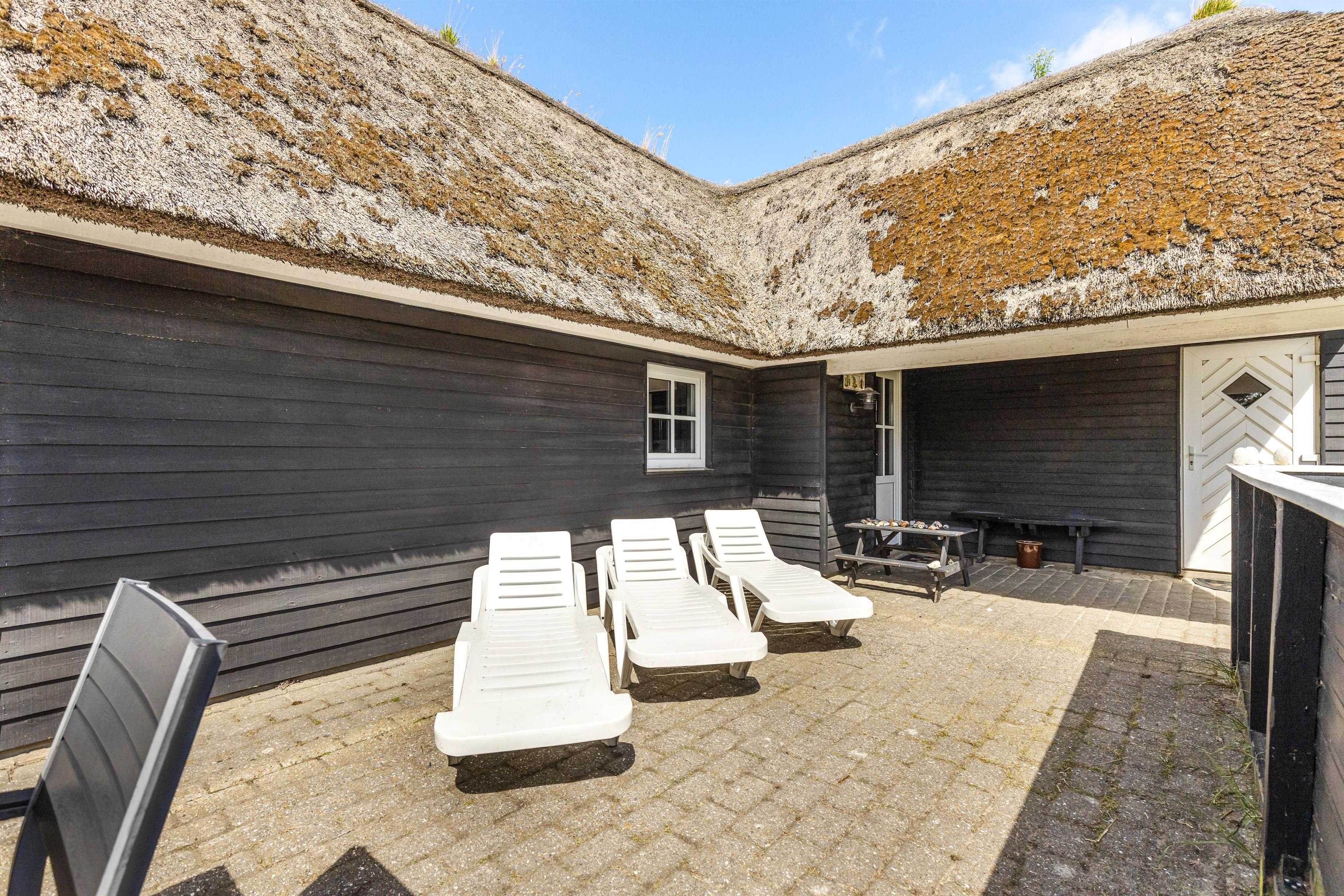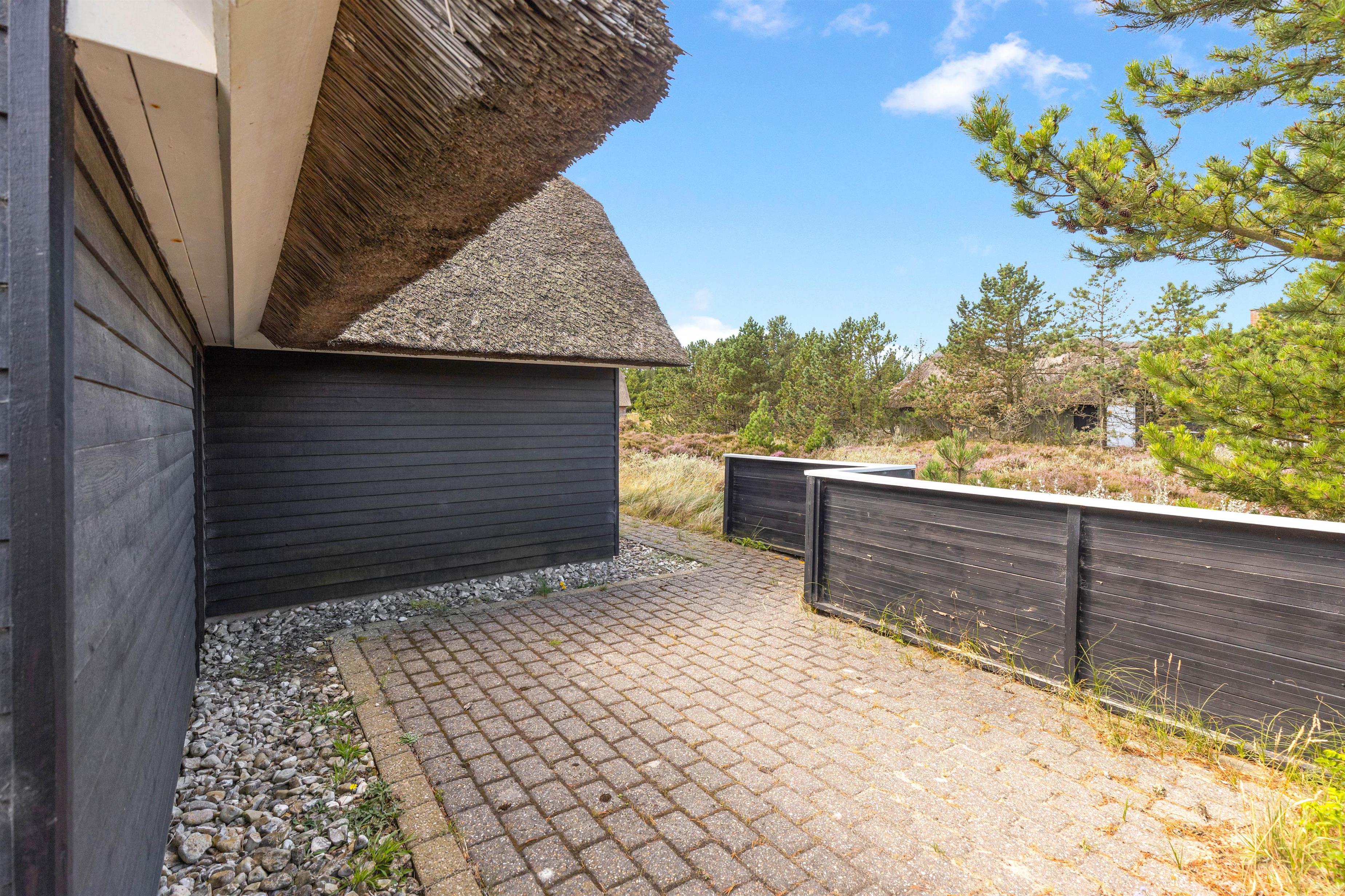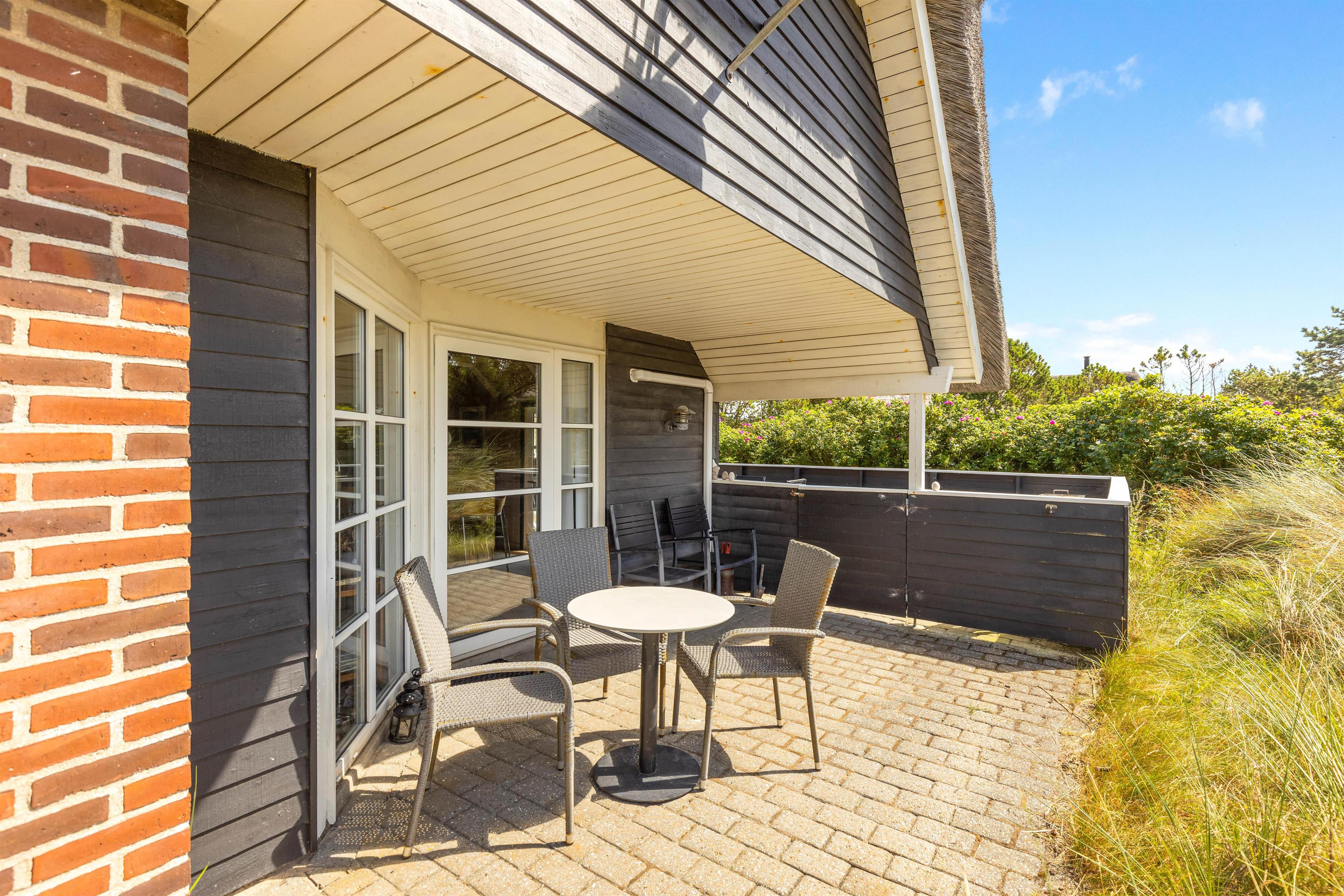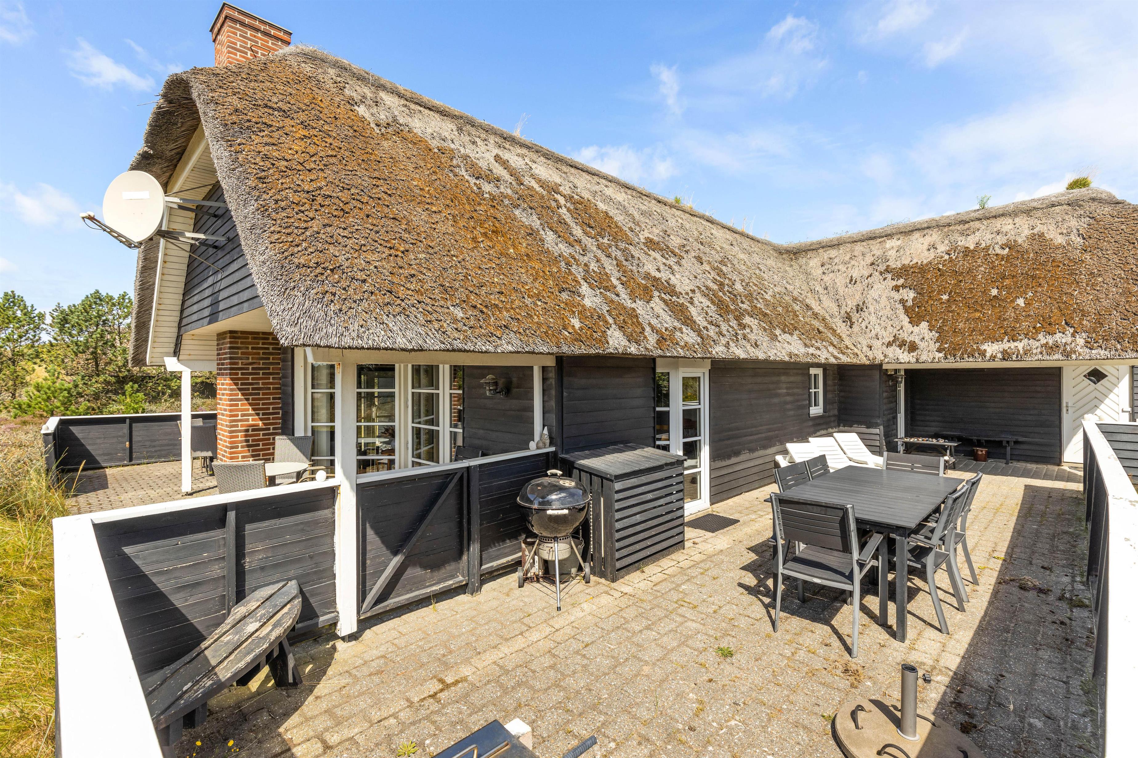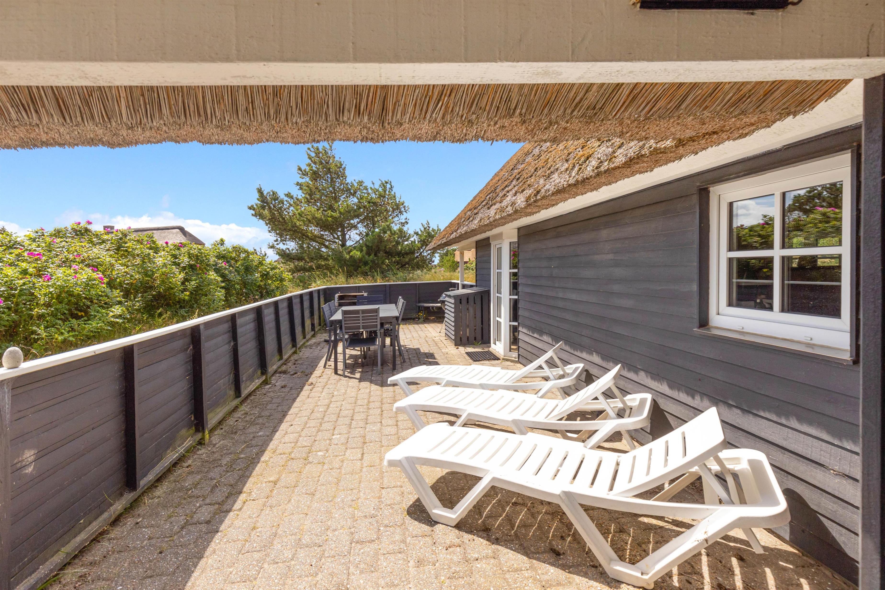 Sommerhuset har en fantastisk placering kun 450 meter fra stranden. Det kræver derfor kun en kort gåtur, og så er vandhundene allerede sprunget i havet. Ydermere har sommerhuset hele 3 terrasser, hvor I med sikkerhed altid kan finde en solspot og ikke mindst læ for vinden. Den ene terrasse kan ligeledes lukkes helt af, så familiens yngste . Her har i både havemøbler, liggestole og en grill til rådighed.