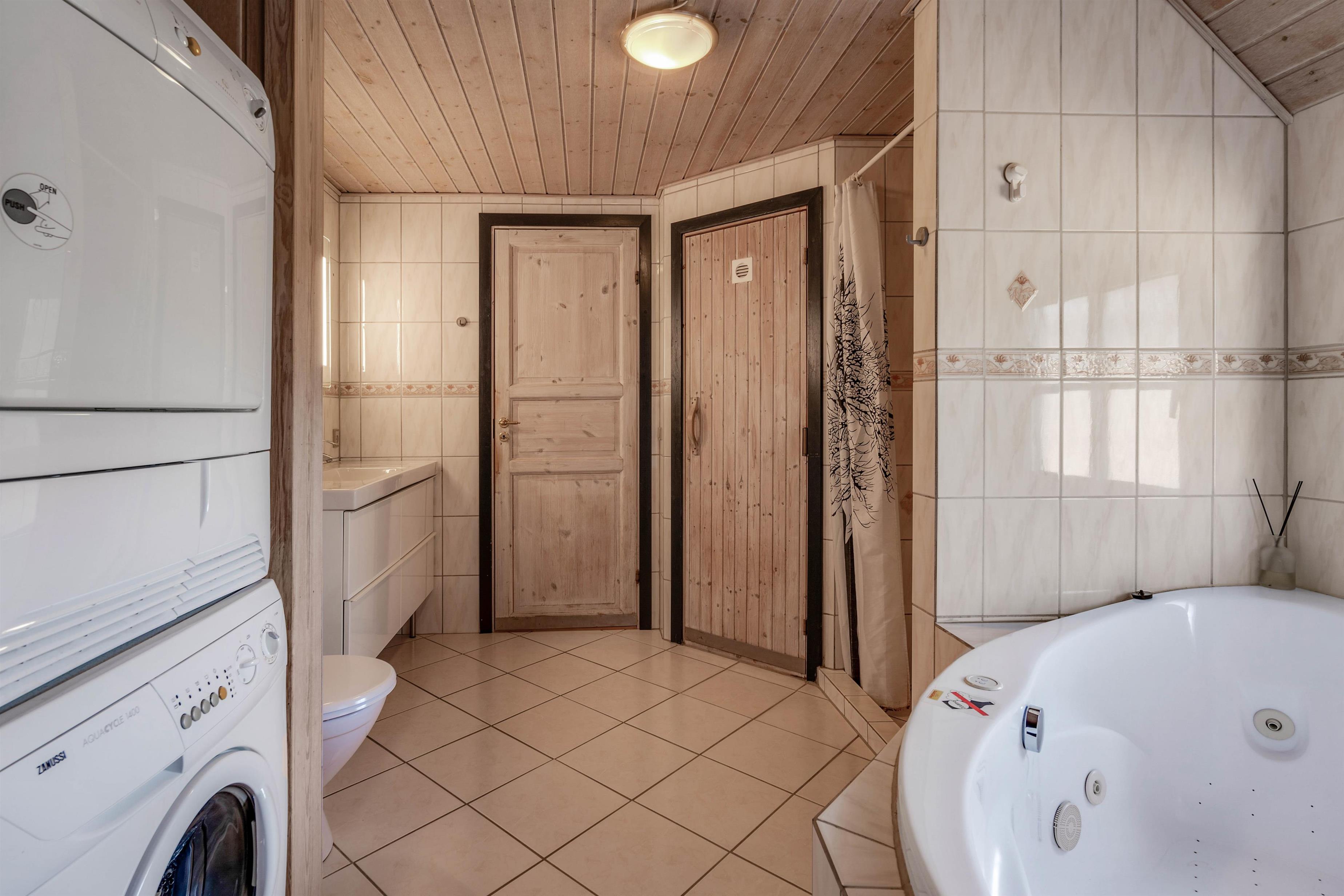 Sommerhuset er også indrettet med både spa og sauna, hvor I rigtigt kan mærke følelse af ferie og ikke mindst velvære. Her skal I ikke tænke på andet end bare at slappe af – det kalder vi ferie. Desuden har sommerhuset hele 2 badeværelser, så I kan undgå den værste kø fra morgenstunden. Og hvis I er 2 familier afsted på ferie, kan hver familie få deres eget badeværelse.