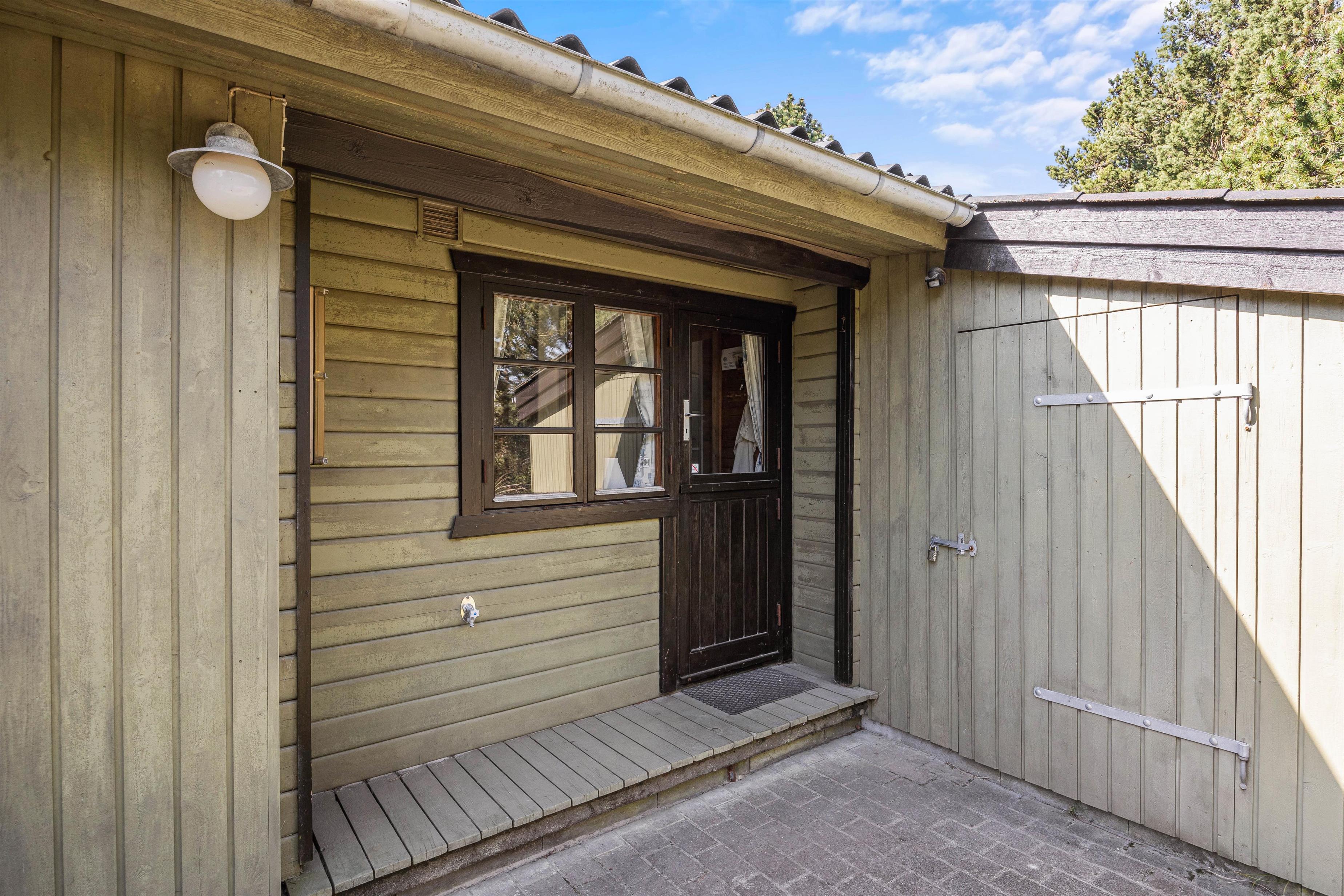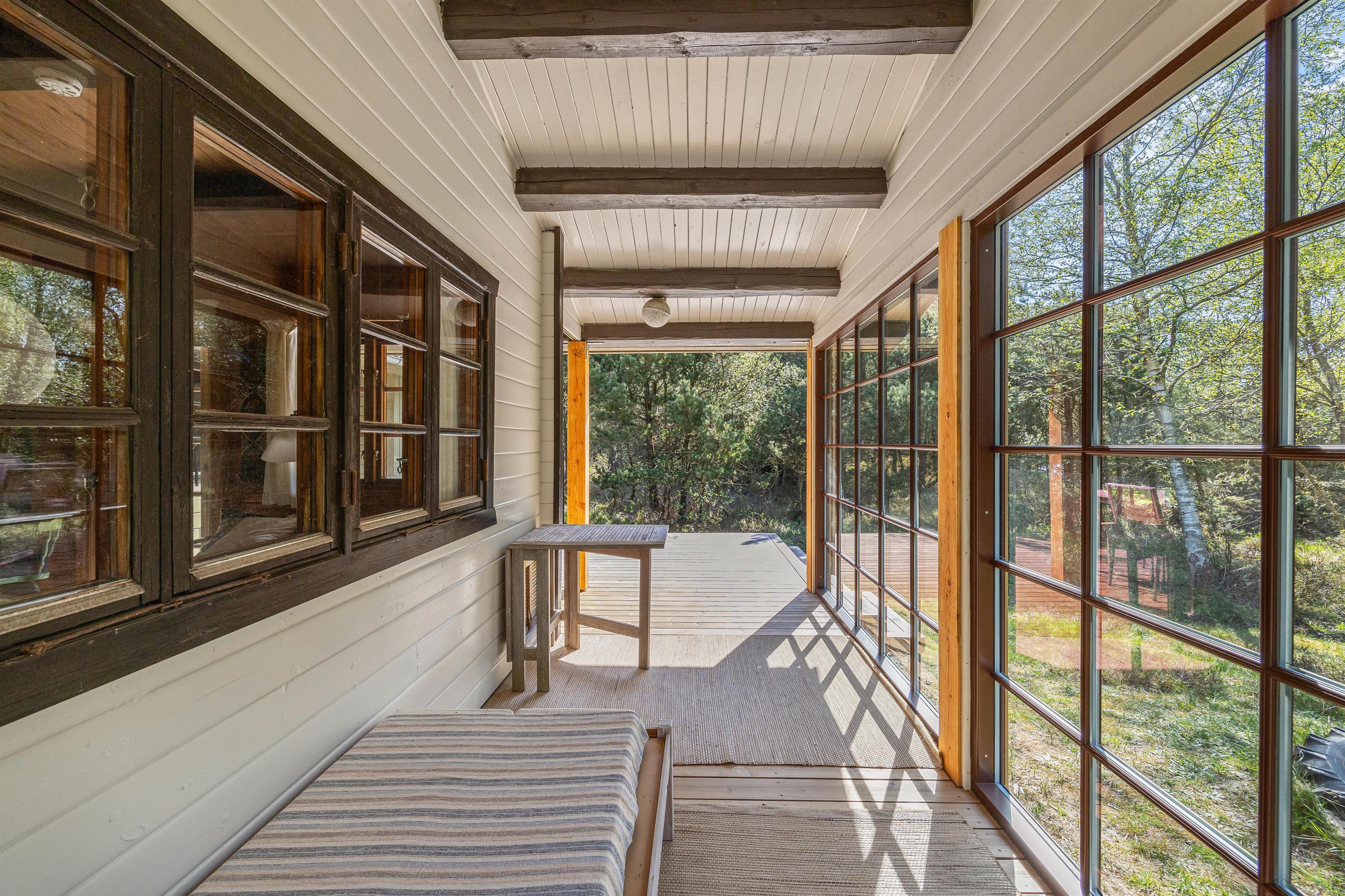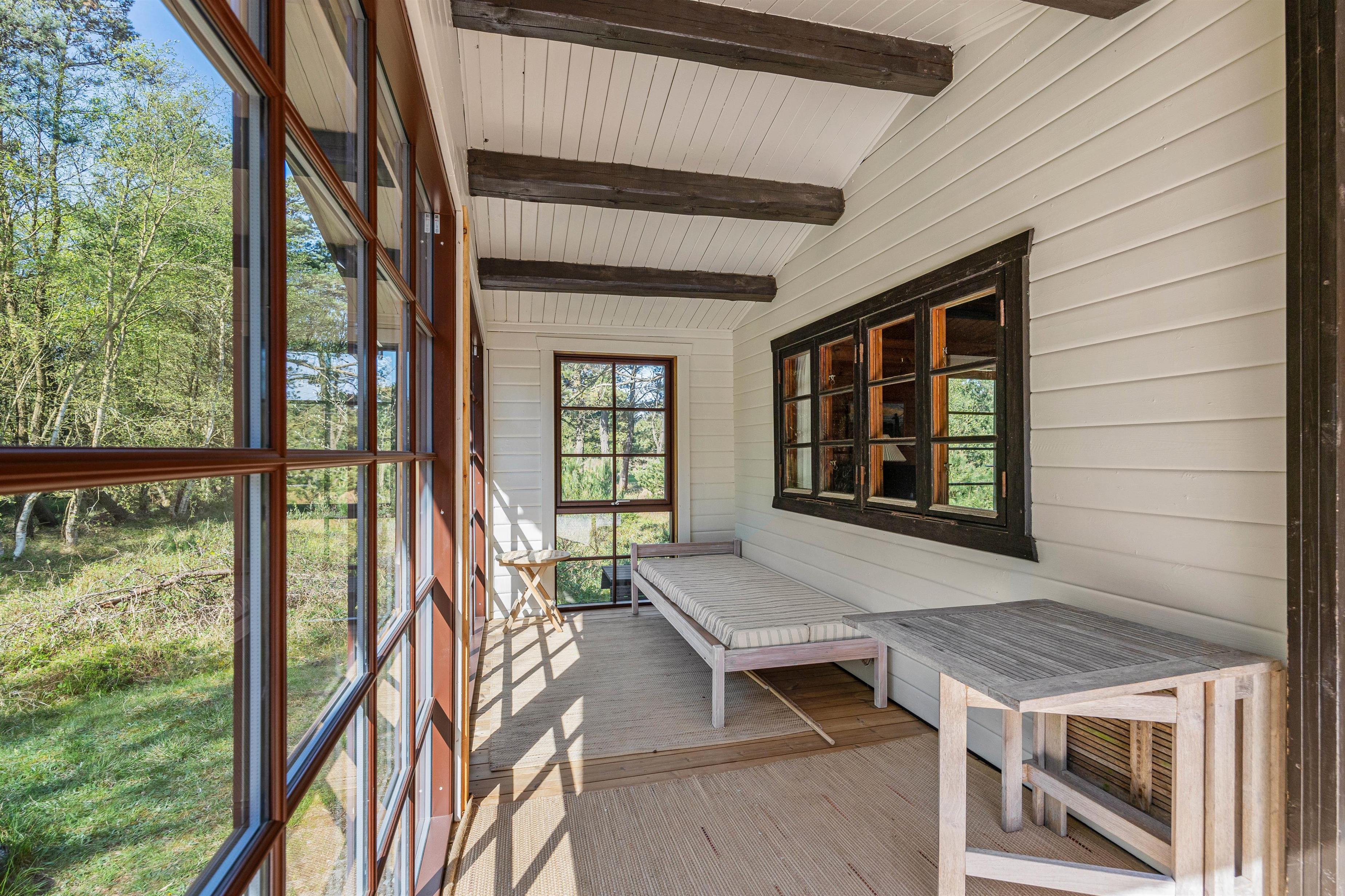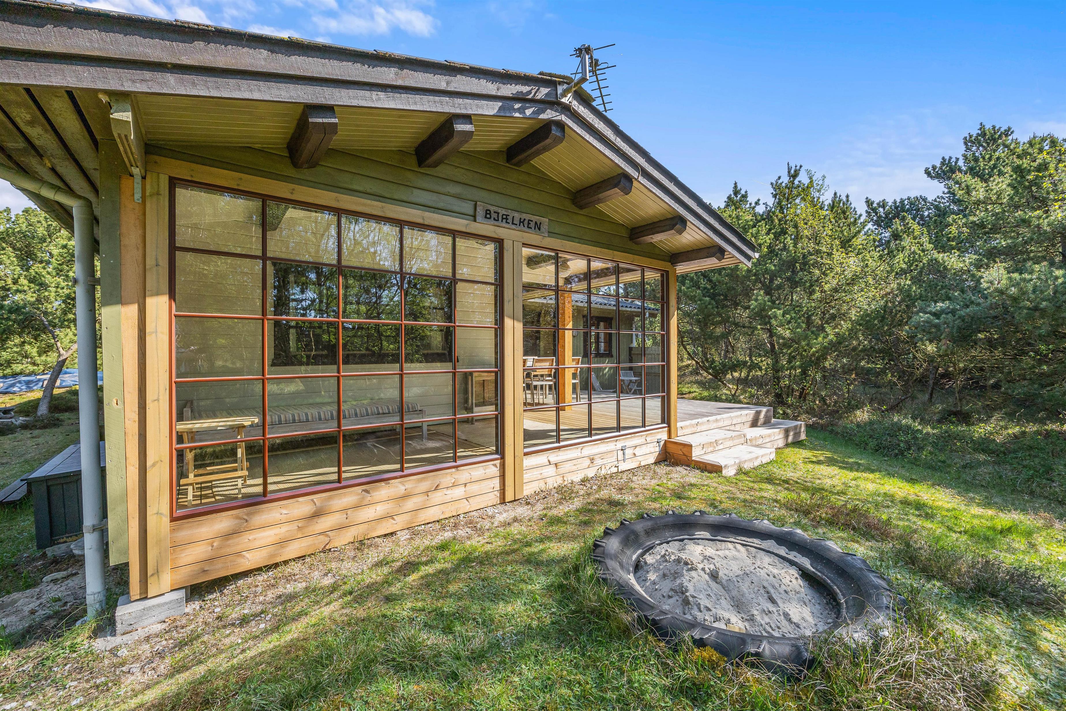 Rundt om feriehuset finder I flere små hyggekroge, hvor I kan sætte jer til rette med en friskbrygget kop kaffe og en spændende bog. Den store, delvist overdækkede terrasse sørger for, at I kan nyde den friske luft og de grønne omgivelser i al slags vejr - og med liggestole, havemøbler og grill til rådighed kan I tilbringe hele dagen udendørs.