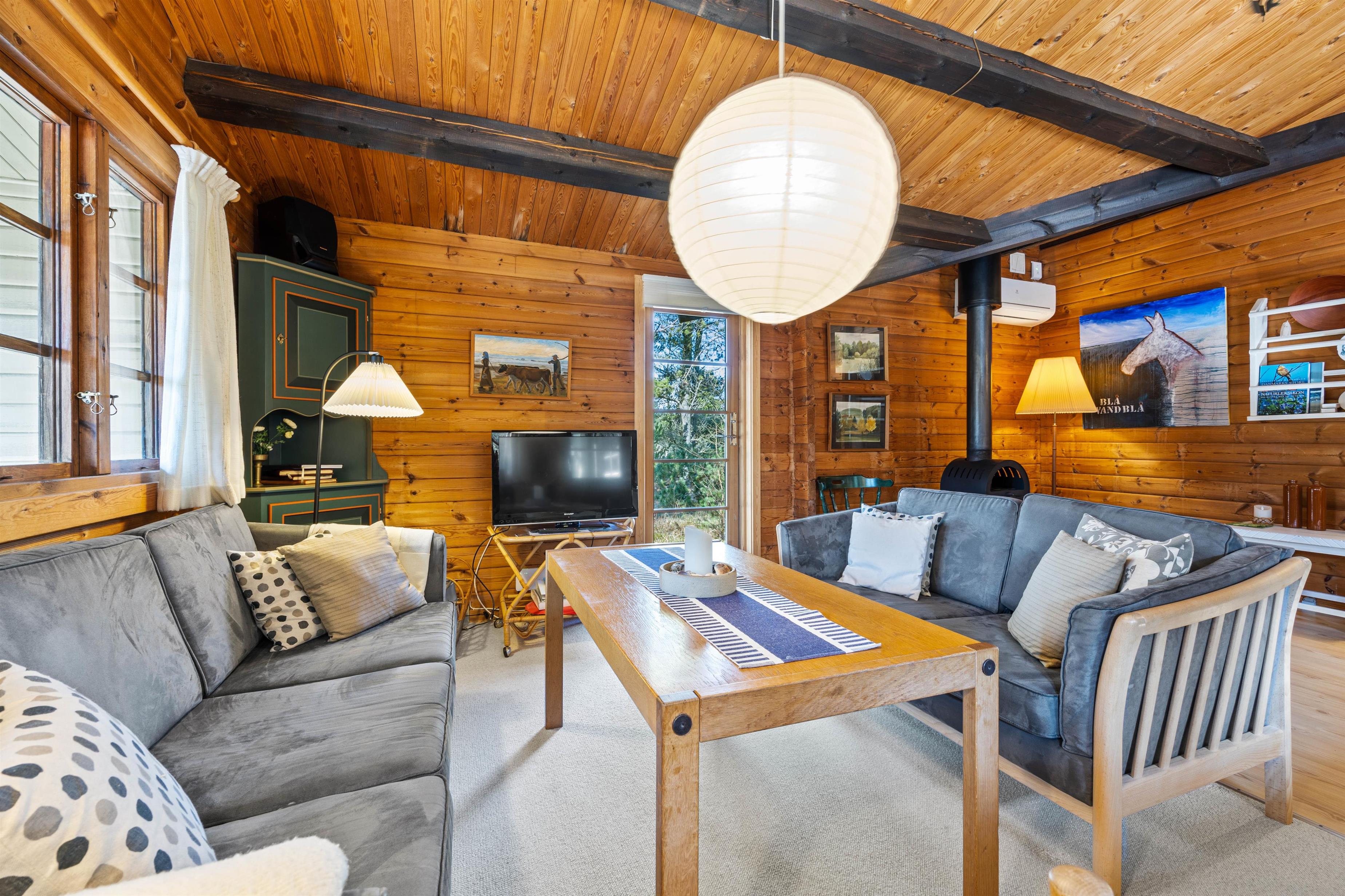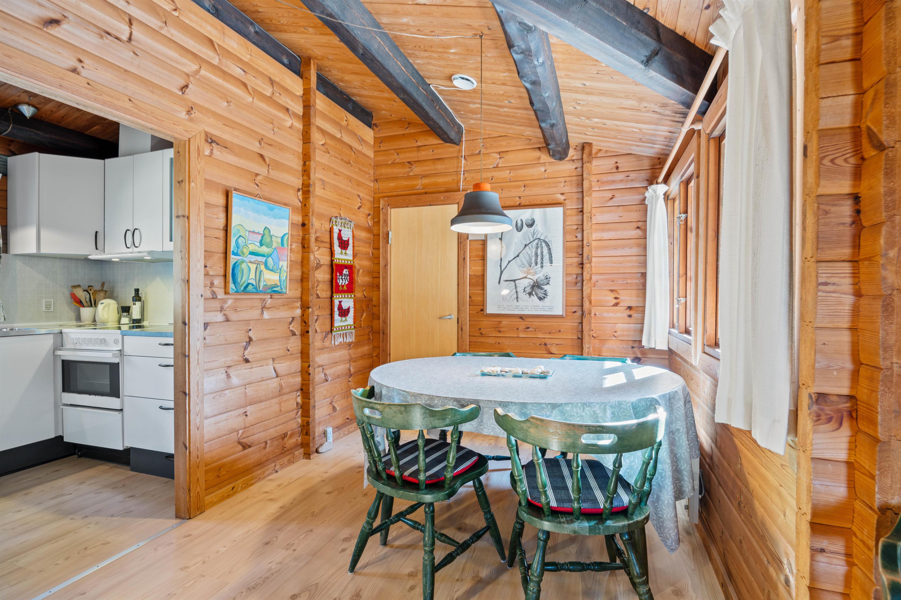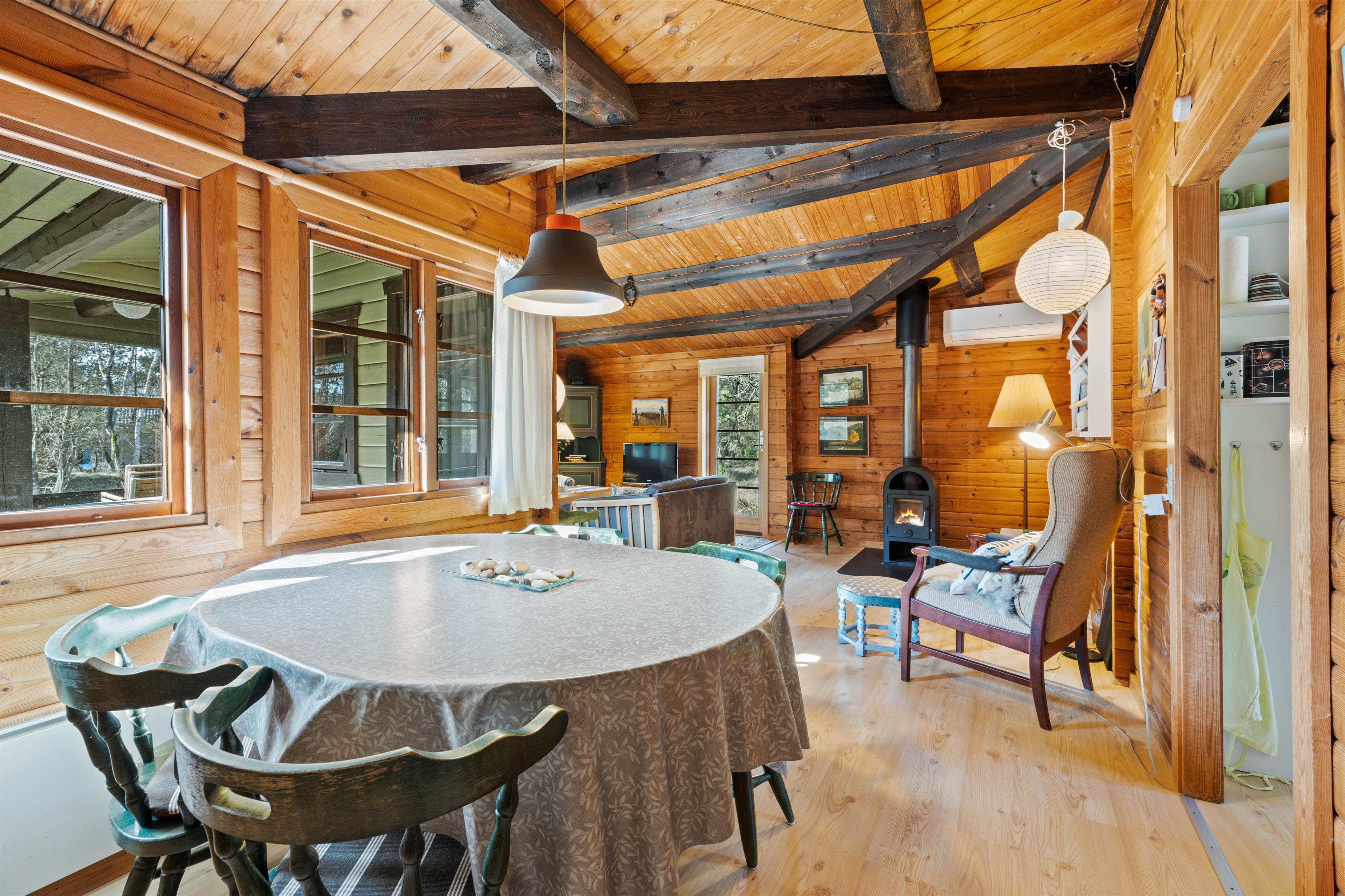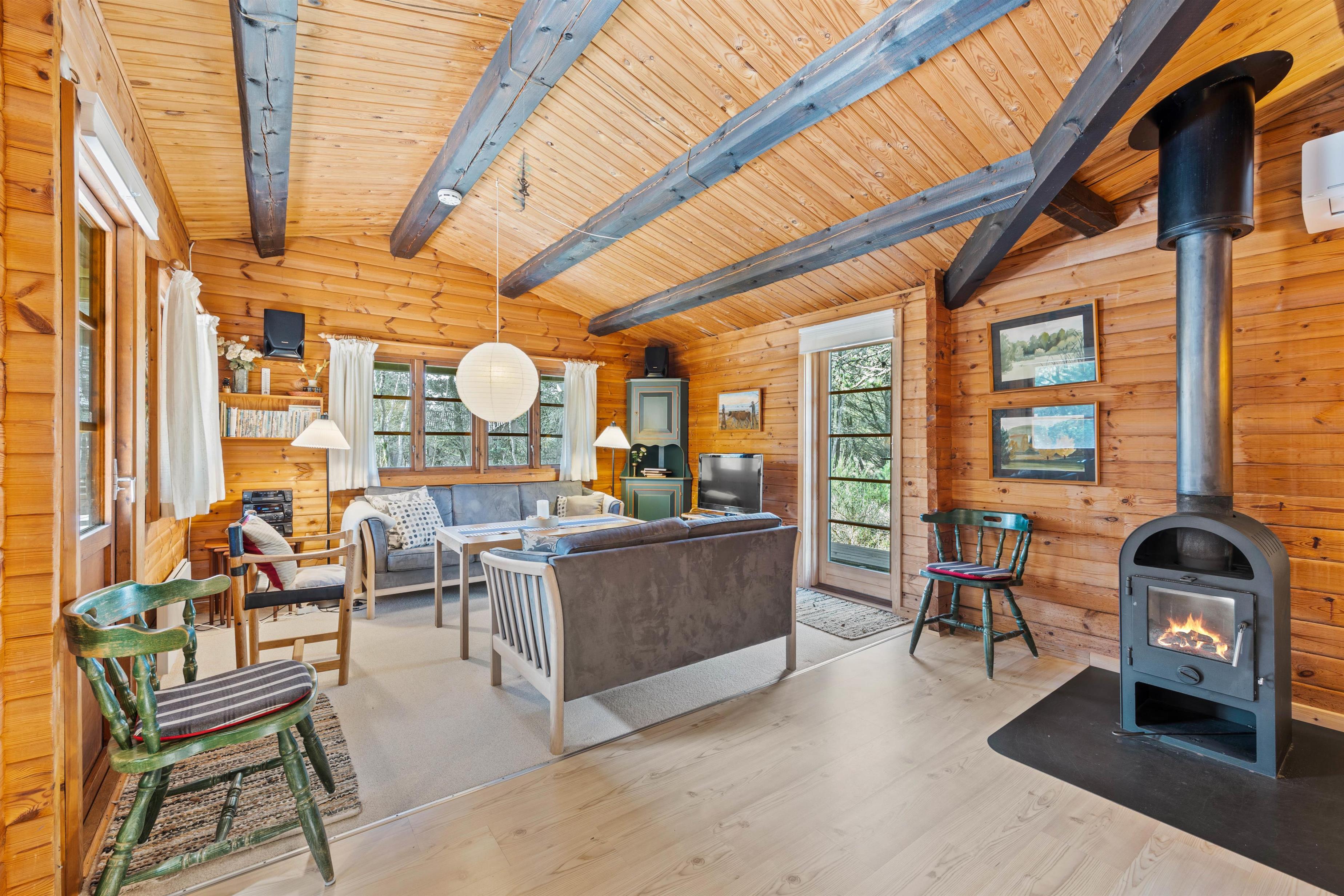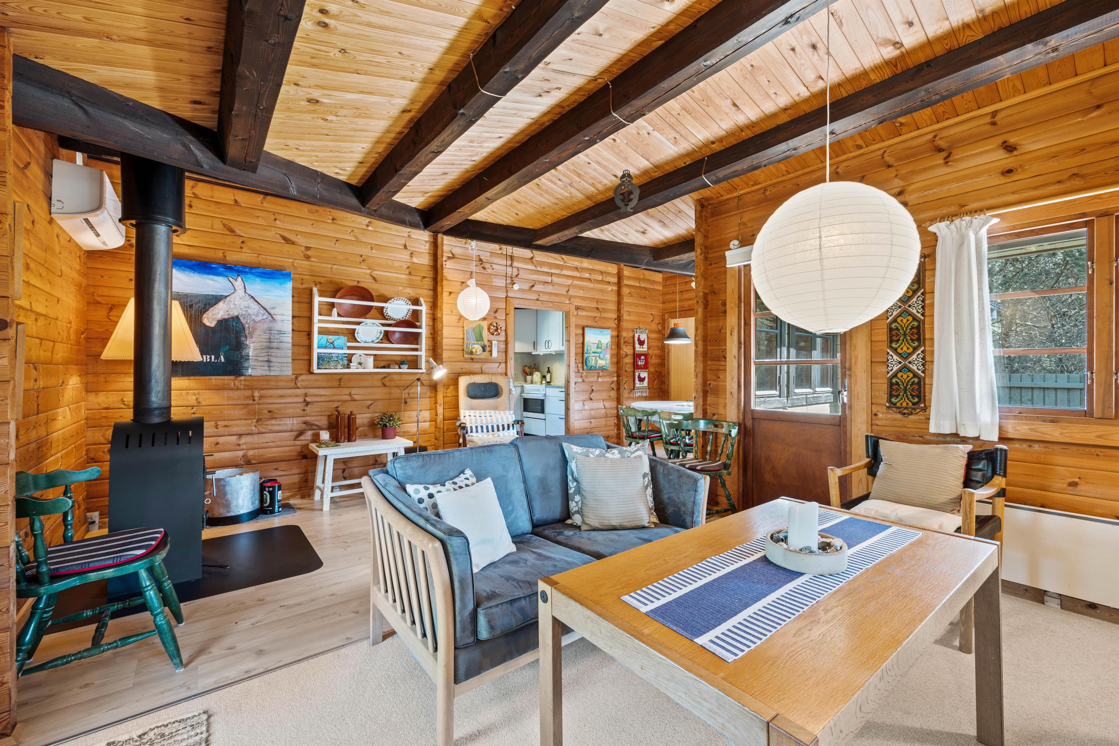 Det klassiske træhus på Kollemarken 32 er ideelt til en hyggelig familieferie eller en romantisk udflugt for to. I vil hurtigt falde til i de charmerende omgivelser, hvor de varme træfarver og pyntedetaljer skaber en hyggelig og hjemlig atmosfære. Brændeovnen i stuen sætter prikken over i'et og fuldender den gode feriestemning.