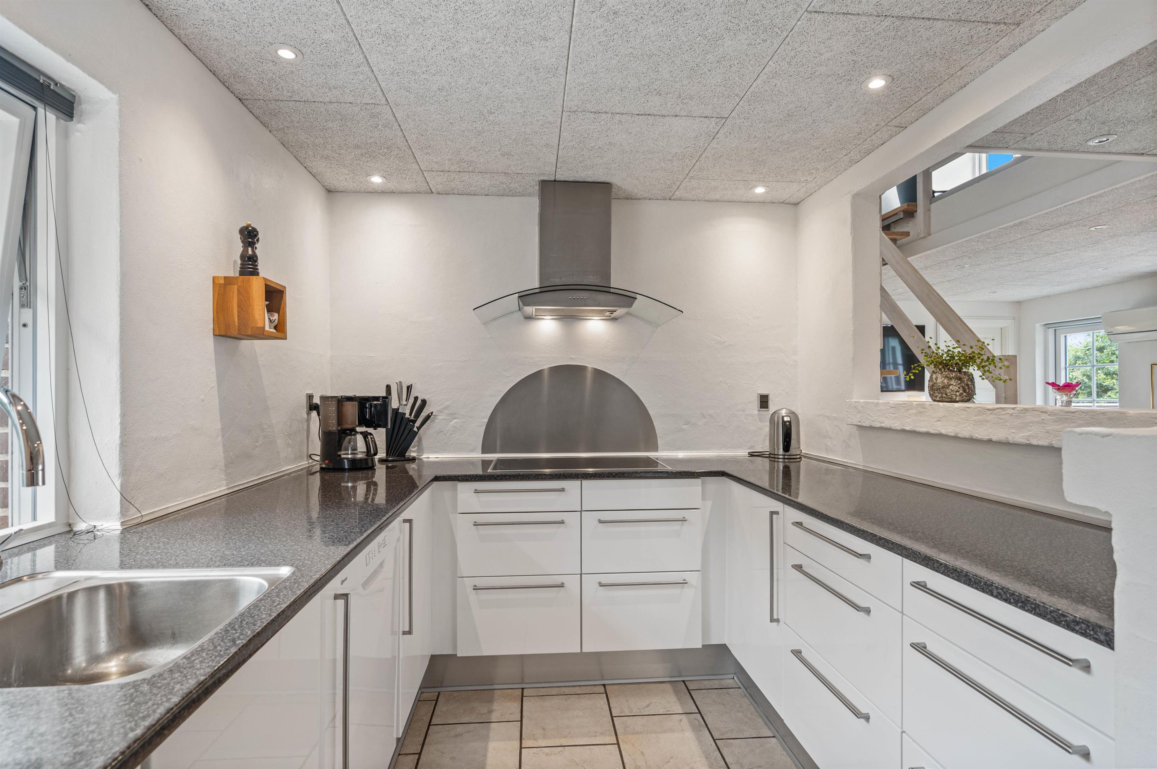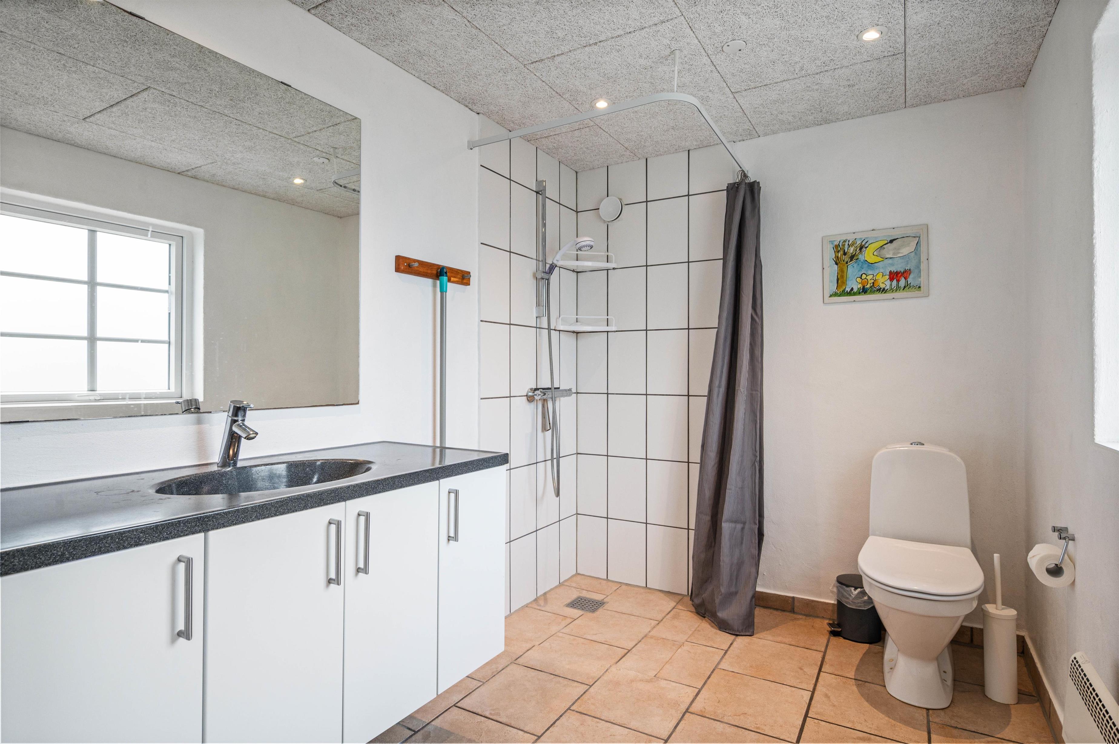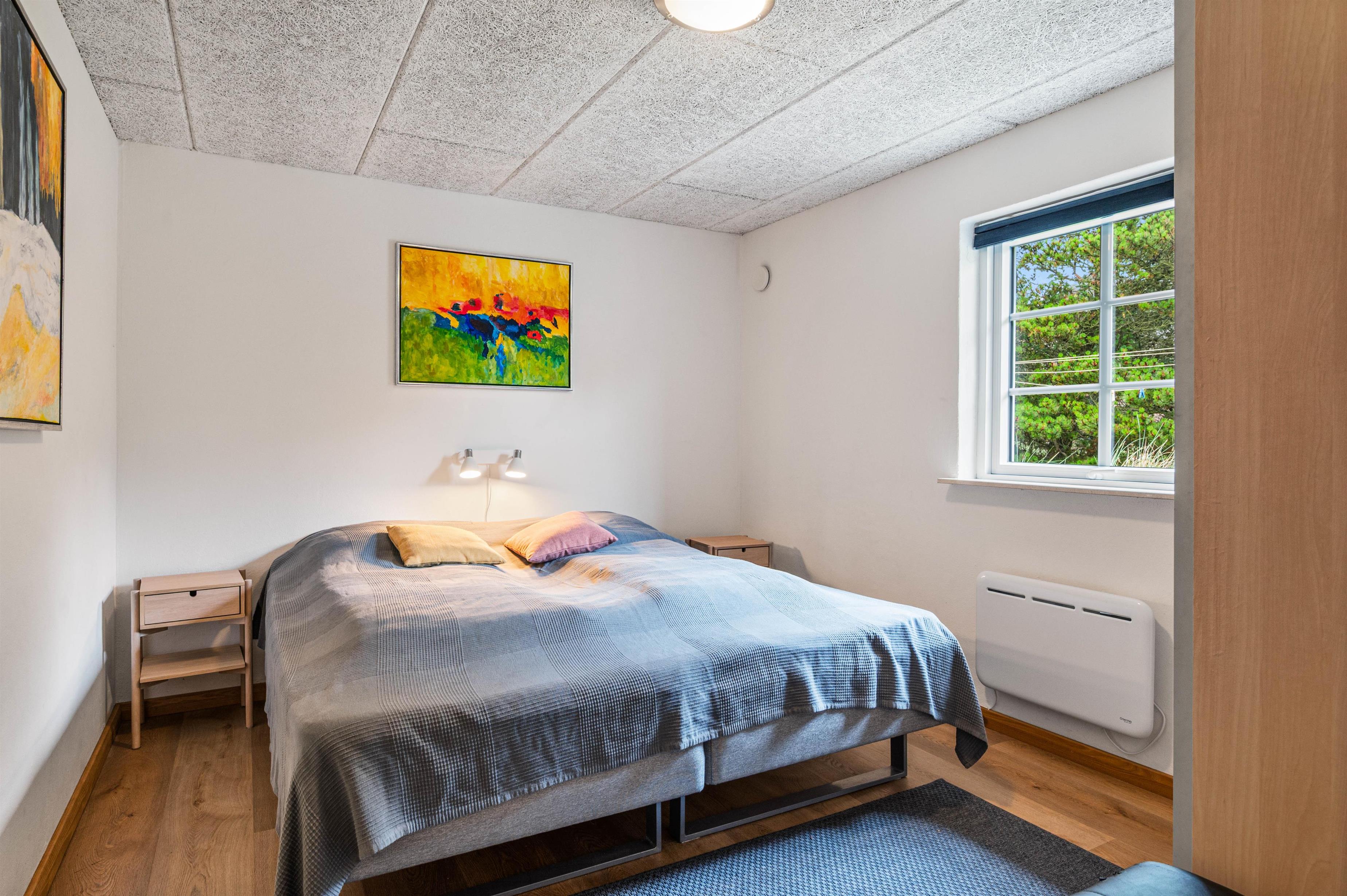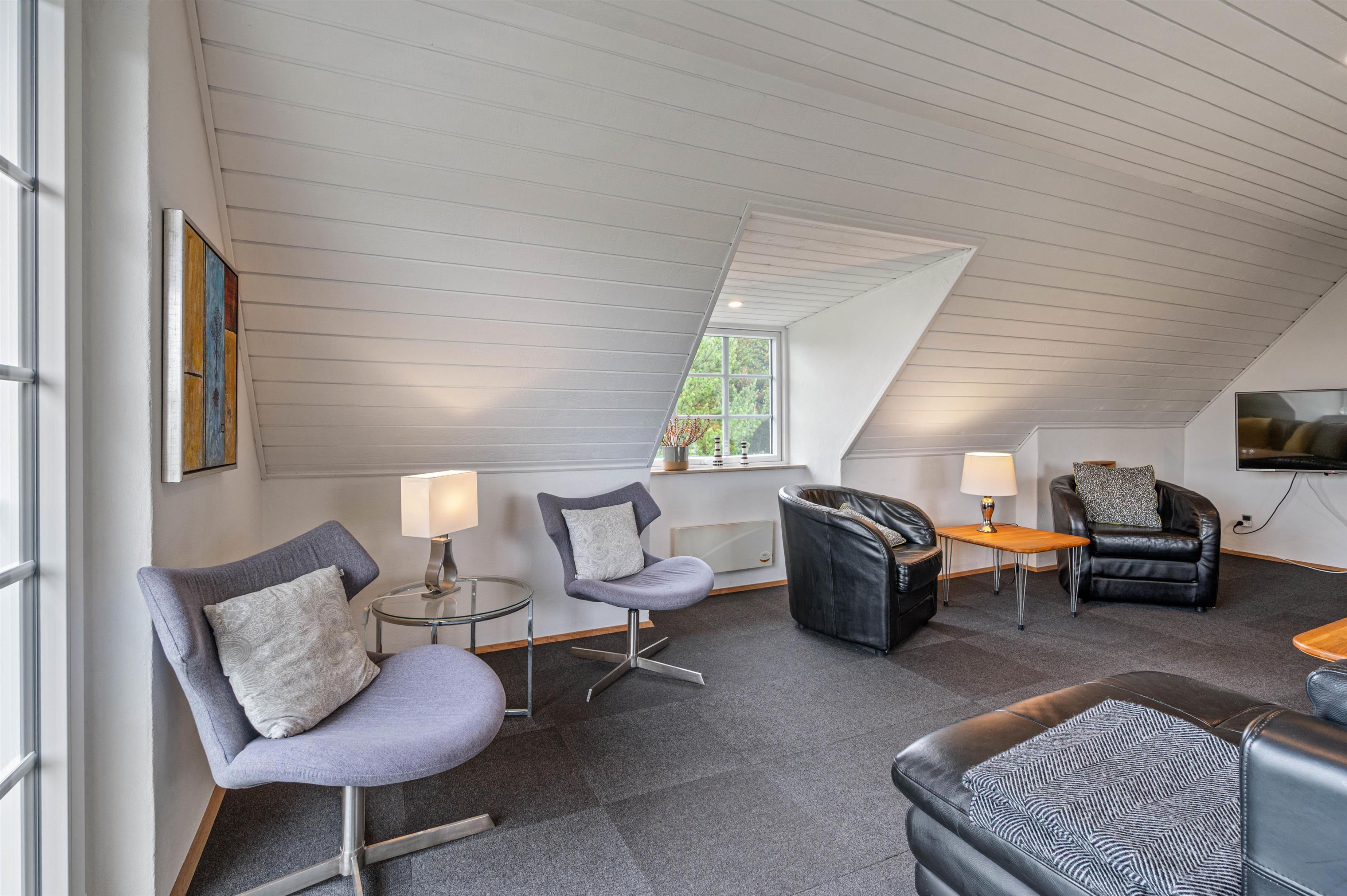 I 4 af de 5 soverum er der dobbeltsenge, og i det 5. soverum, som må betegnes som et hyggeligt lille kammer, er der en trekvartseng. Her vil især jeres børn elske at sove under de skrå vægge.