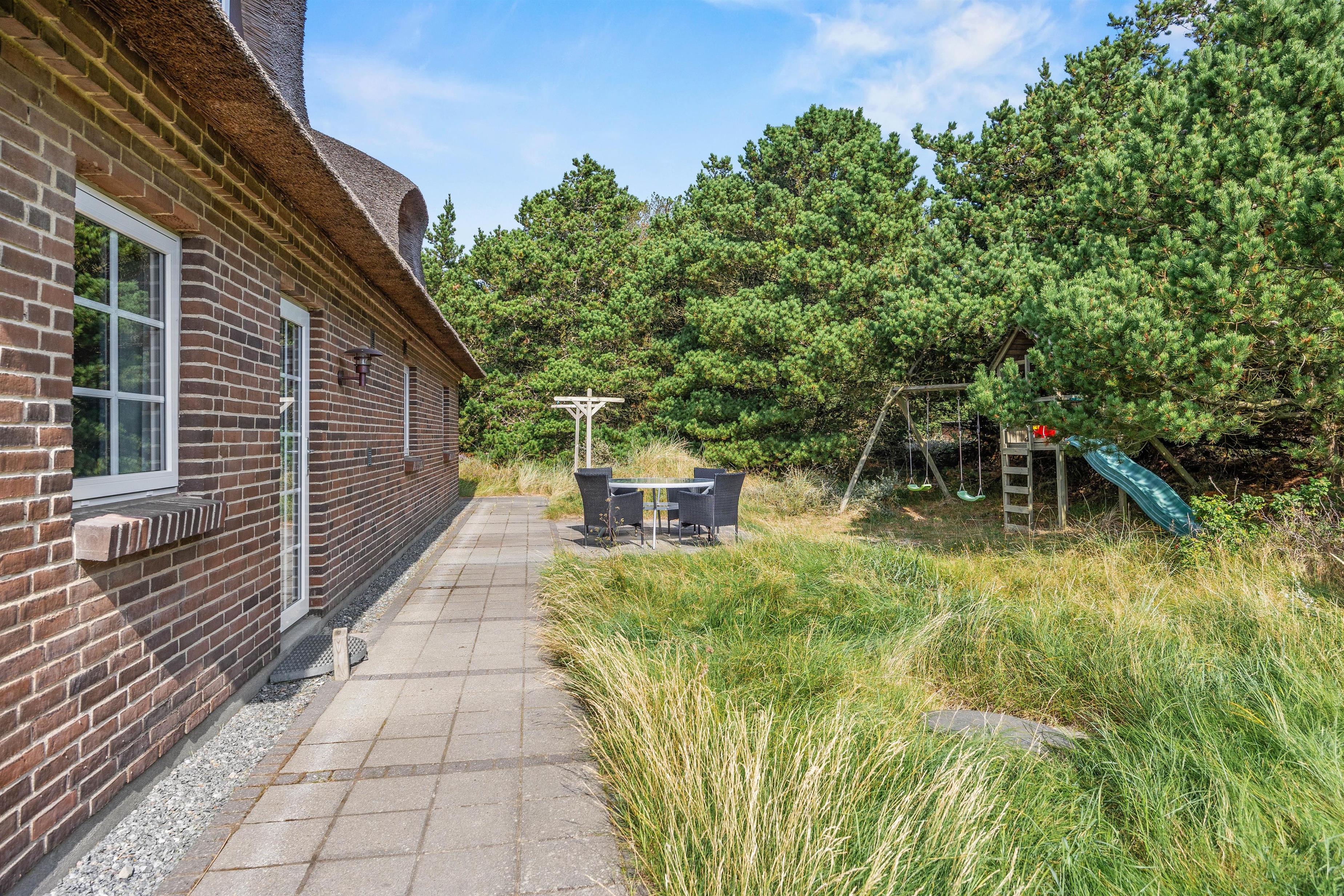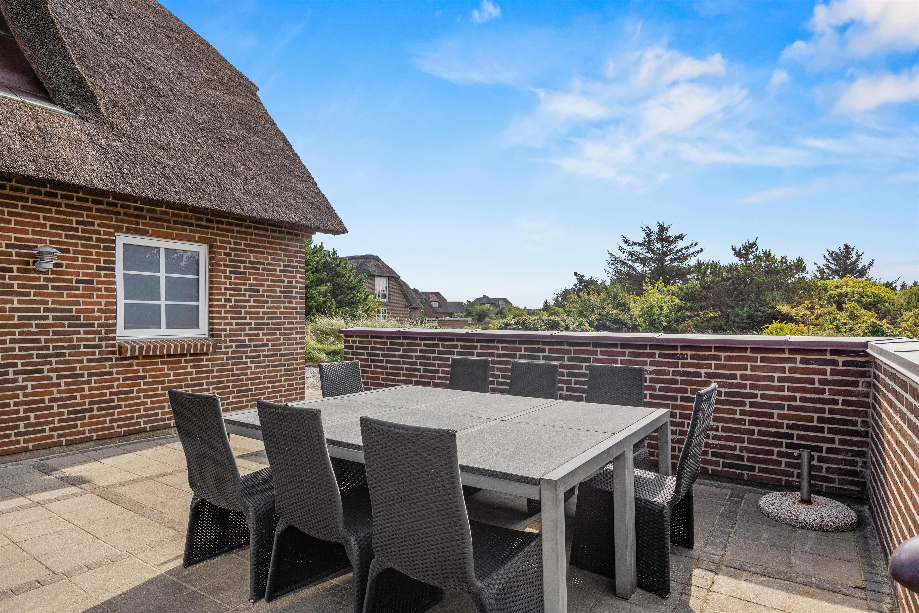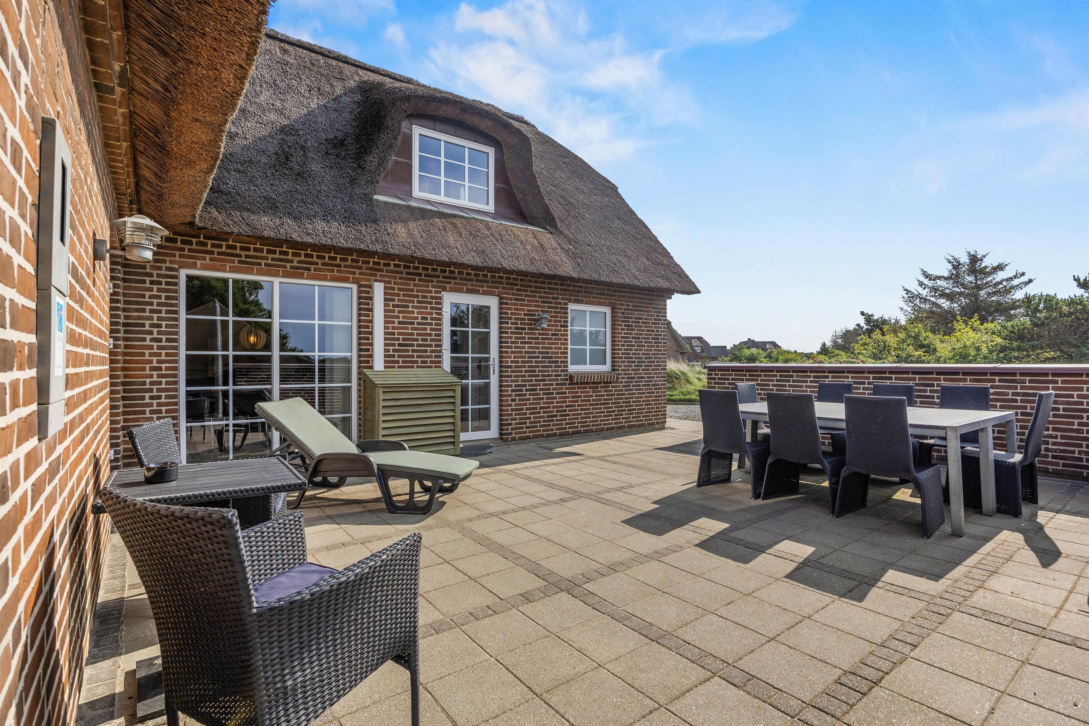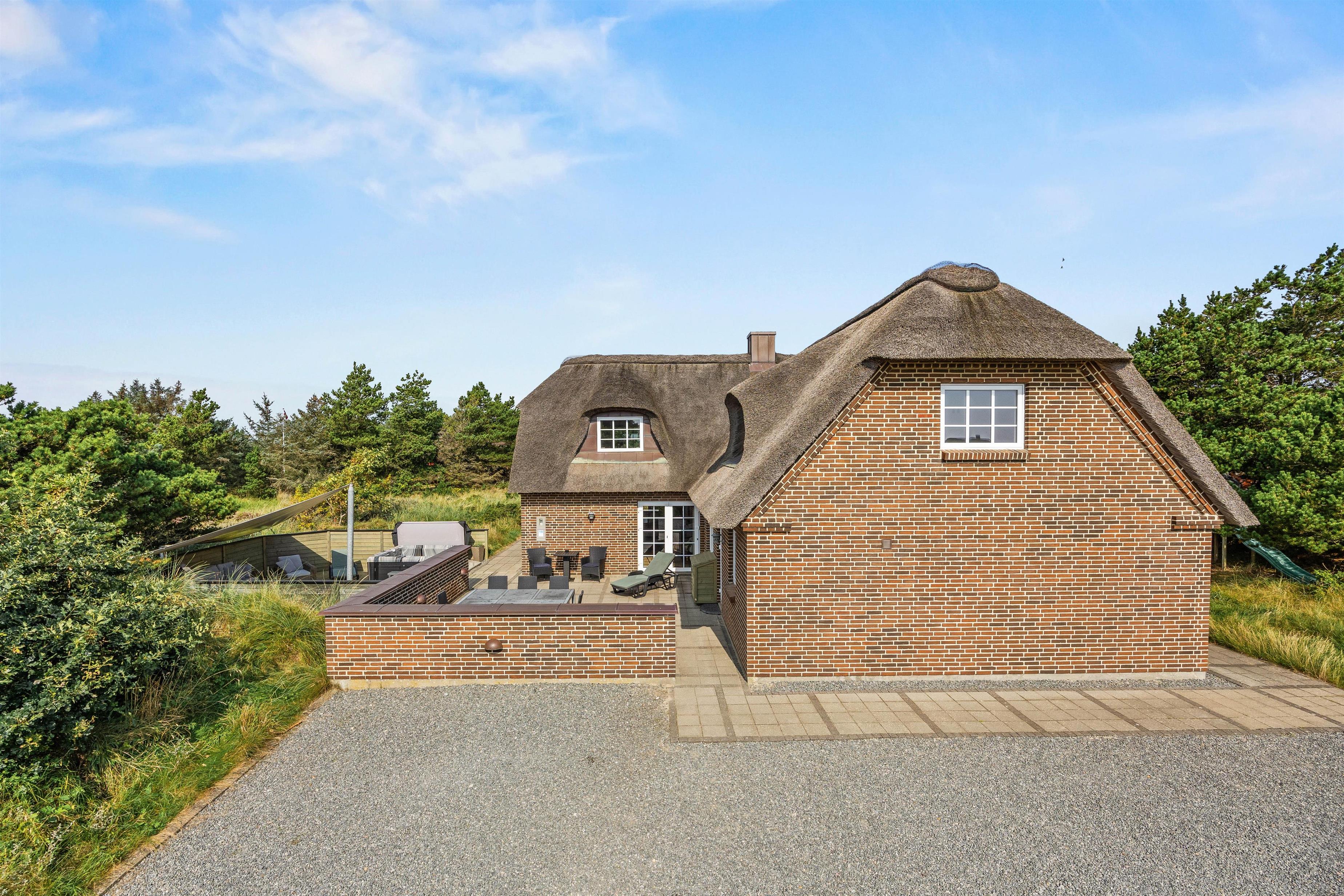 Det hyggelige murstenshus med stråtag er blevet renoveret i 2018, og det kan tydeligt ses på husets indretning, som er stilfuld og kvalitetsbevidst med flot møblement. De i alt 226 kvadratmeter fordeler sig på to etager, hvor I med op til 10 personer finder god plads - et oplagt valg til den næste familieferie.