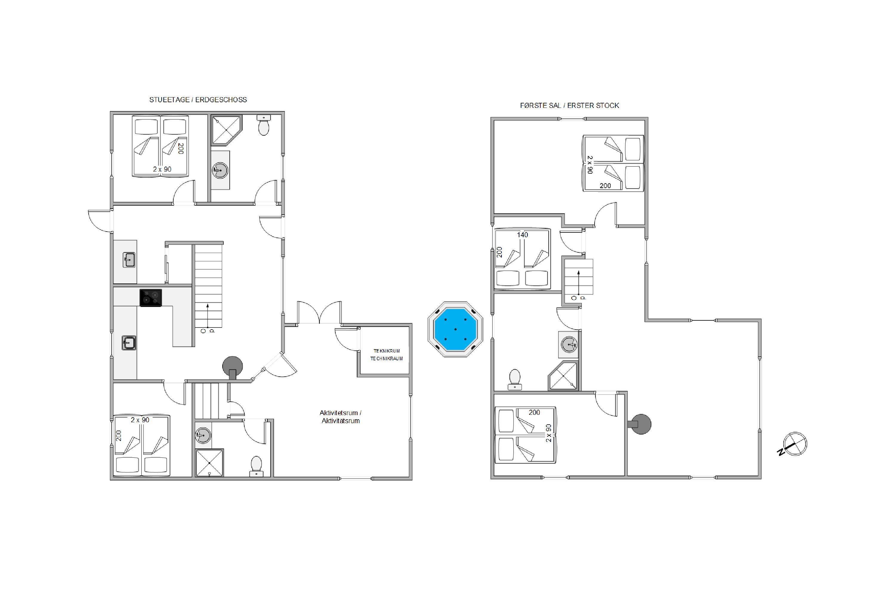 1. soverum/sengestørrelser2x90x200 cm