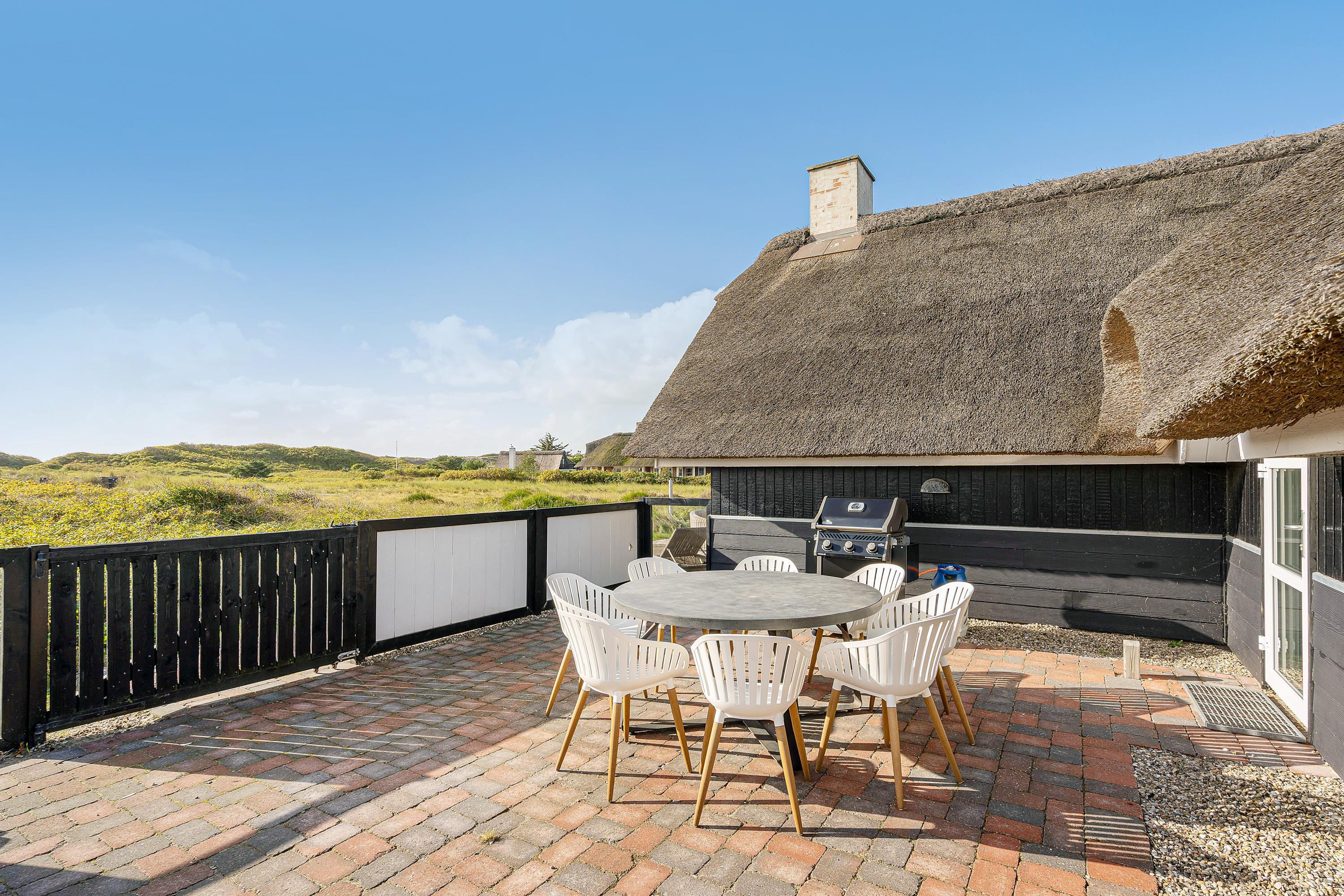 På den store terrasse finder hele familien hurtigt en plads i solen, og der er både skærmet af og lukket af hele vejen rundt, så børnene og hundene kan få lov til at lege frit, mens I soler jer i liggestolene eller nyder et glas kold rosé ved havebordet.