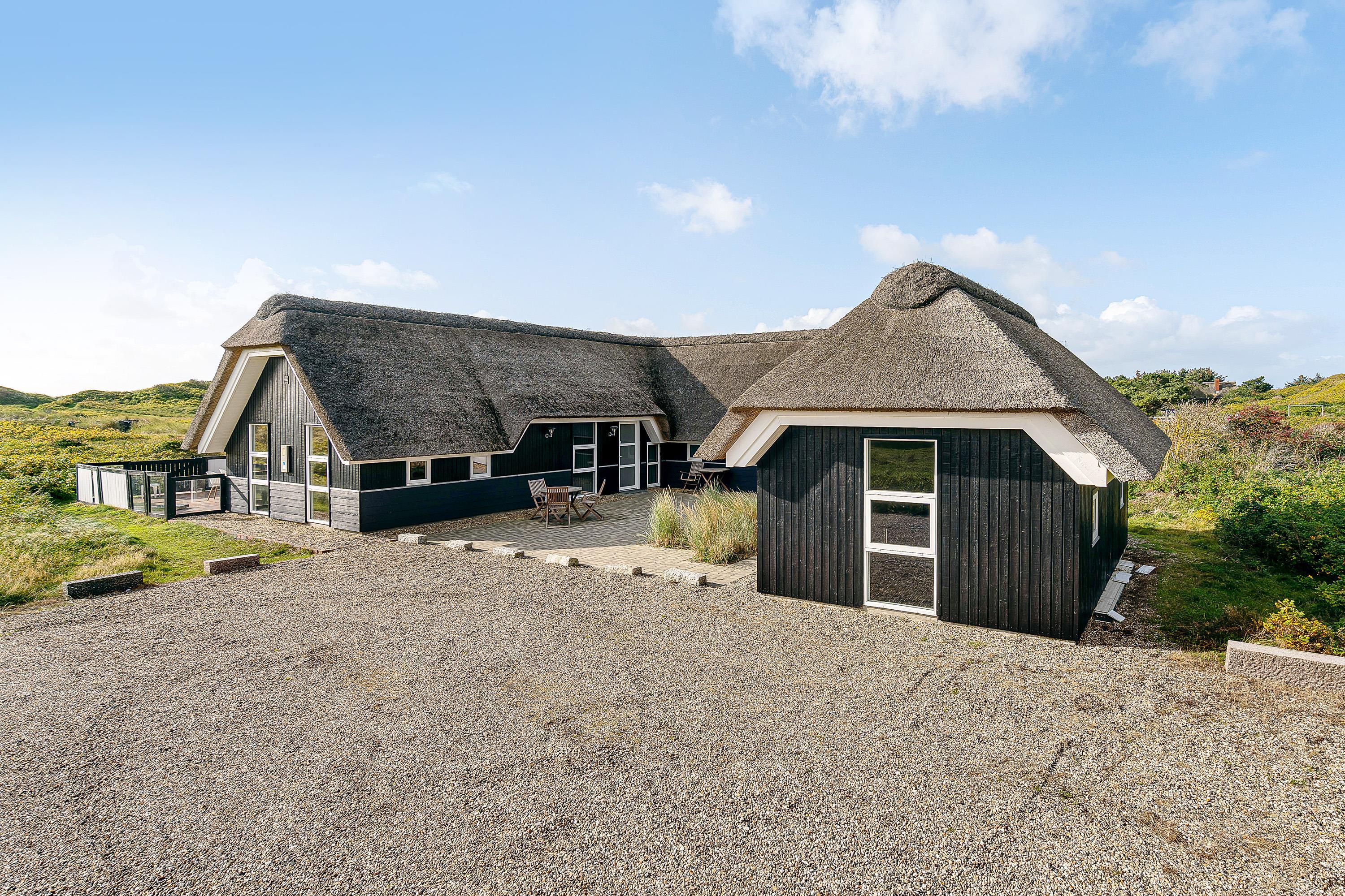 Feriehus med stråtag - aktivitetsrum, sauna og brændeovn