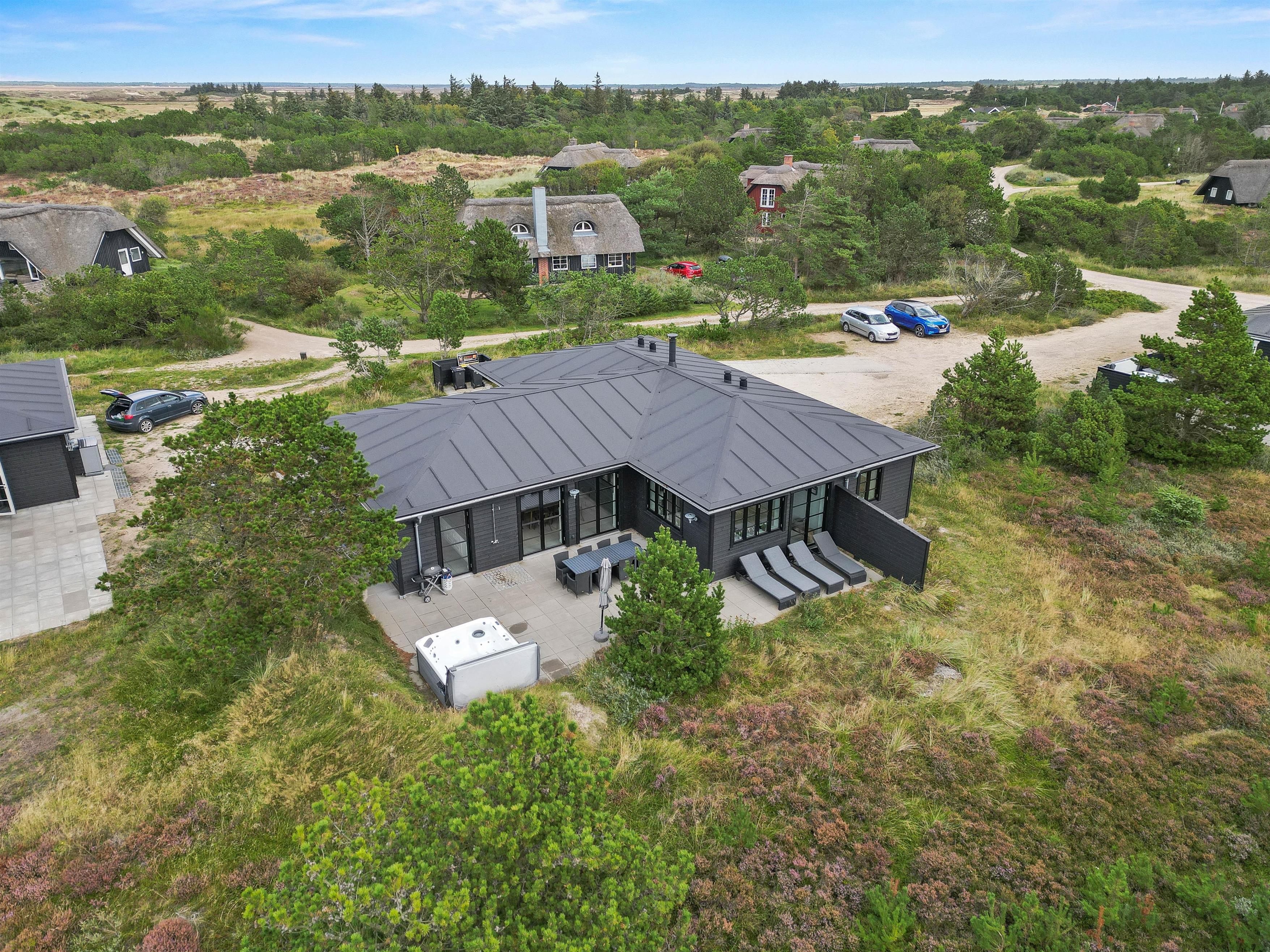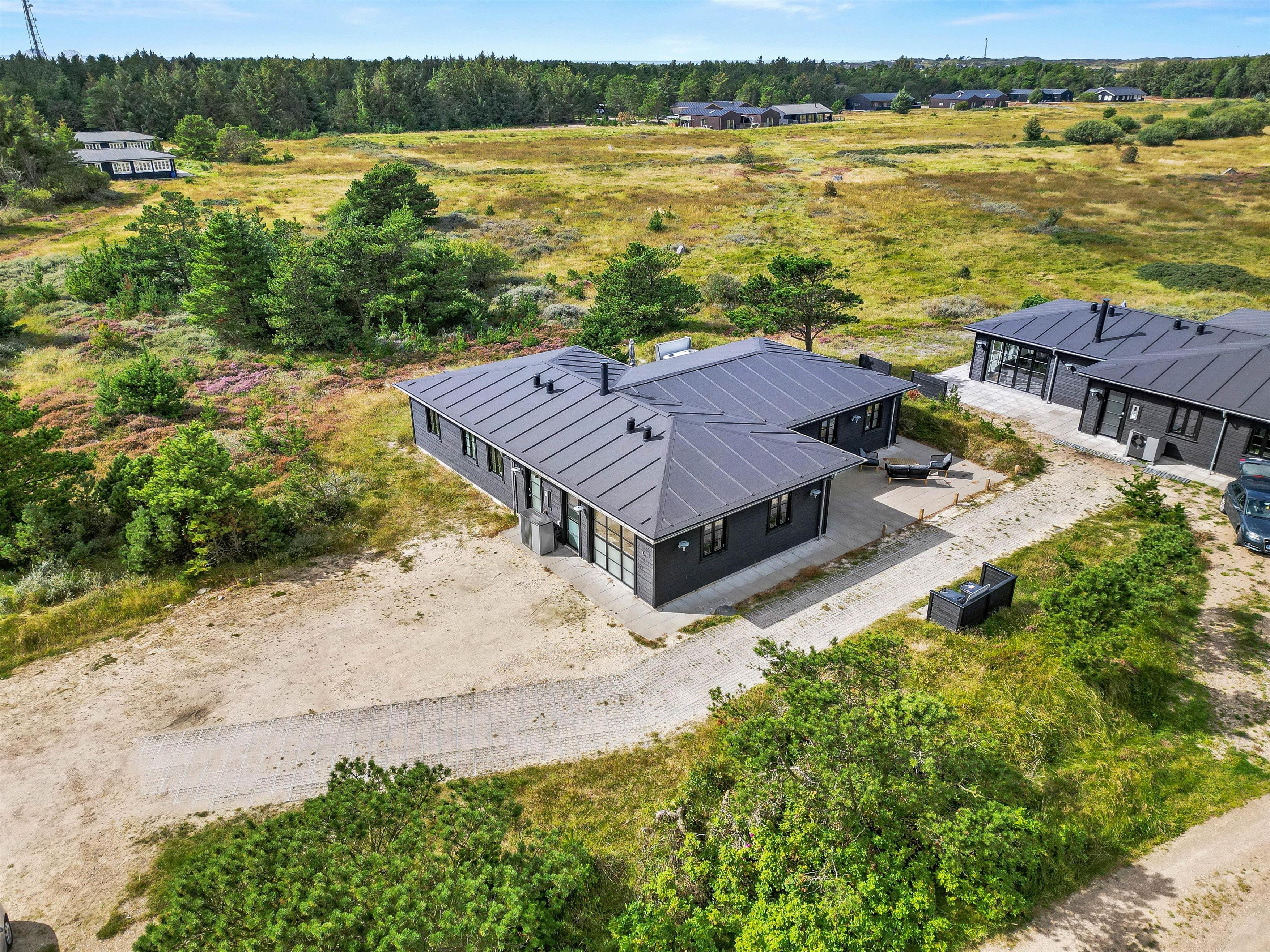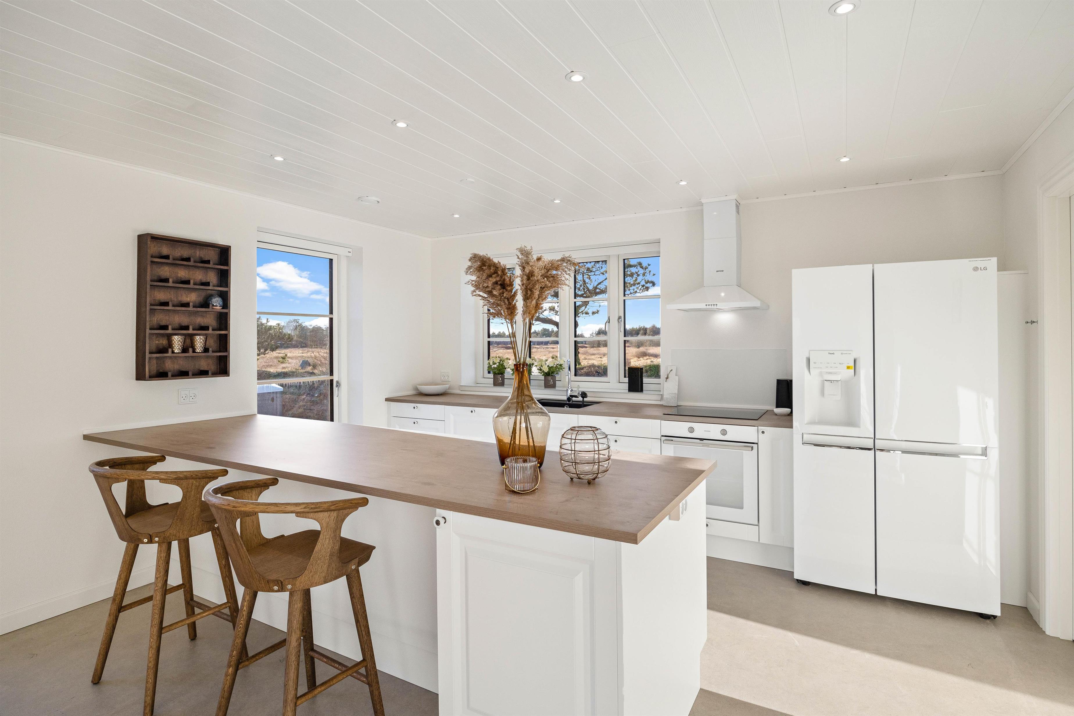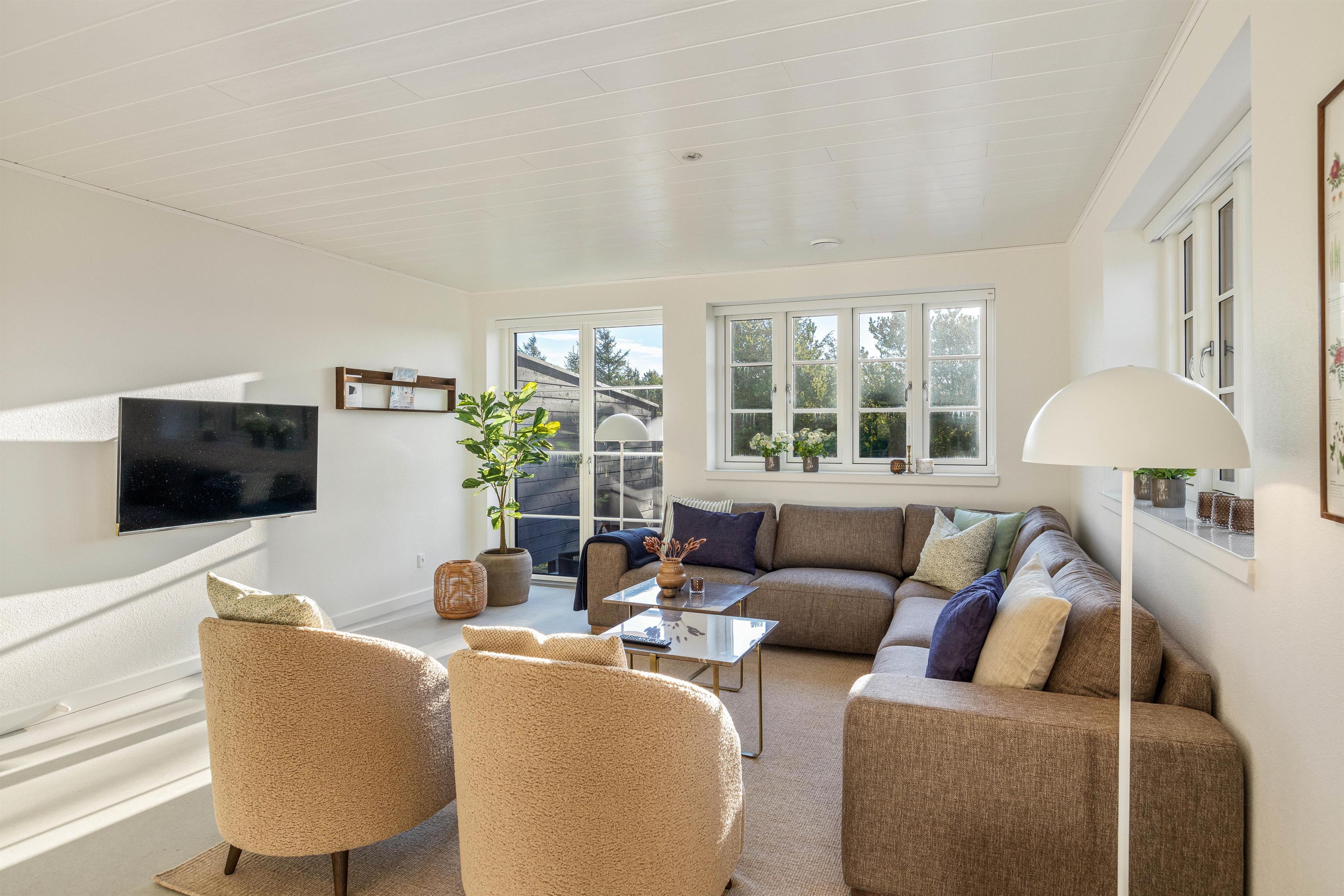 Det skønne sommerhus på Svinget 1C i Blåvand er bygget i 2023, og her bliver I budt velkommen af en indretning, der er både lys og moderne, og I kommer uden tvivl til at føle jer hjemme her på jeres ferie.