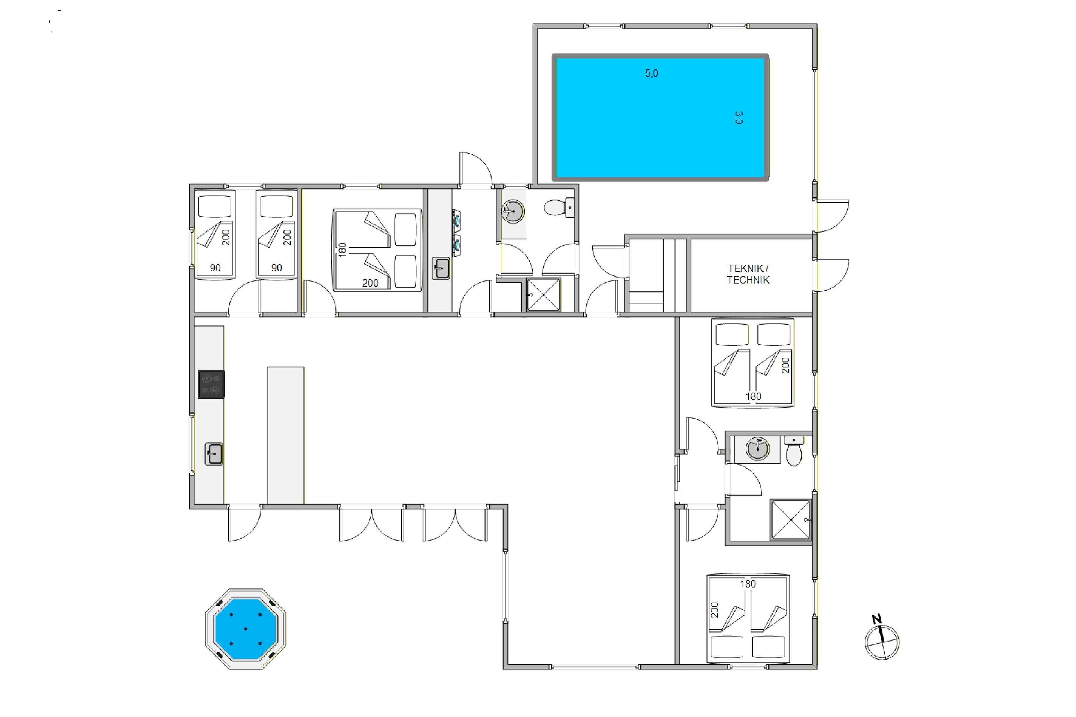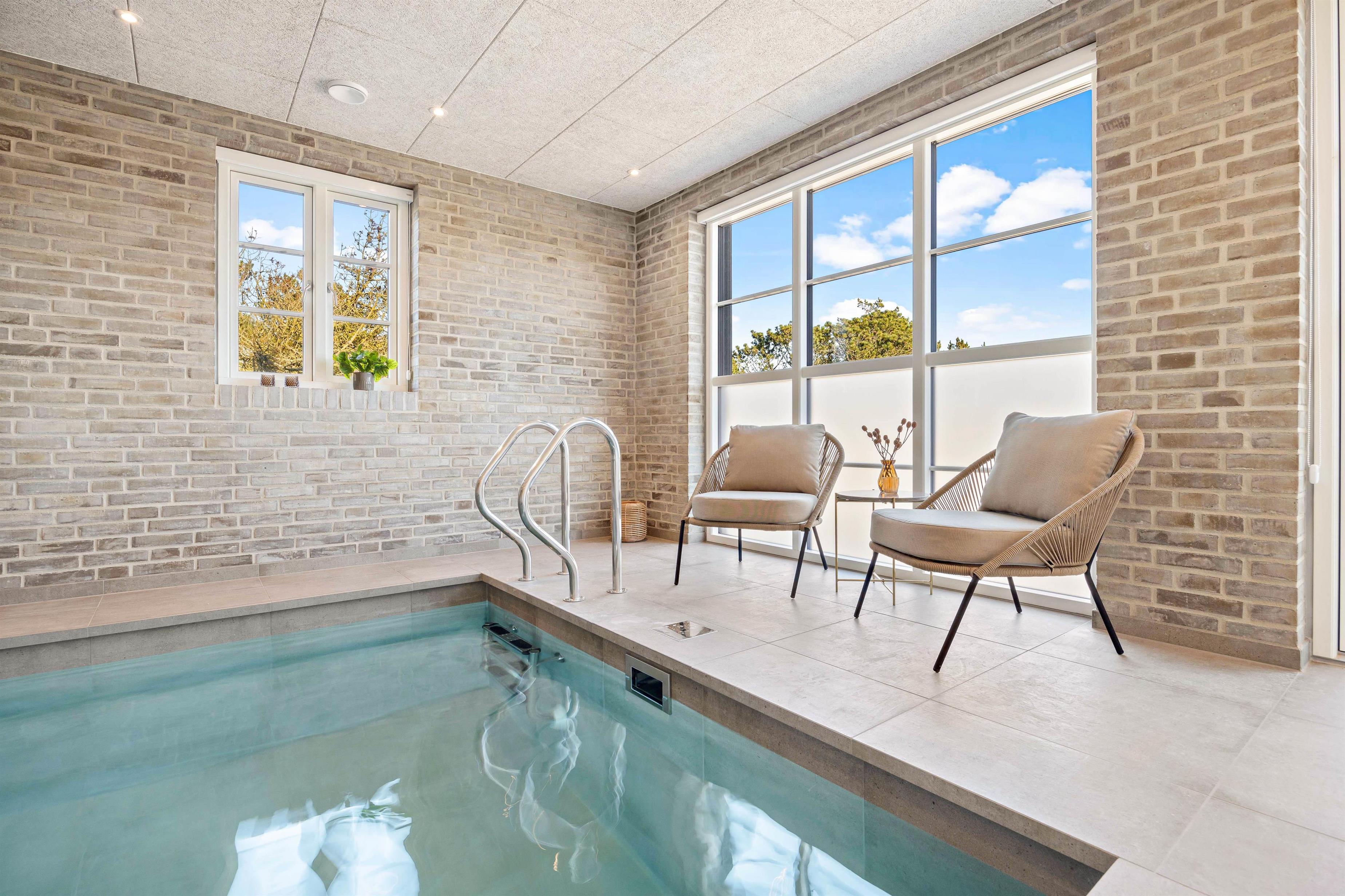 Udover udespa og sauna byder sommerhuset også på en 15 kvadratmeter stor indendørs pool, som bliver et sikkert hit hos feriens vandhunde, der helt sikkert kommer til at tilbringe mange timer med sjov og leg i poolen i løbet af ferien.