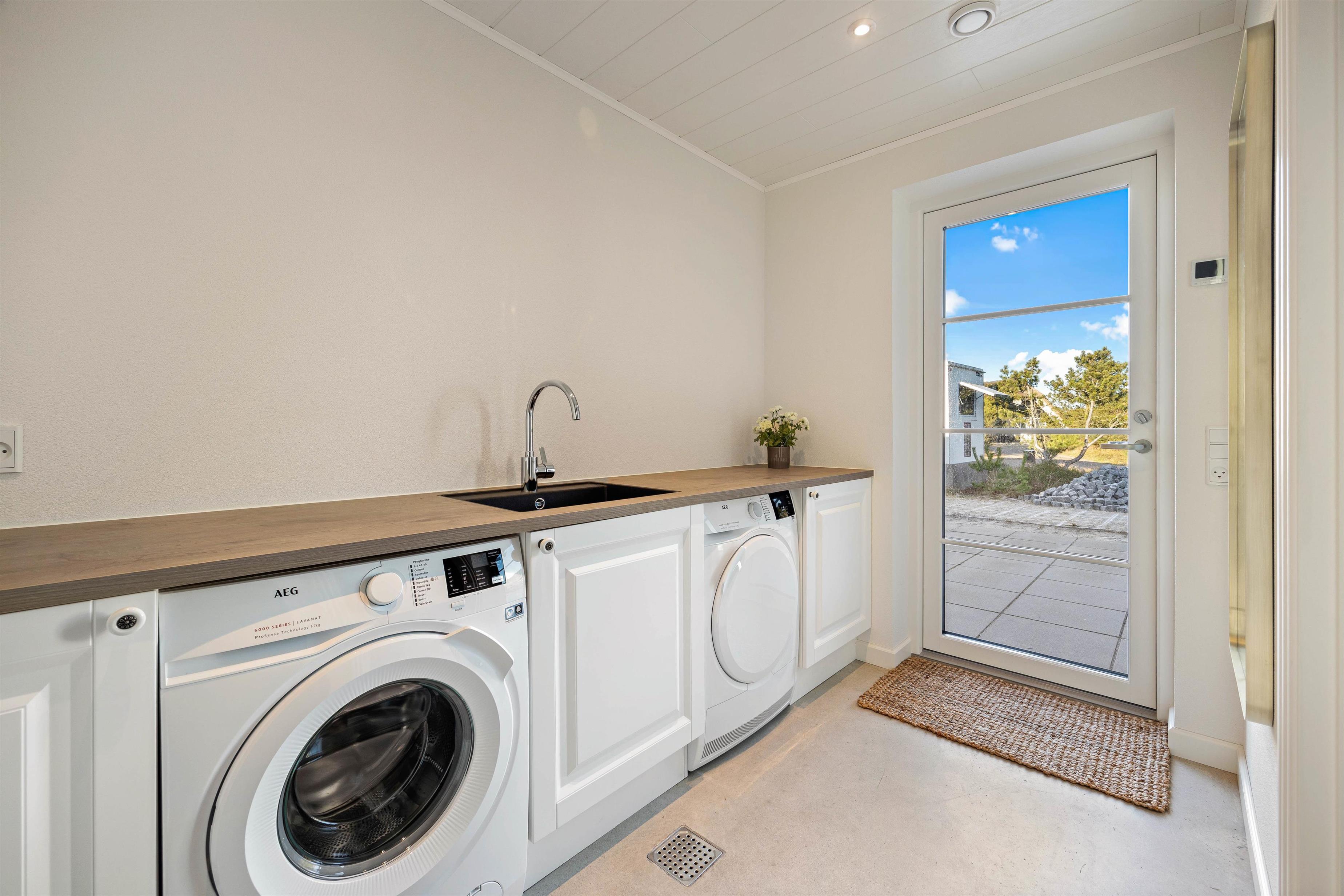 I alrummet fuldender brændeovnen den hyggelige feriestemning med sin knitren og varme. Derudover er der også en varmepumpe i feriehuset, der sørger for et godt indeklima på energivenlig vis, samt gulvvarme i stue, soveværelser og badeværelser, så I slipper for at fryse om tæerne.