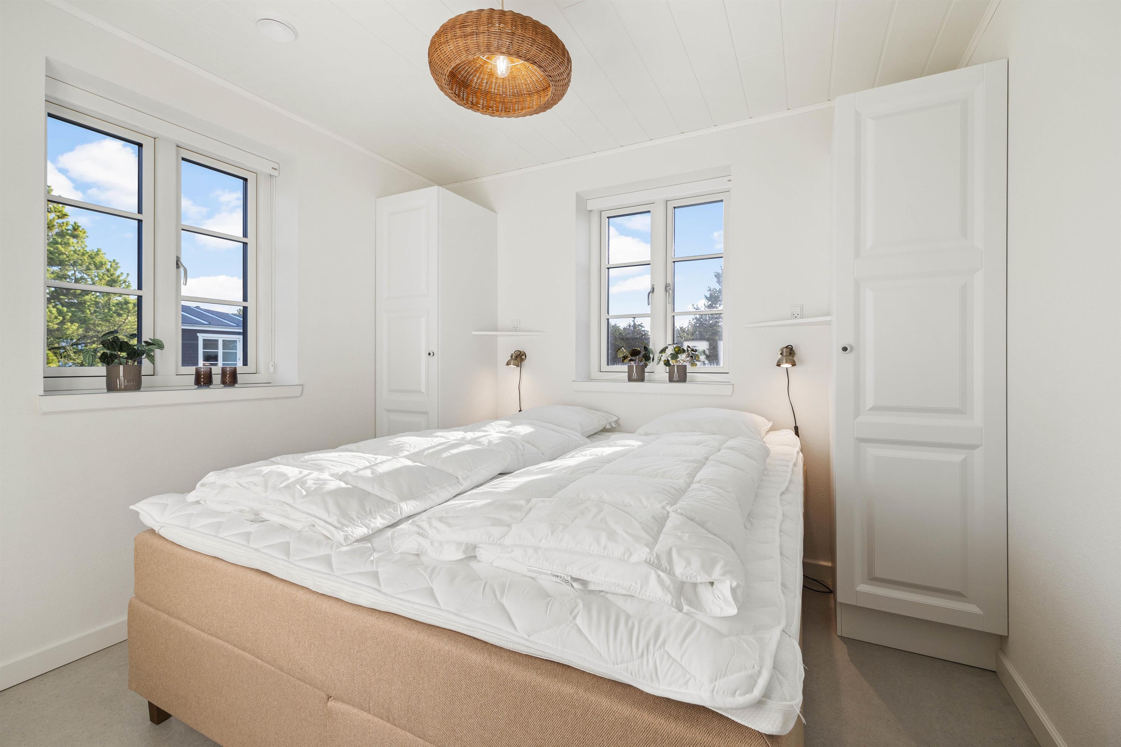 Sommerhuset rummer 4 gode soveværelser, som I kan søge mod, når feriedagen lakker mod enden. 3 af soveværelserne er indrettet med en dobbeltseng hver, mens det fjerde er indrettet med 2 enkeltsenge, som I kan få jeres skønhedssøvn i på ferien. Med hele 3 badeværelser i feriehuset slipper I desuden for at starte næste dag med at stå i kø.