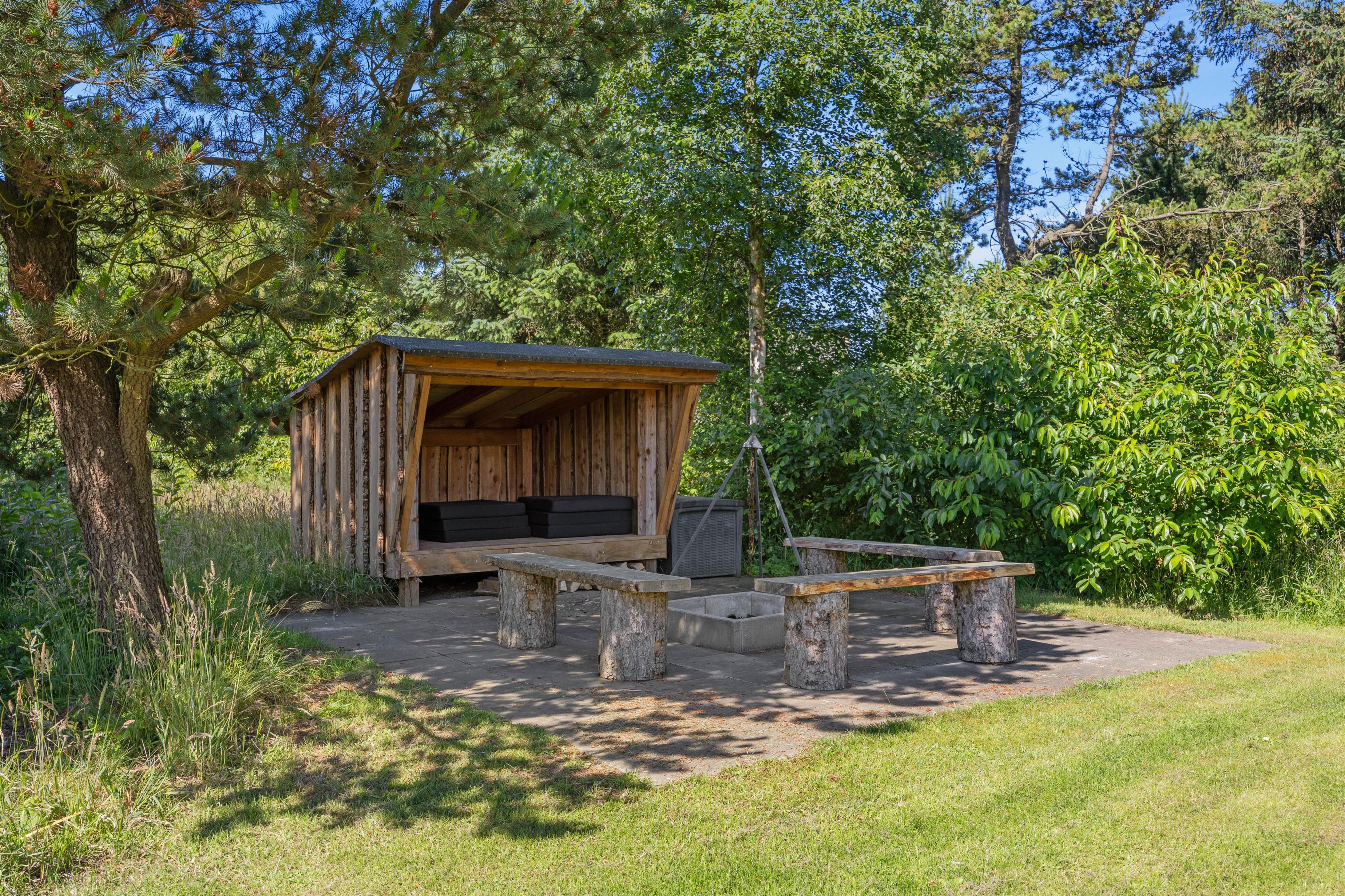 På den 2300 m2 store grund er der også et rigtig friluftsshjørne med shelter, bålplads og bænke. Her kan I bage snobrød over bålet og tælle stjerner, mens I falder hen en dejlig sommeraften.