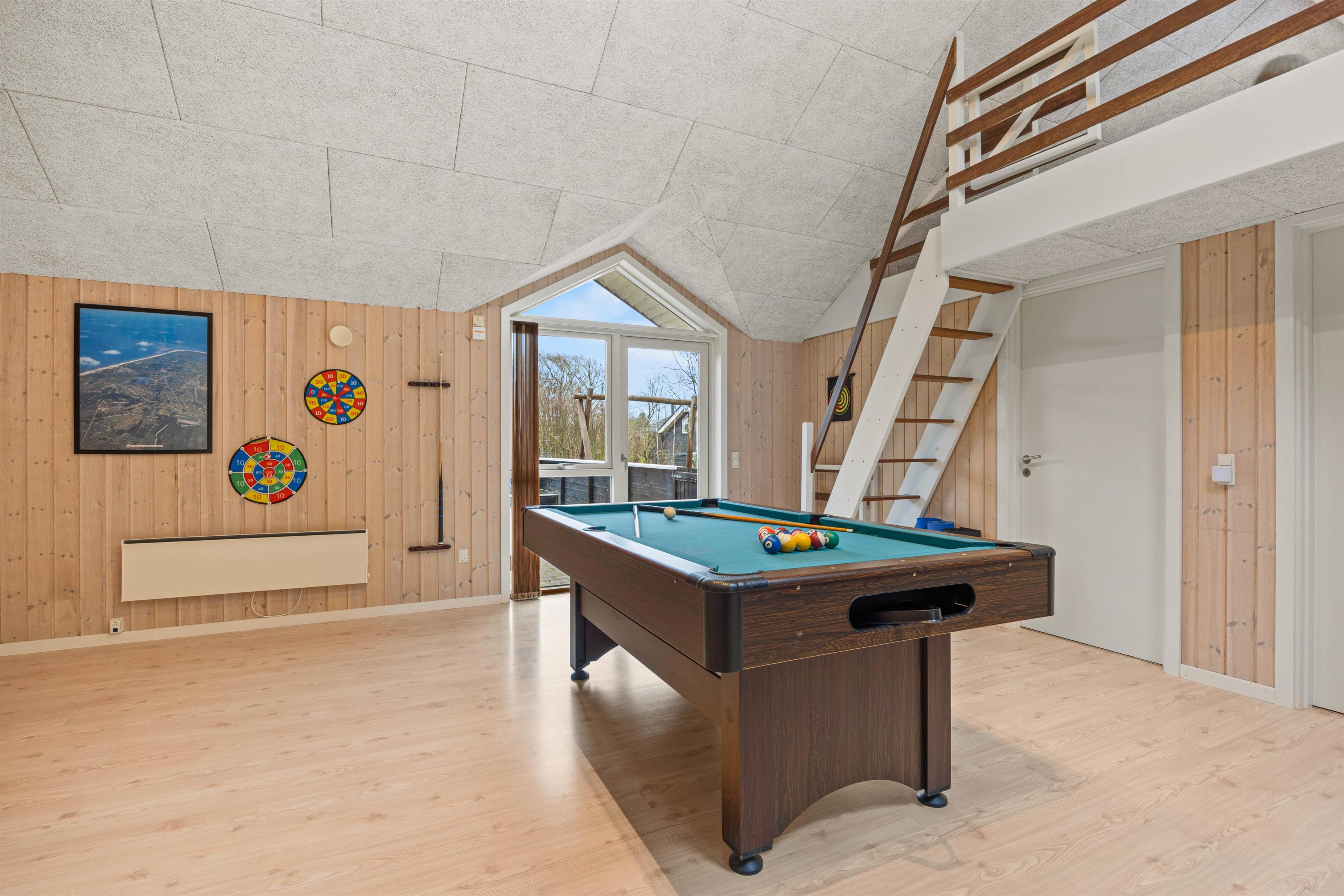 I det flotte aktivitetsrum kan I finde feriens mester i både bordtennis, billard og bordfodbold. Her er også en trappe til hemsen med de skrå vægge, hvor børnene vil elske at lege og sove – der er i øvrigt børnesikring på trappen, så de mindste ikke kan kravle op. Fra aktivitetsrummet er der også udgang til en terrasse.