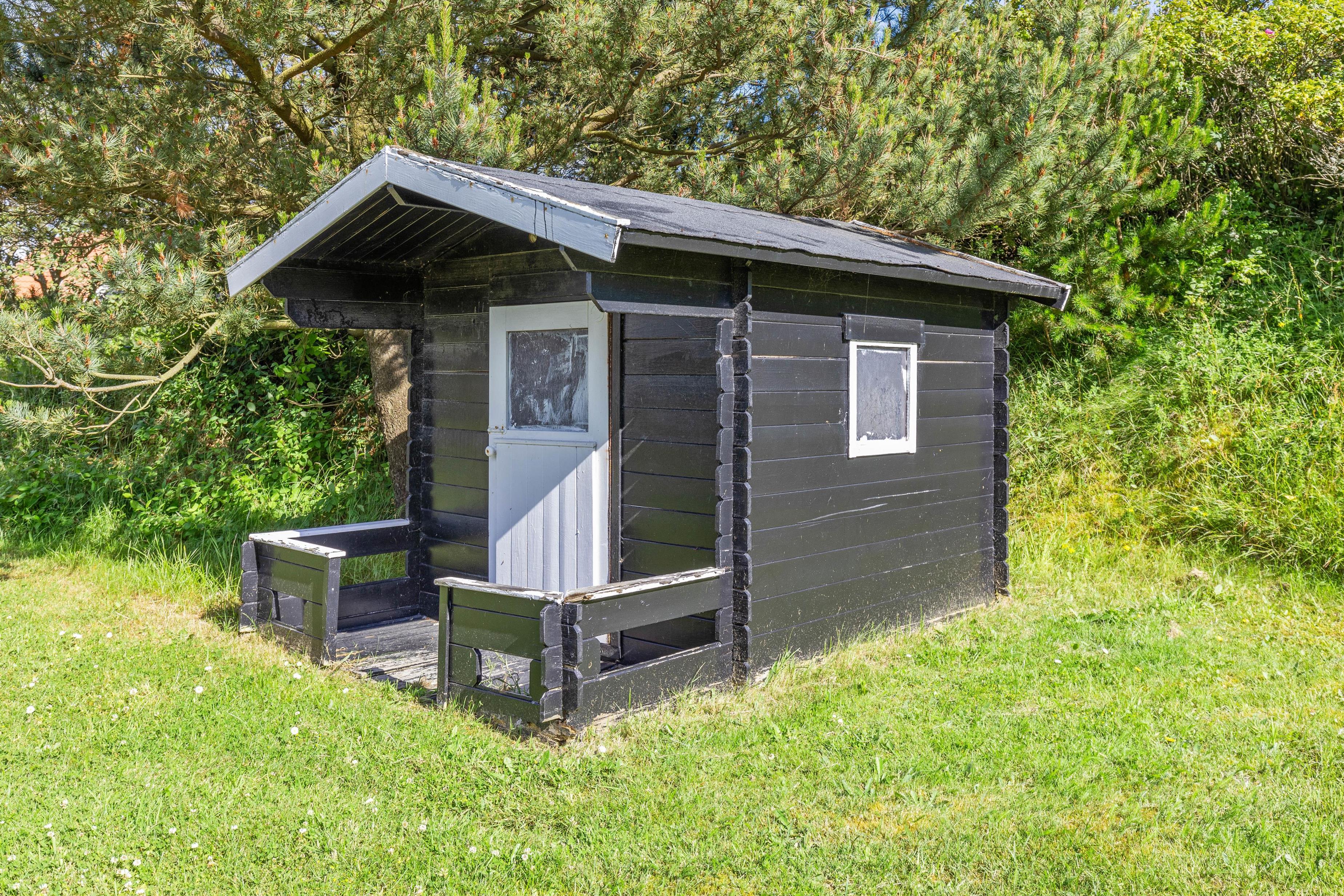 Fra opholdsrummet kan I tilgå terrassen, som er delvist lukket. Her kan I nyde de varme solskinstimer, uanset om I foretrækker at hygge jer i havemøblerne eller dase på solvognene. Imens kan børnene lege på gyngerne, i legehuset eller spille bold på den grønne græsplæne – kun fantasien sætter grænser.