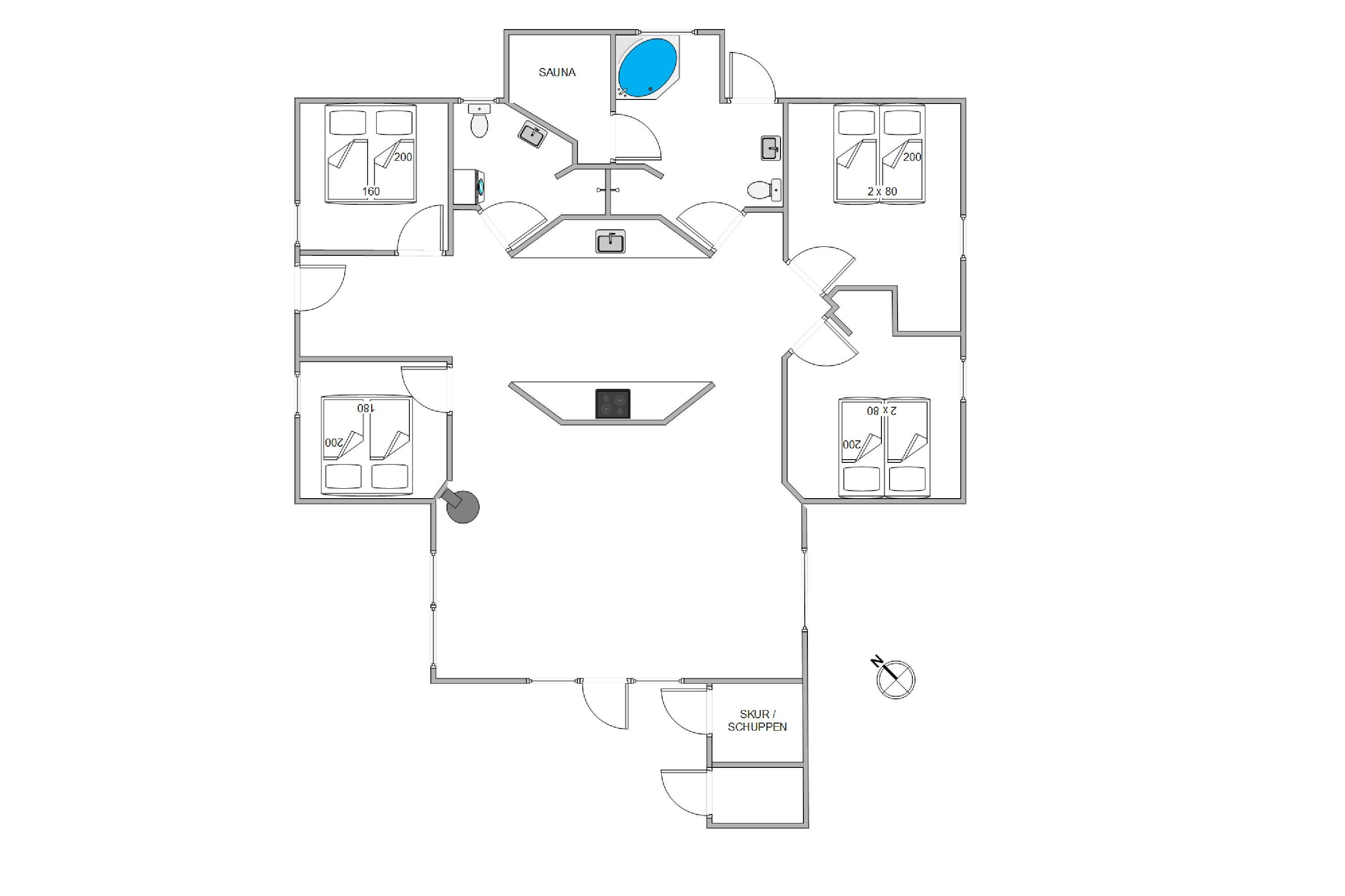 Dette sommerhus på Poul Thøstesensvej 6 er opført i 2021 og er et oplagt valg til familien eller venneflokken, der sætter pris på flotte omgivelser under ferien. En stilfuld, moderne indretning fungerer som rød tråd gennem hele ferieboligen og sikrer, at selv den mest kræsne gæst vil føle sig hjemme på ferieadressen. Som en ekstra bonus er der både sauna og spabad i sommerhuset – så I kan koble fuldstændig af på jeres ferie.