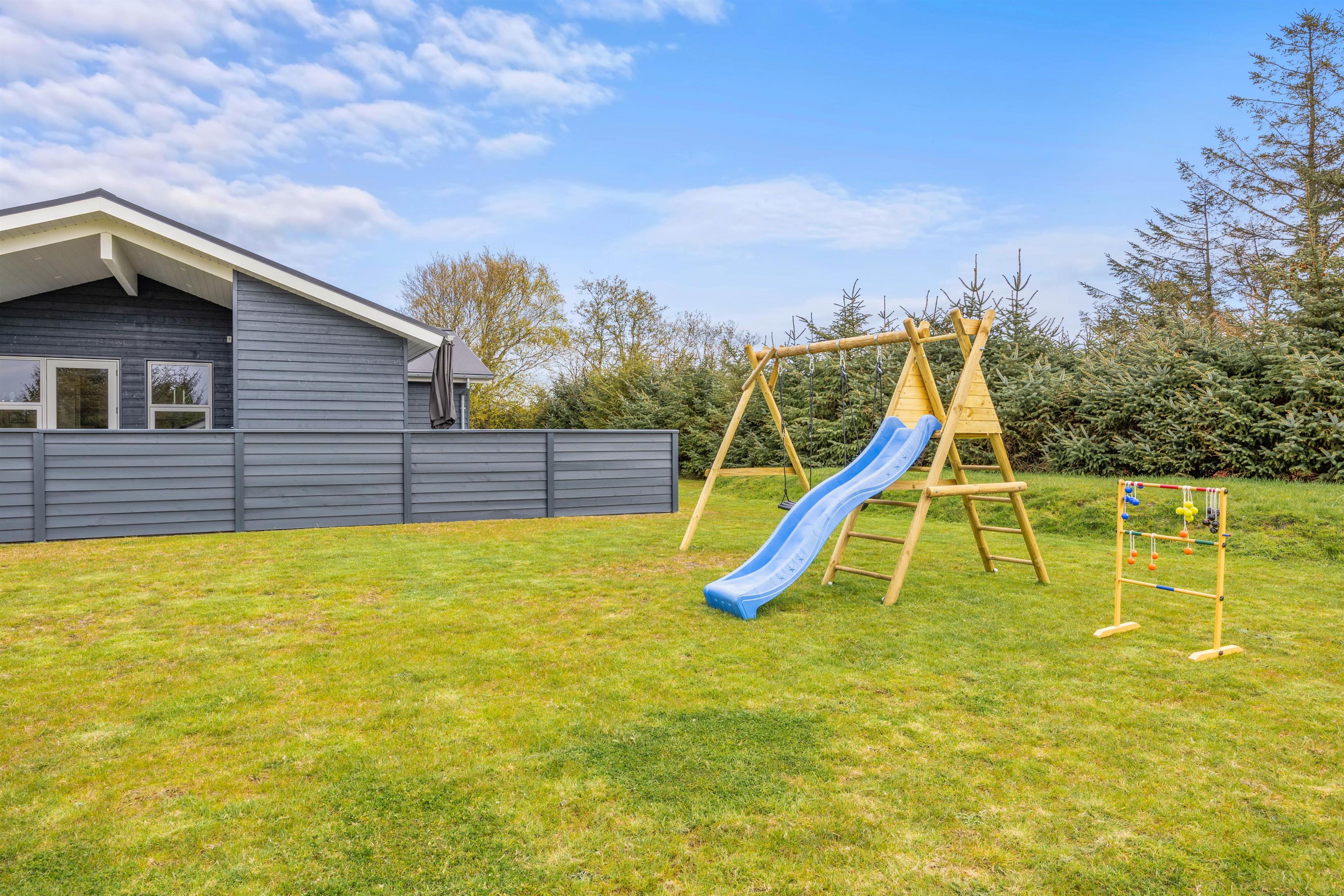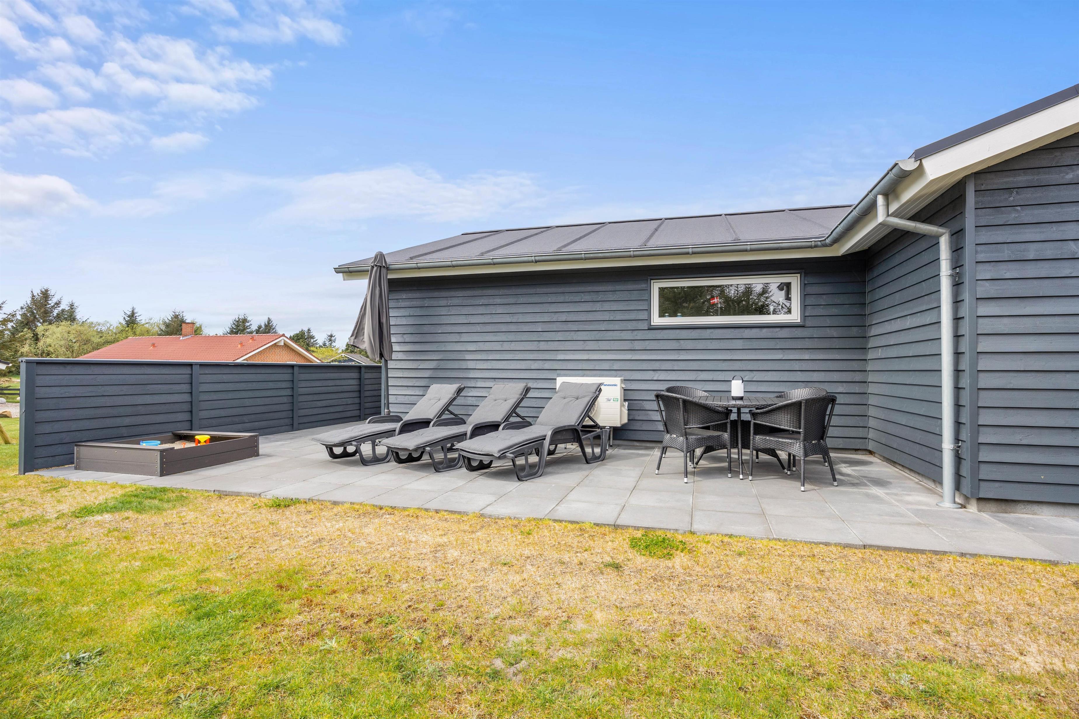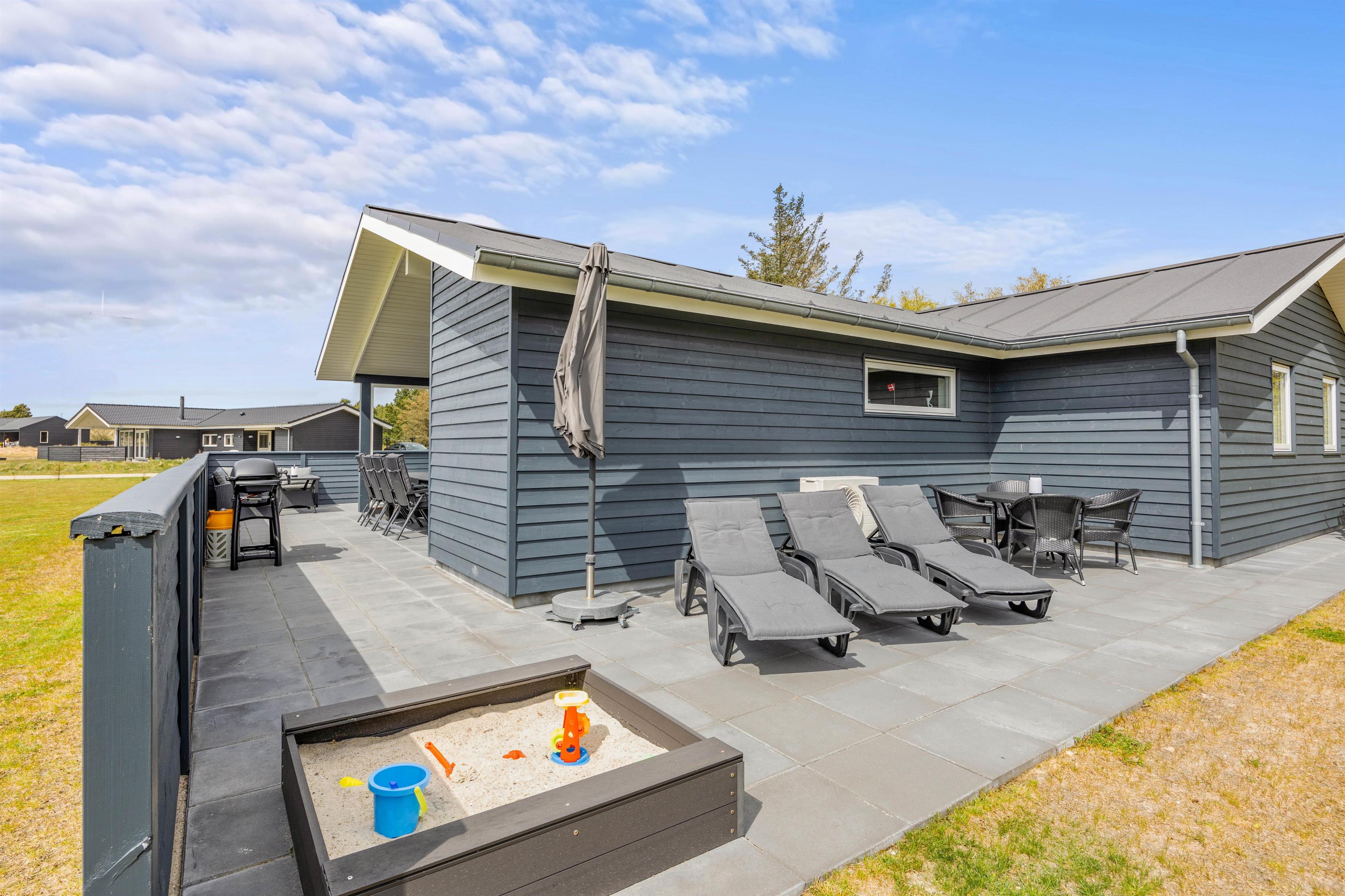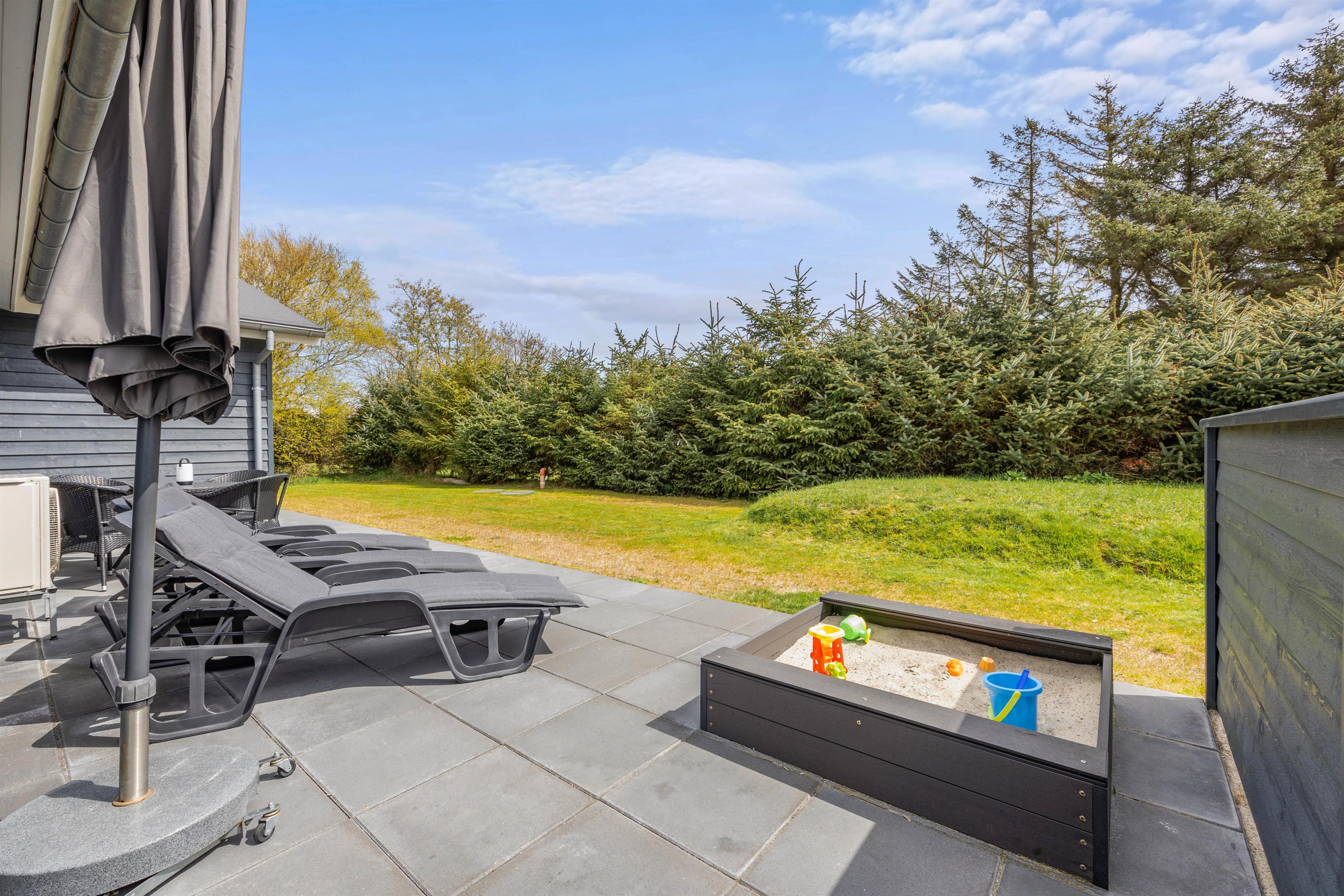 Har I børn med på ferien, vil de helt sikkert glæde sig over sandkassen, hvor de kan være kreative og bygge flotte sandslotte, mens I ser til fra terrassen. Der er sørget for gode havemøbler og liggestole – og ikke mindst en praktisk gasgrill, som gør, at I hurtigt kan tilberede en god middag på grillen.