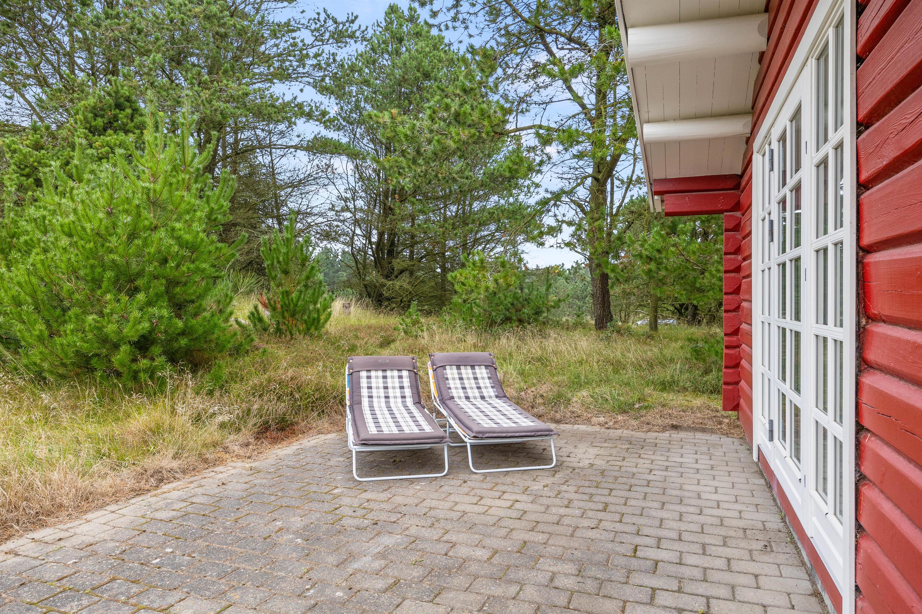 På den åbne terrasse venter husets havemøbler på jer, så I kan koble fra med en god bog i en havestol og lave dejlig feriemad på gasgrillen – eller bare sidde og nyde roen på den store naturgrund, hvor I kan være heldige at få besøg af bl.a. rådyr. Bemærk venligst i denne sammenhæng, at markisen over terrassen kun er til privat brug.