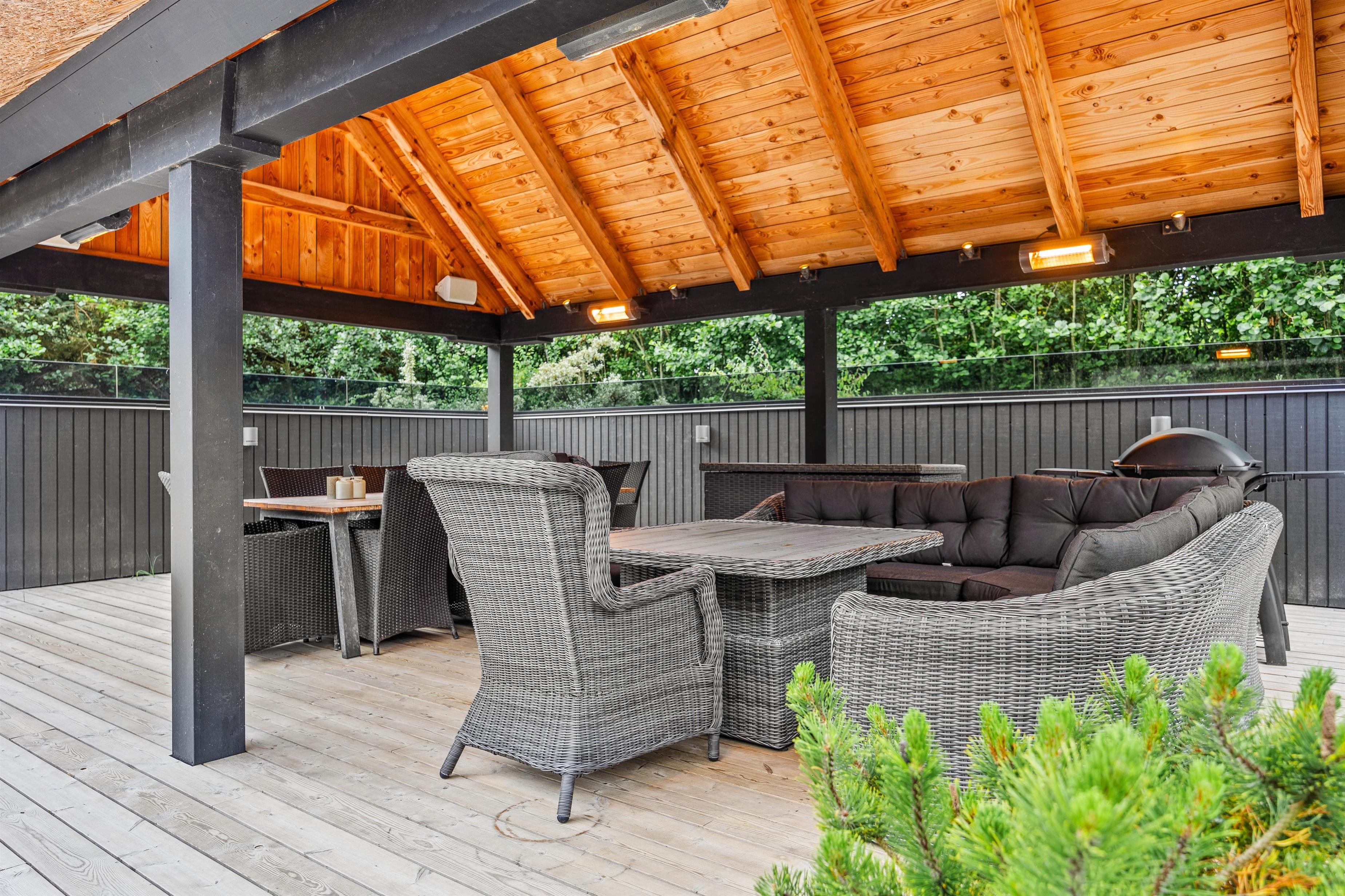 Udeområdet er skønt med et areal på hele 1471 m² - en naturgrund med komfortable havemøbler venter kun på jer, og det store anlæg omfatter også en åben, men afskærmet og delvist overdækket terrasse, så I kan hygge jer i det fri i al slags vejr med lækker mad tilberedt på gasgrillen.
