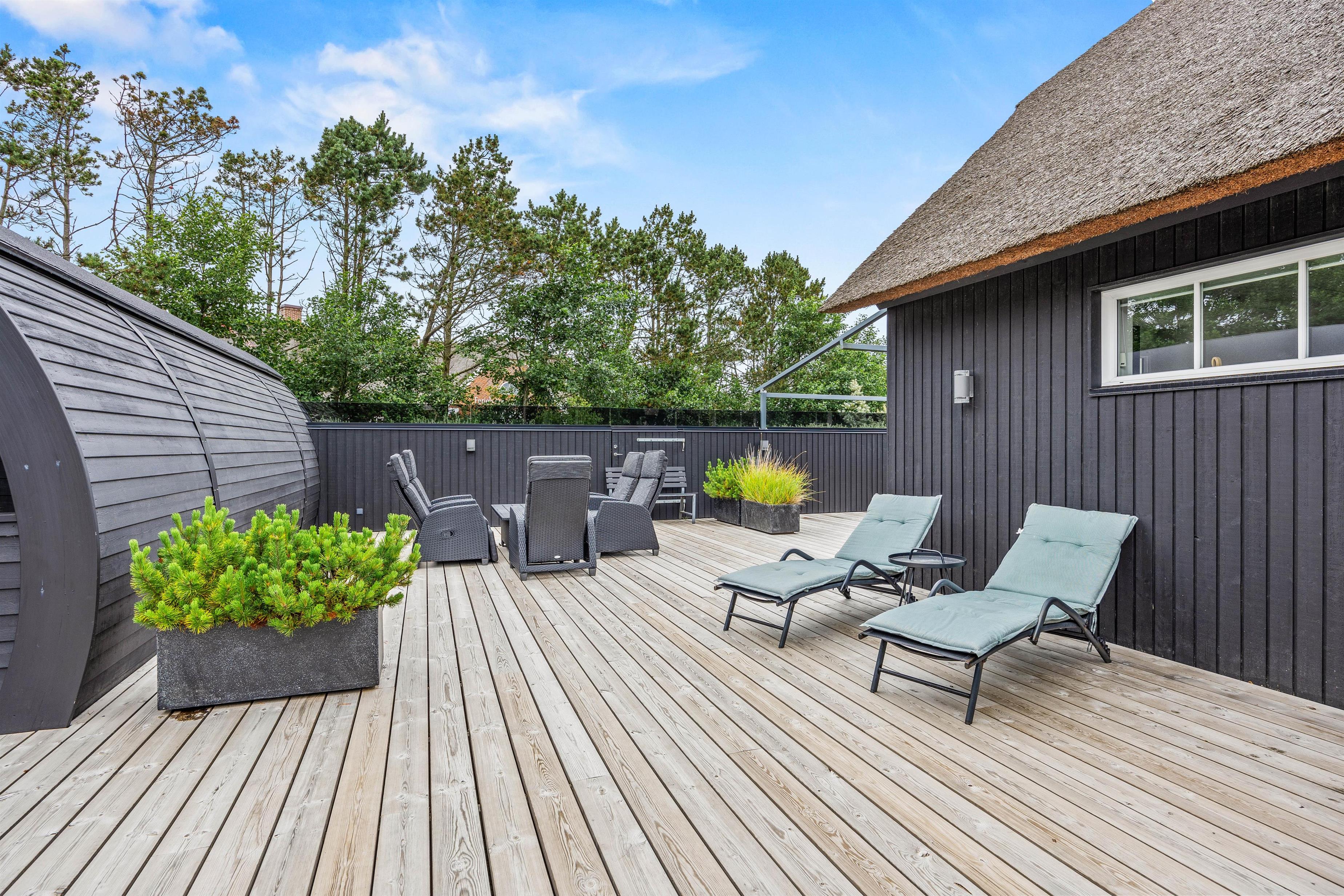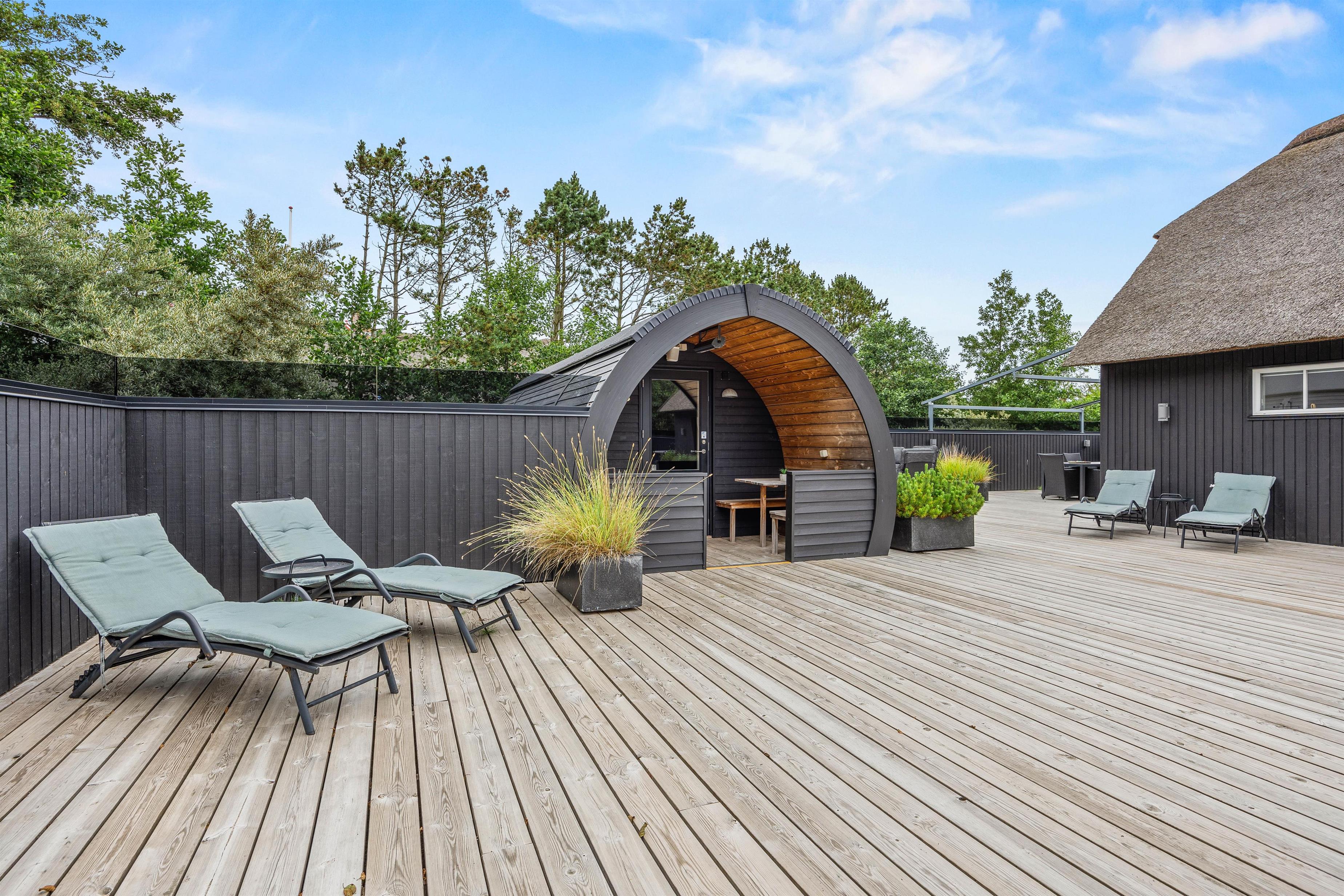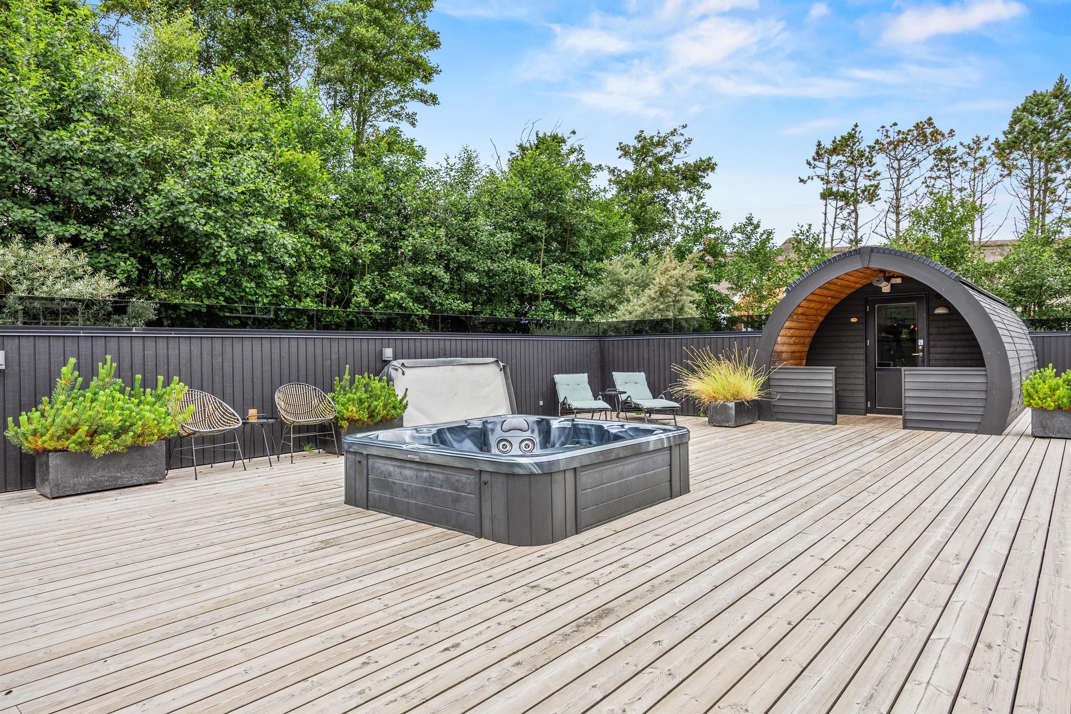 Højdepunktet er helt sikkert udespaen - herfra kan I efter mørkets frembrud nyde den fascinerende, klare stjernehimmel over Blåvand og få blødt kroppen op. Fra 1. april til 31. oktober står desuden en udebruser til jeres rådighed.