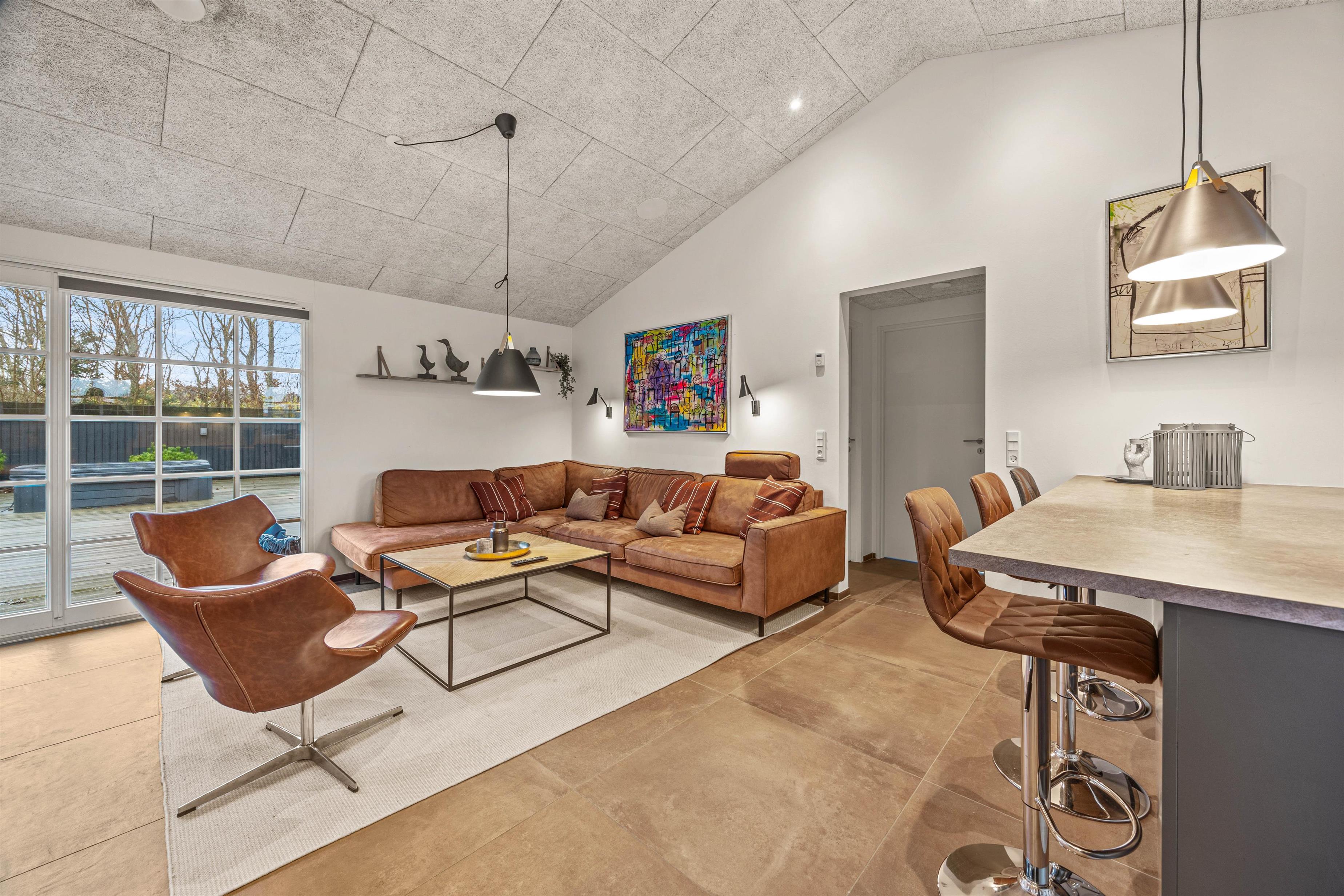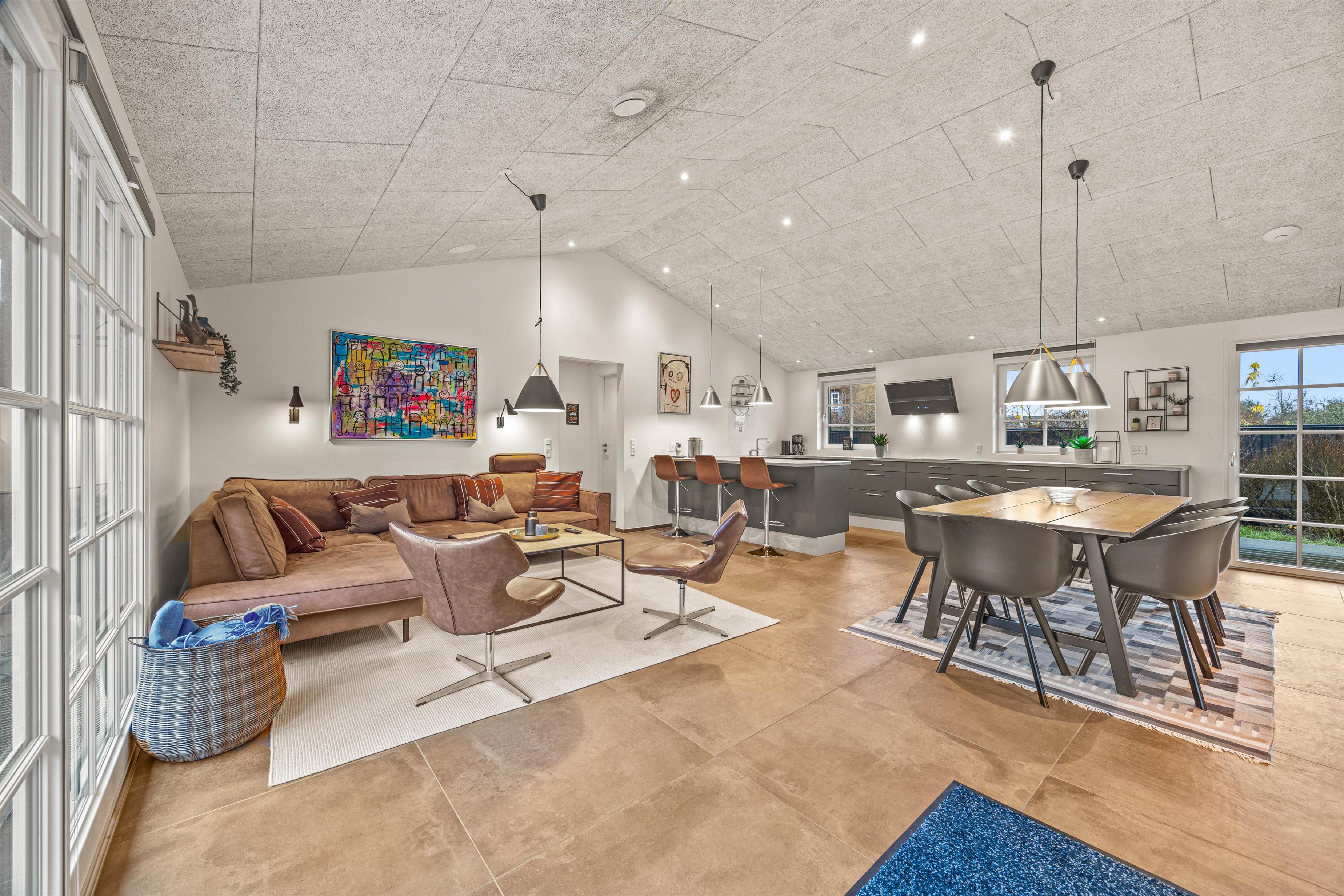 Det åbne og moderne køkken tilbyder bekvemmeligheder som en mikroovn, opvaskemaskine og en 90-liters fryser, som gør jeres ophold endnu mere afslappende, og i den dejlige stue kan I alle mødes til fælles hygge, både over lækker feriemad og i sofaen.