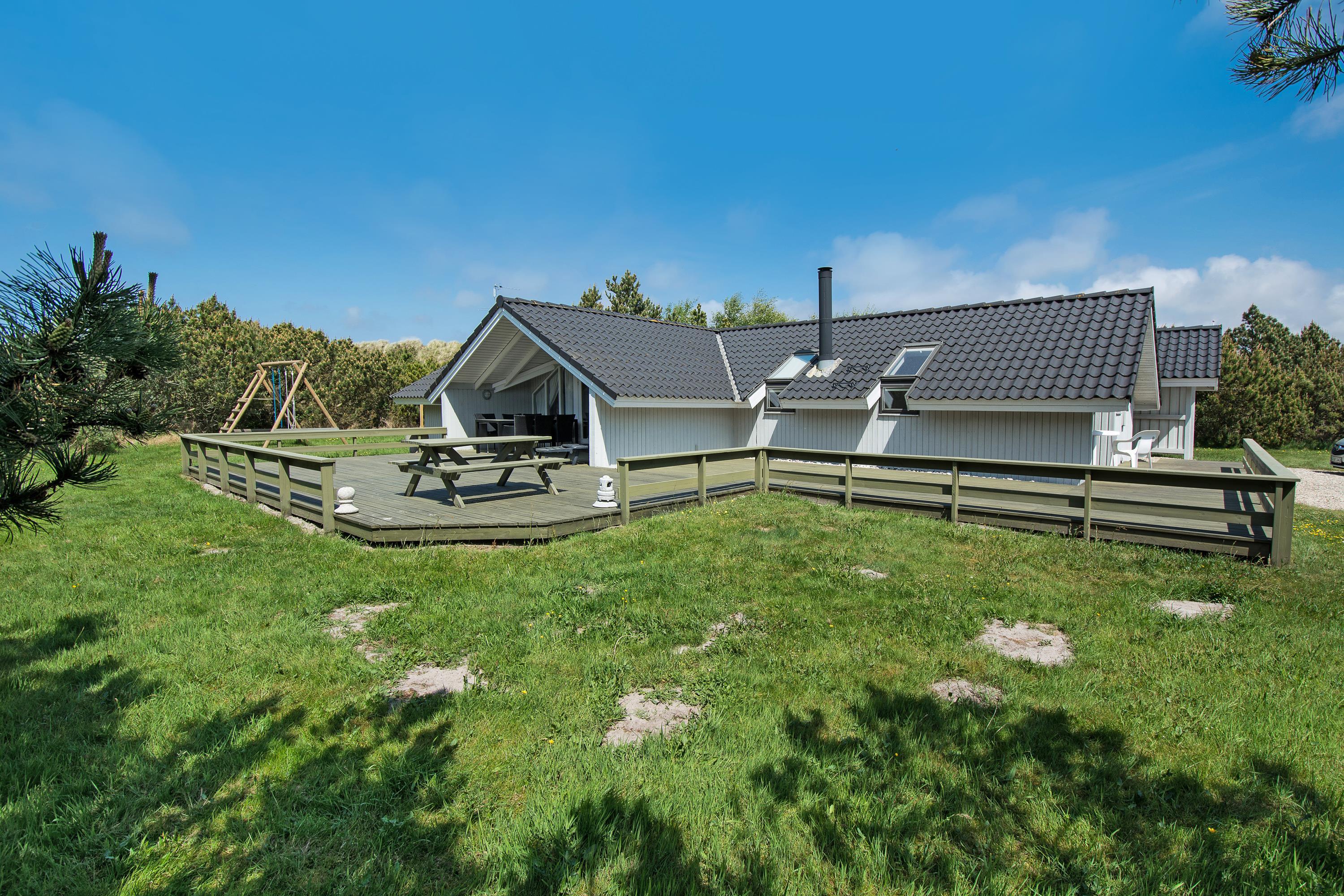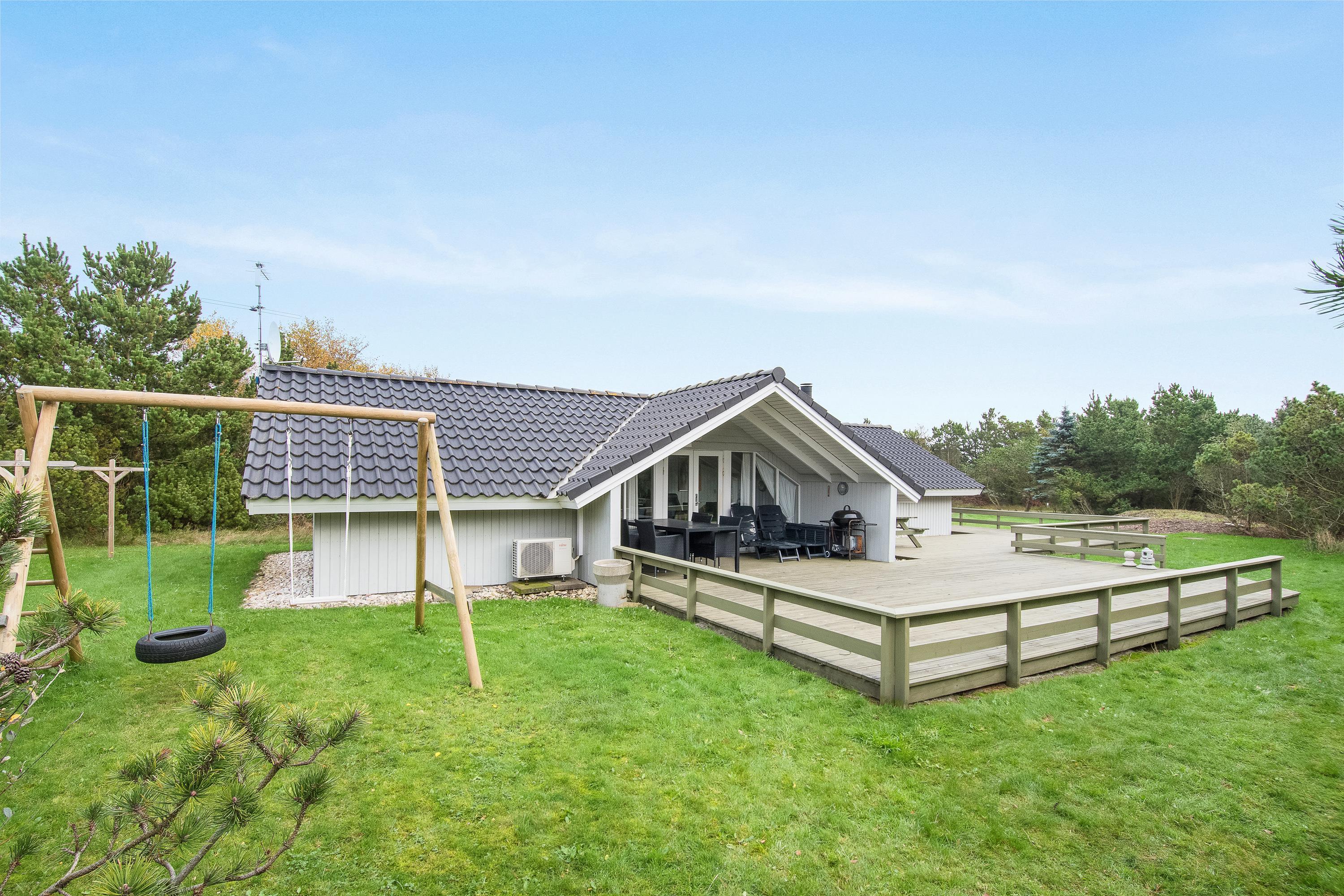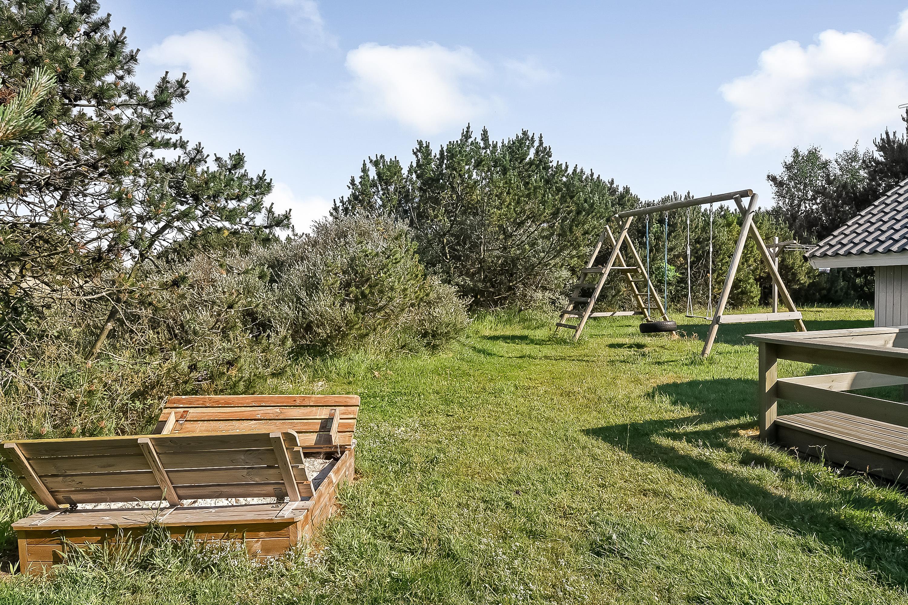 Den store have er et ekstra plus, og her står en sandkasse og et gyngestativ også klar til børnene. Tager I hundene med, kan I også roligt lade dem tumle på den store græsplæne.