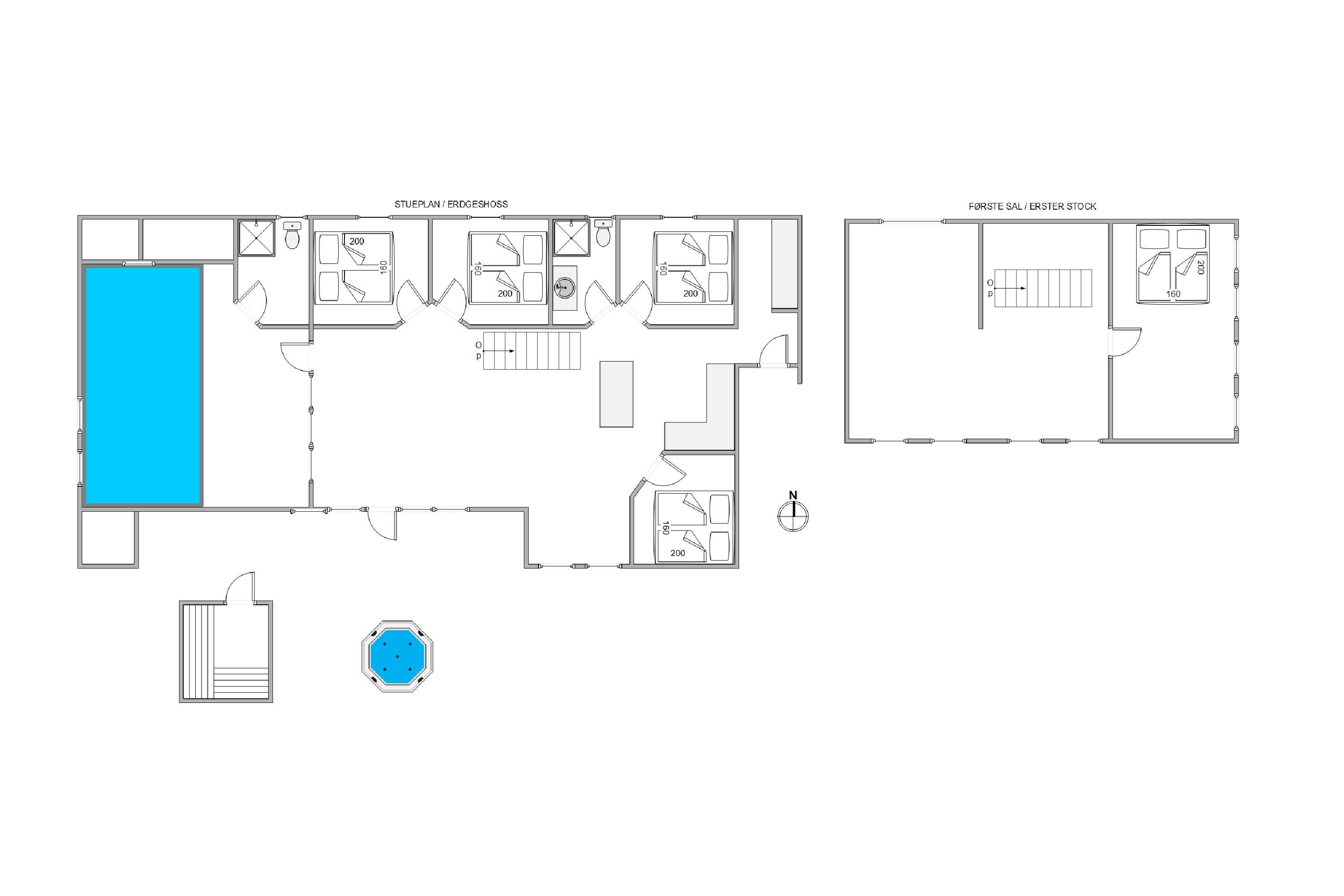 Husets highlight er den 19 kvadratmeter store swimmingpool, der lover både sjov og afslapning. Dertil er der også en udendørs jacuzzi og en sauna, som giver mulighed for ren velvære. Børnene vil elske trampolinen, gyngen og sandkassen i haven og finde timevis af underholdning. De forskellige terrasser – herunder en overdækket og en lukket – giver jer mulighed for at nyde hyggelige grillmiddage med de tilgængelige havemøbler.
