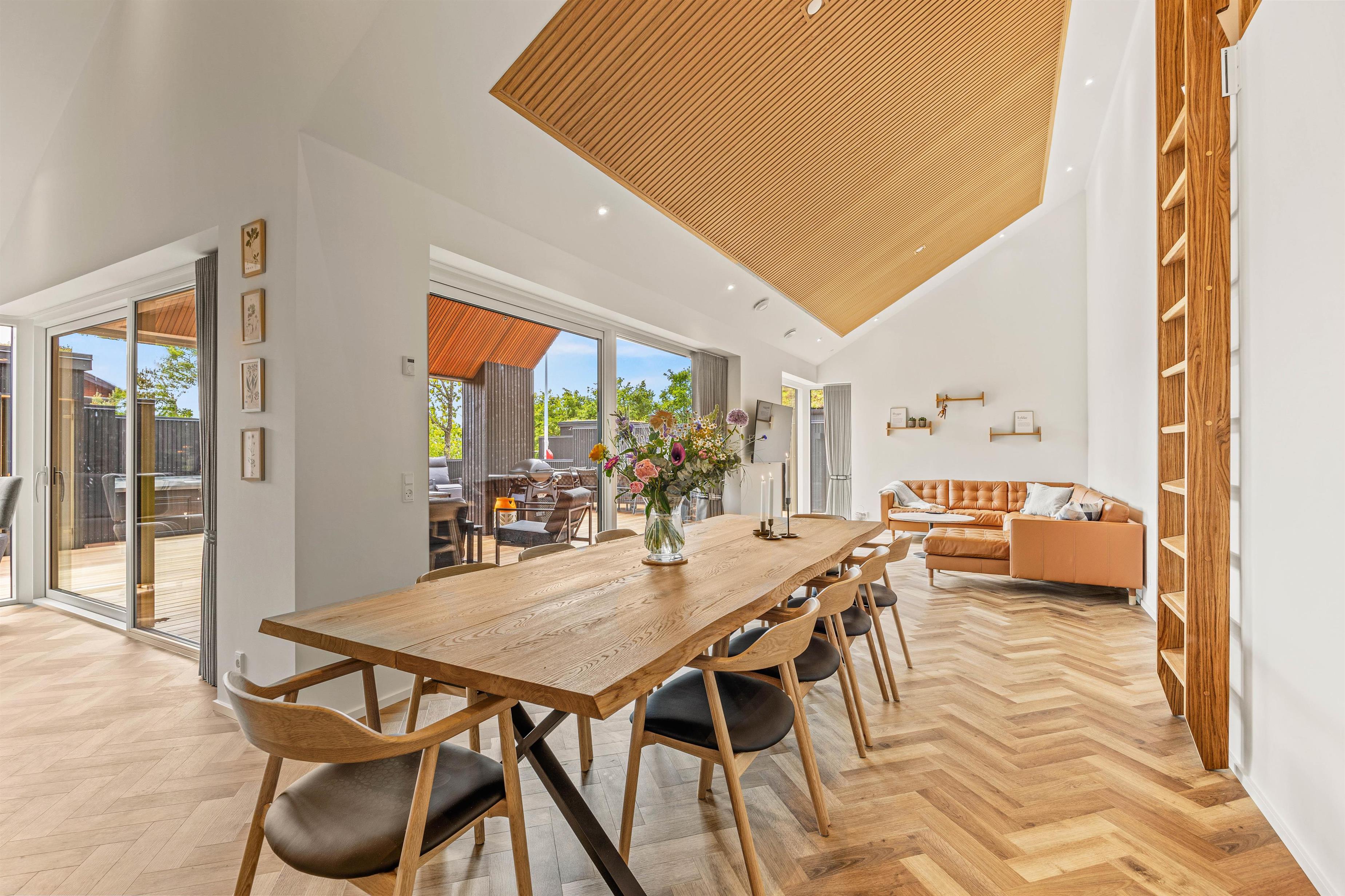 Hjerterummet er det åbne alrum, hvor køkken og stue smelter sammen. Her er lyst og indbydende og god plads til familielivet – uanset om I skal lave dejlig mad i det veludstyrede køkken, spille brætspil eller slappe af i sofaen med en god film. Fra det rummelige alrum er der direkte udgang til den fantastiske terrasse.