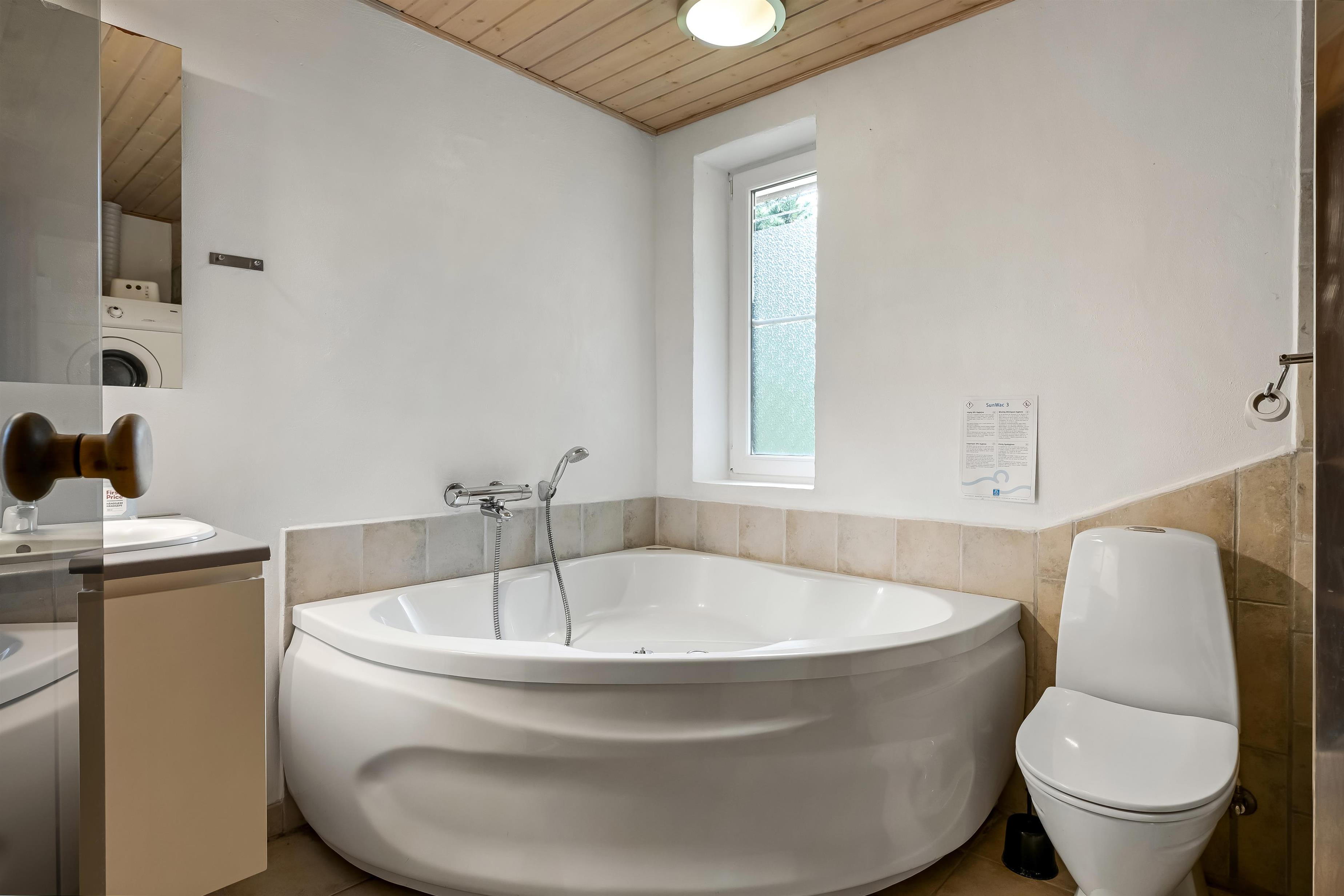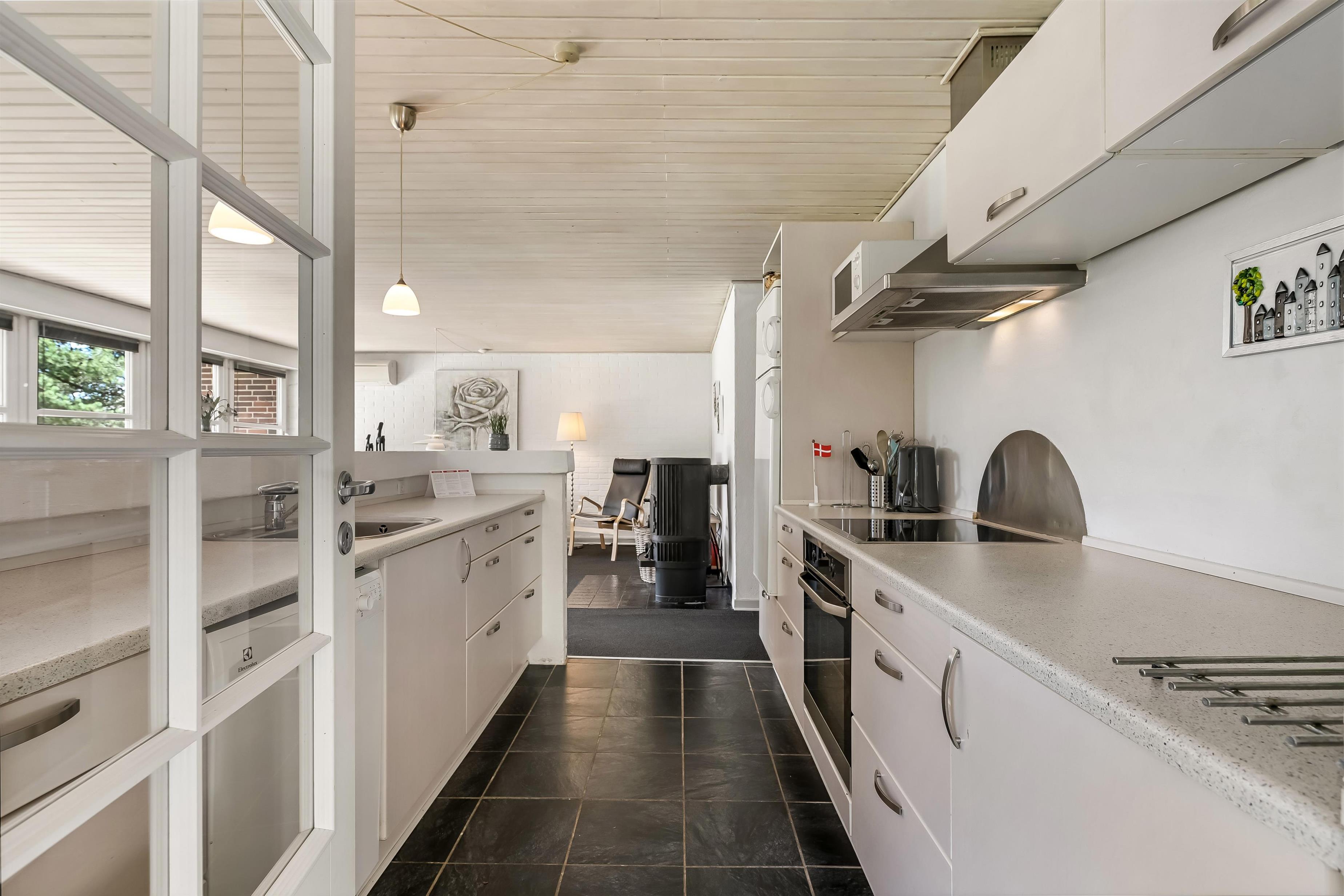 Gulvvarmen i badeværelset holder jeres fødder lune selv på koldere dage, og vaskemaskine, tørretumbler og en innovativ varmepumpe står til jeres rådighed og giver jer ekstra komfort, så I får et stressfrit ophold. Ladestationen til elbiler gør det også nemt og bekvemt at oplade dit køretøj.