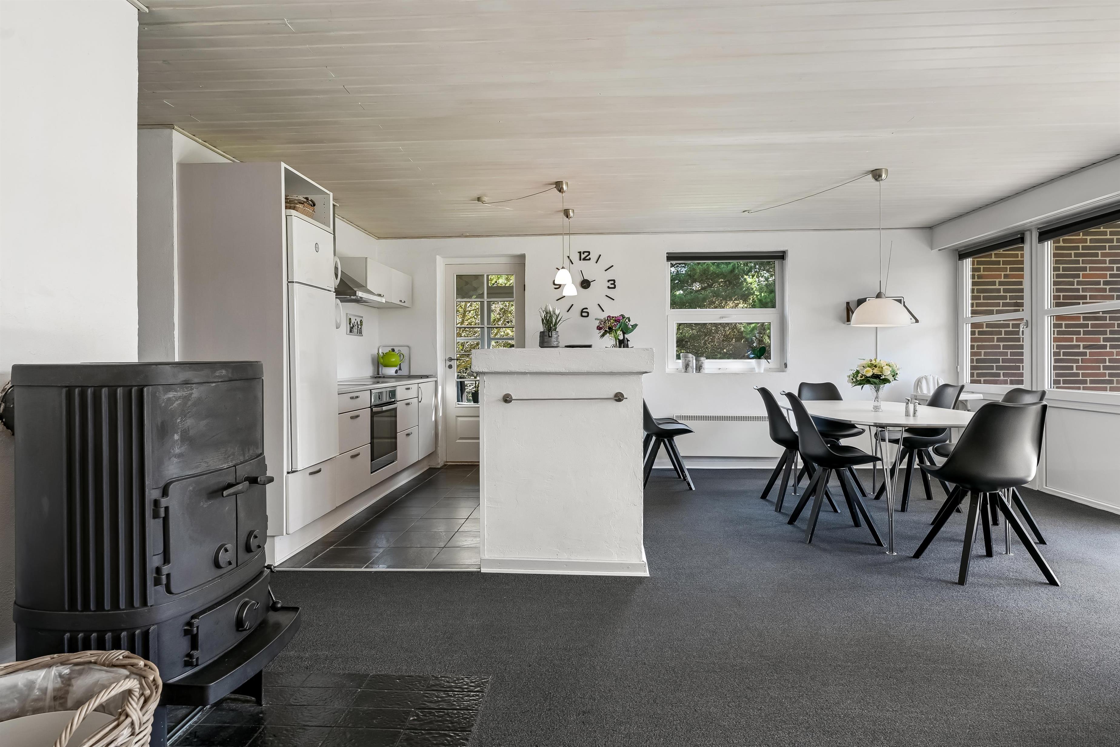 Med sine 106 kvadratmeter tilbyder sommerhuset i Blåvand plads til op til 6 personer, hvilket er idéelt til en familieferie eller en udflugt med venner. 3 smagfuldt indrettede soveværelser med 1 dobbeltseng og 4 enkeltsenge sikrer jer en god nats søvn, og den rummelige stue med den effektive brændeovn er perfekt til at tilbringe hyggelige timer i, efter at I har hygget jer med at tilberede måltider sammen i det veludstyrede køkken. Her finder I også en opvaskemaskine og en moderne 60-liters fryser.