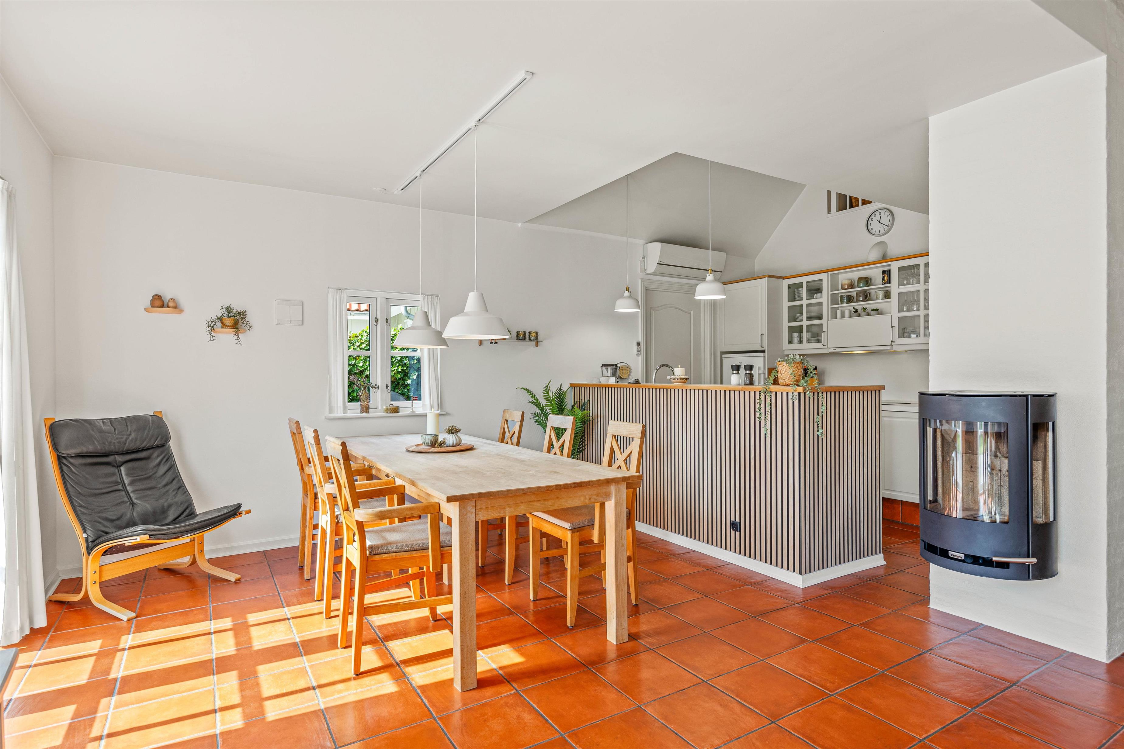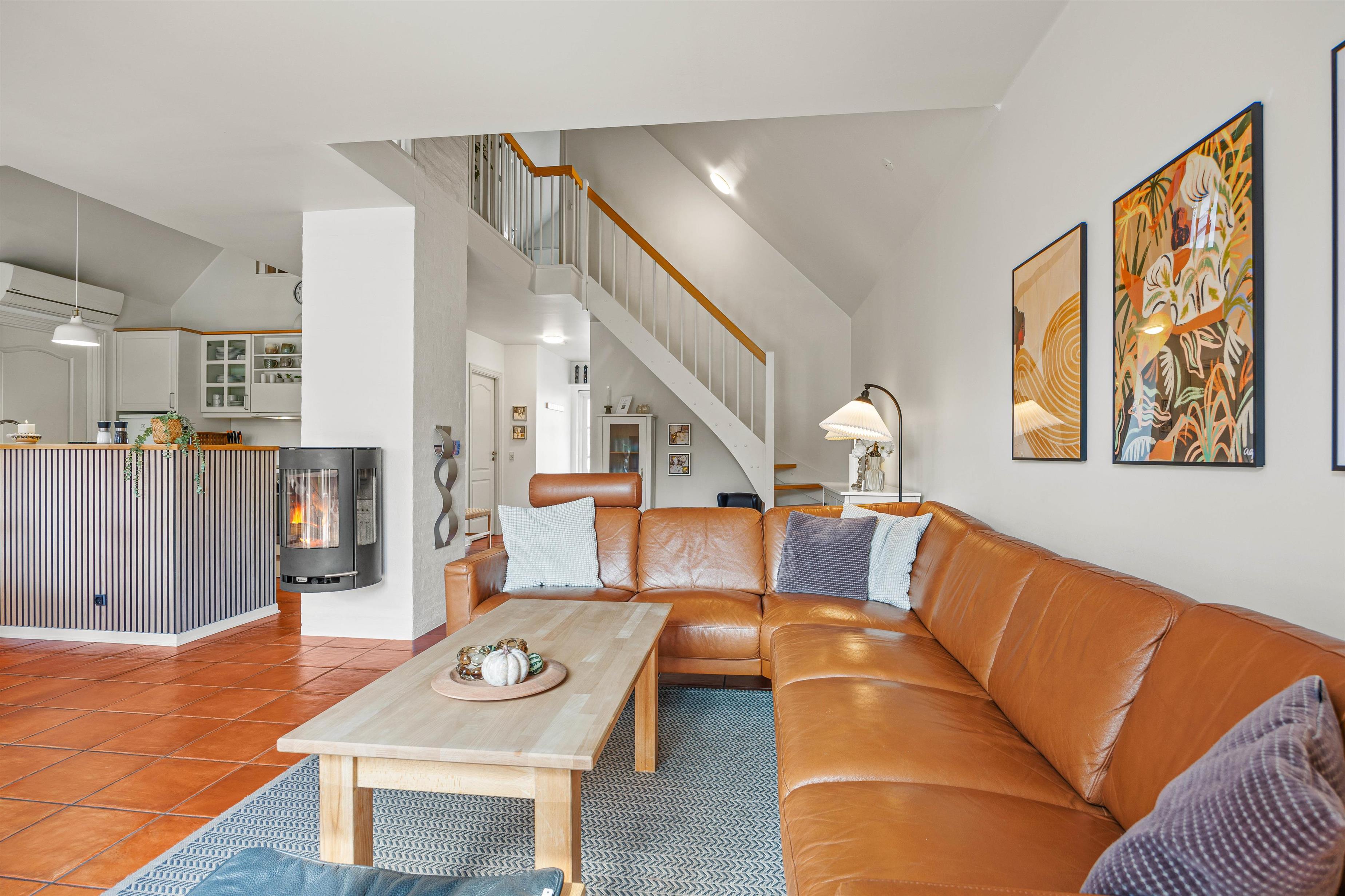 Opholdsstuen ligger også i stueetagen, og her vil I uden tvivl tilbringe mange timer sammen. I kan sætte jer godt til rette i sofaerne, mens I streamer film via Chromecasten – for ekstra god lyd til jeres yndlingsfilm kan I oprette forbindelse til soundbaren, som I også kan spille musik gennem. Skal der i stedet skrues op for den hyggelige stemning, kan I tænde op i brændeovnen.