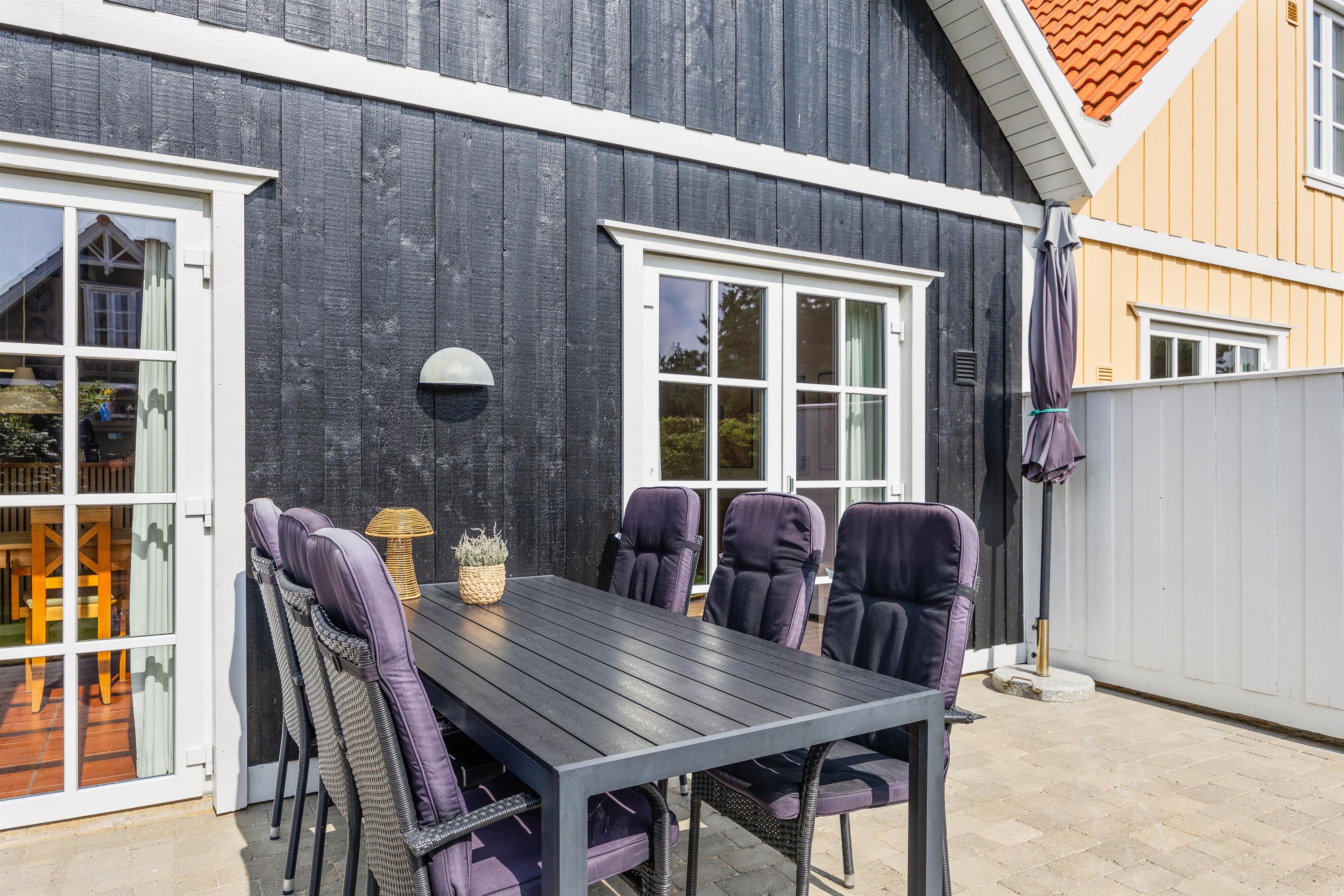 På de varme, solskinsfyldte feriedage skal I selvfølgelig udenfor. Ryk ud på terrassen, hvor I kan finde jer godt til rette i liggestole og havemøbler (bemærk blot, at havemøblerne er fjernet i vintermånederne). Terrassen er godt afskærmet af et hegn med slyngplanter og ligger godt for solen, så I kan have glæde af den det meste af dagen. Om aftenen kan I finde grillen frem og nyde en lækker middag med røde bøffer og god vin.