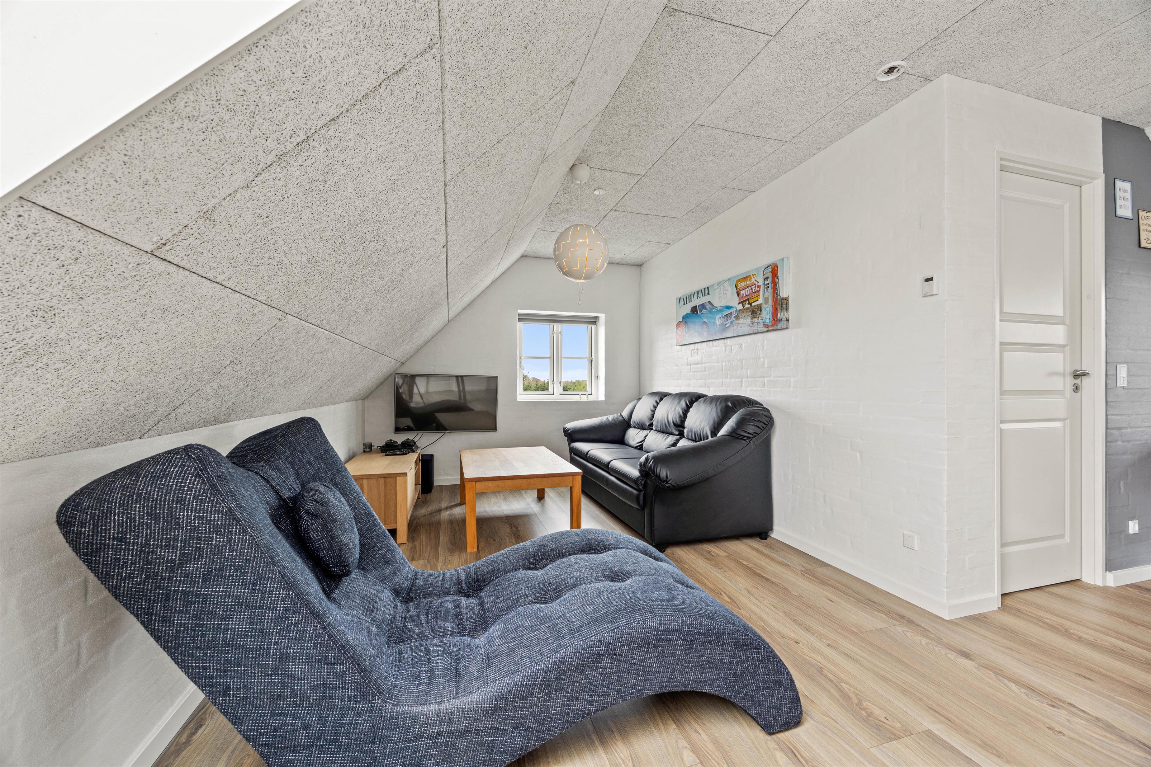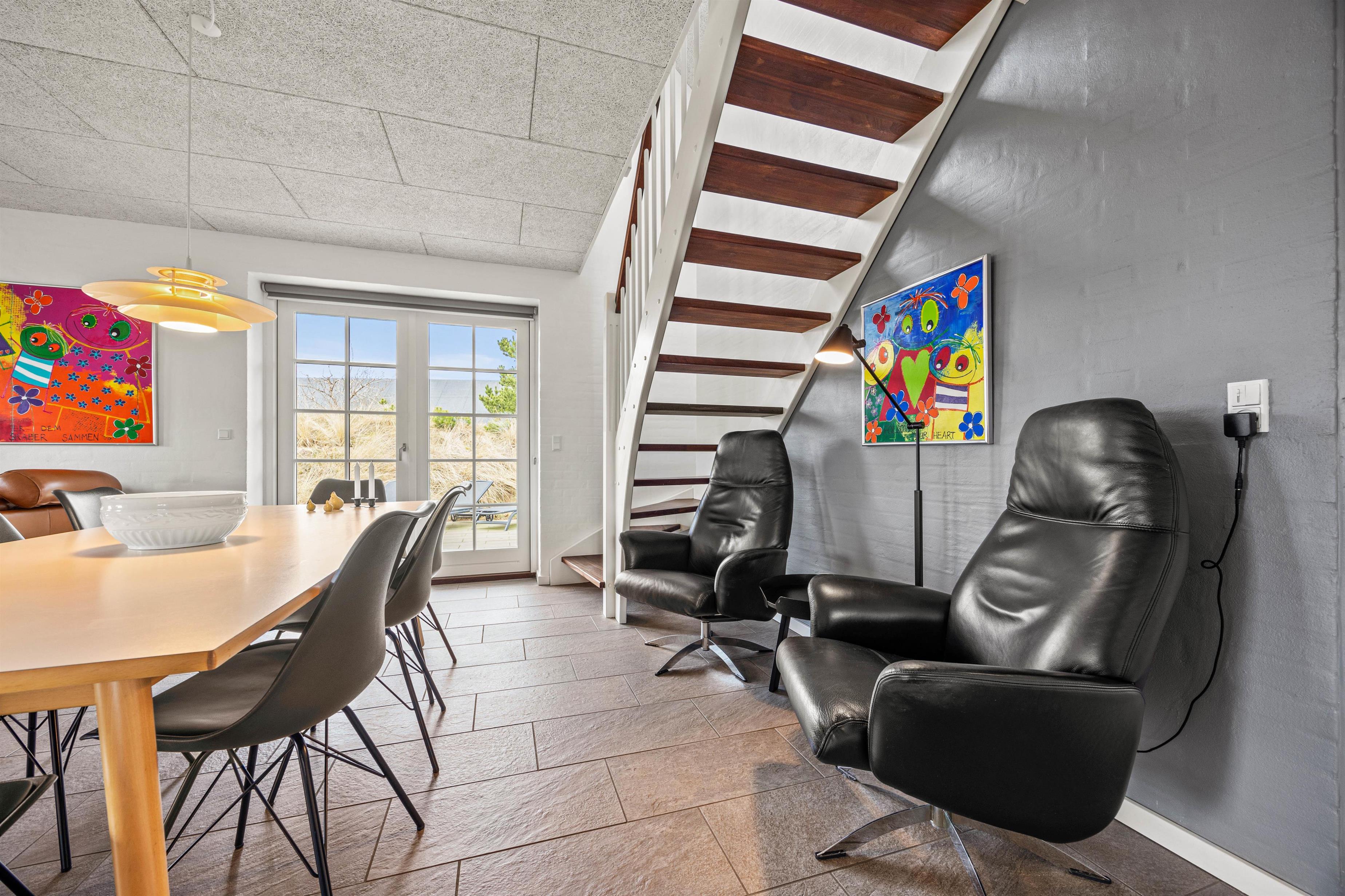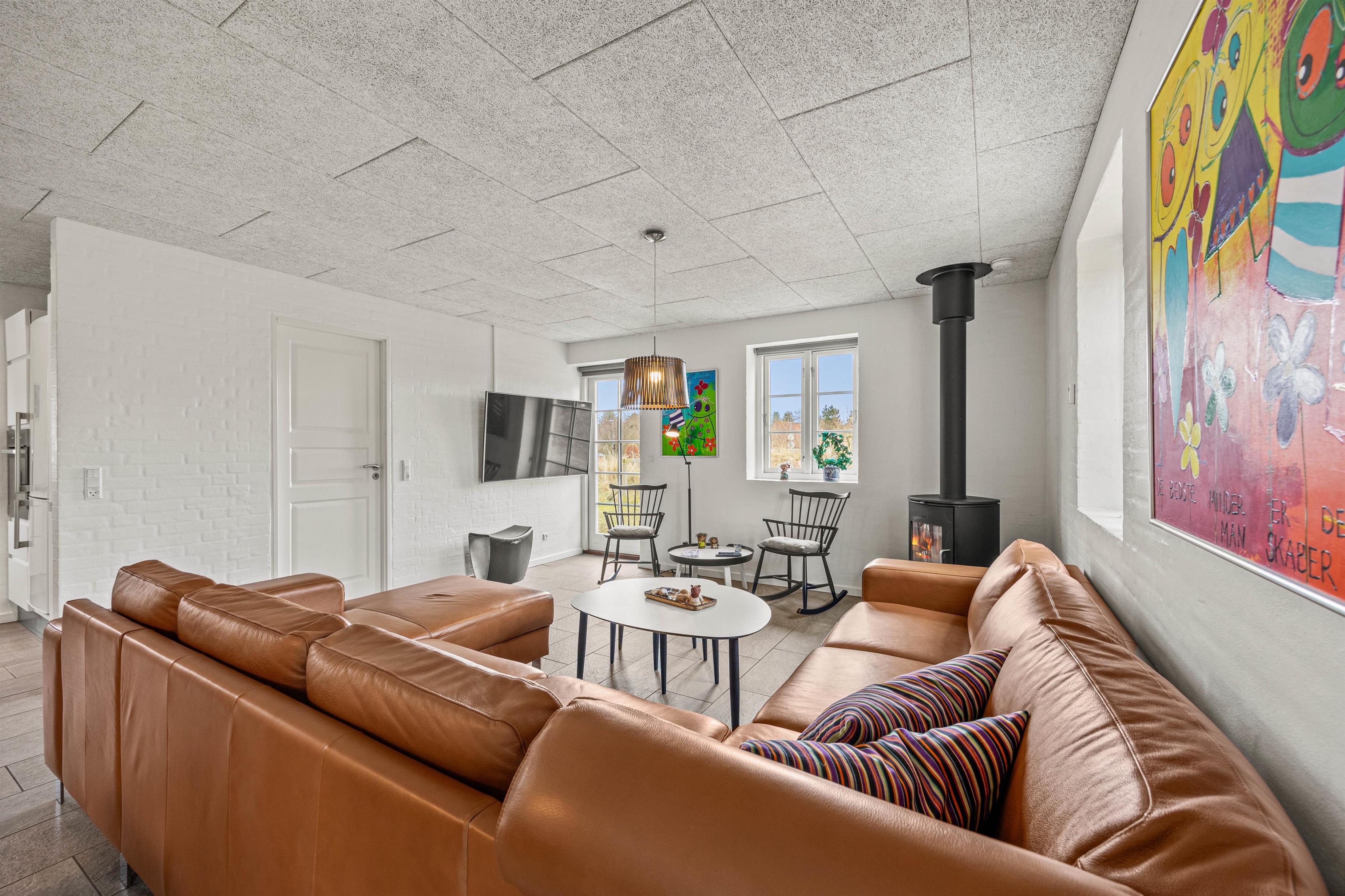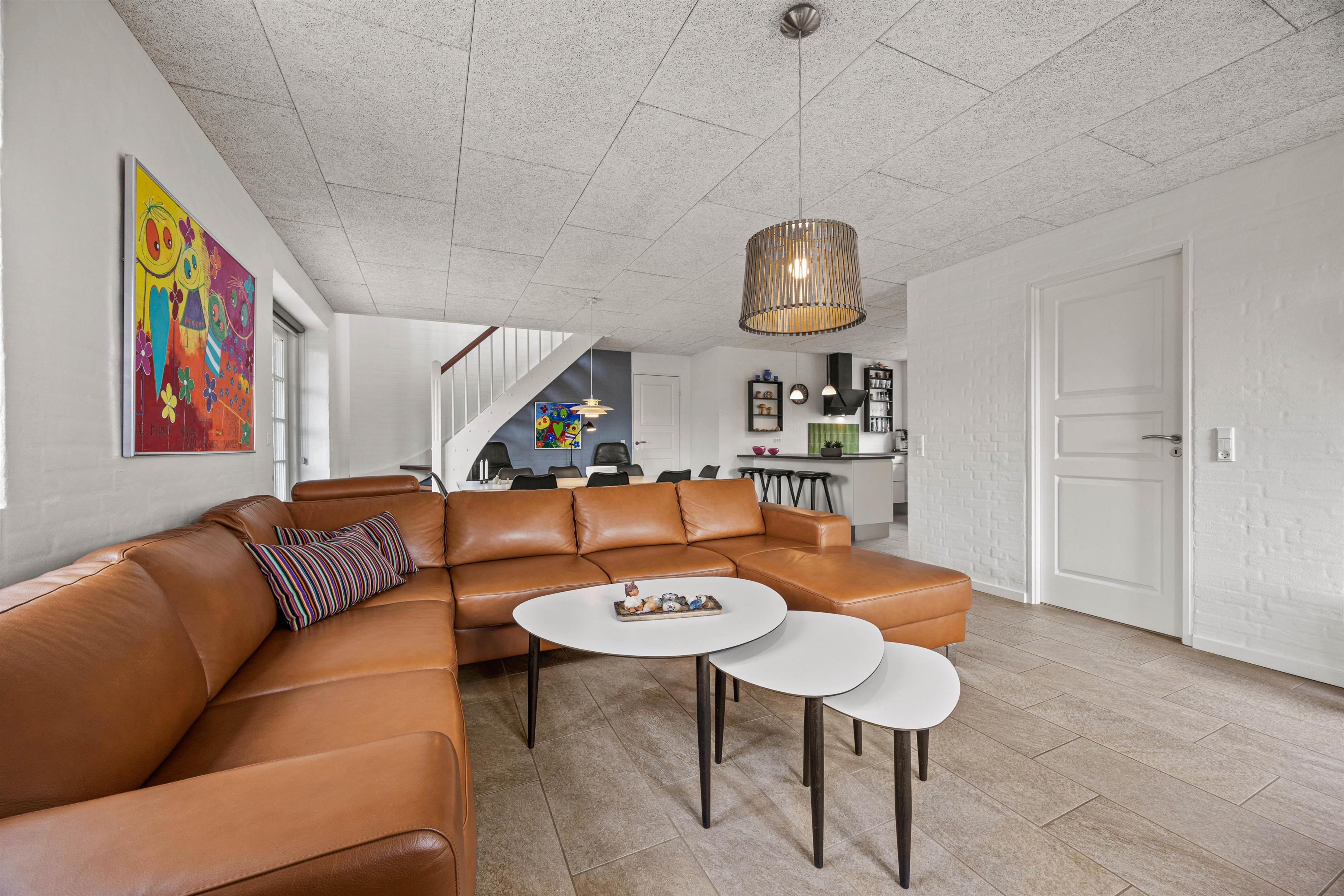 Opholdsområdet er den sociale nerve, der forener alle - det er perfekt til hyggelige aftener med de nærmeste. Her kan I samles, få inspirerede samtaler eller bare nyde den rolige atmosfære sammen, måske over en kold, lokal øl eller et glas koldt hvidvin.