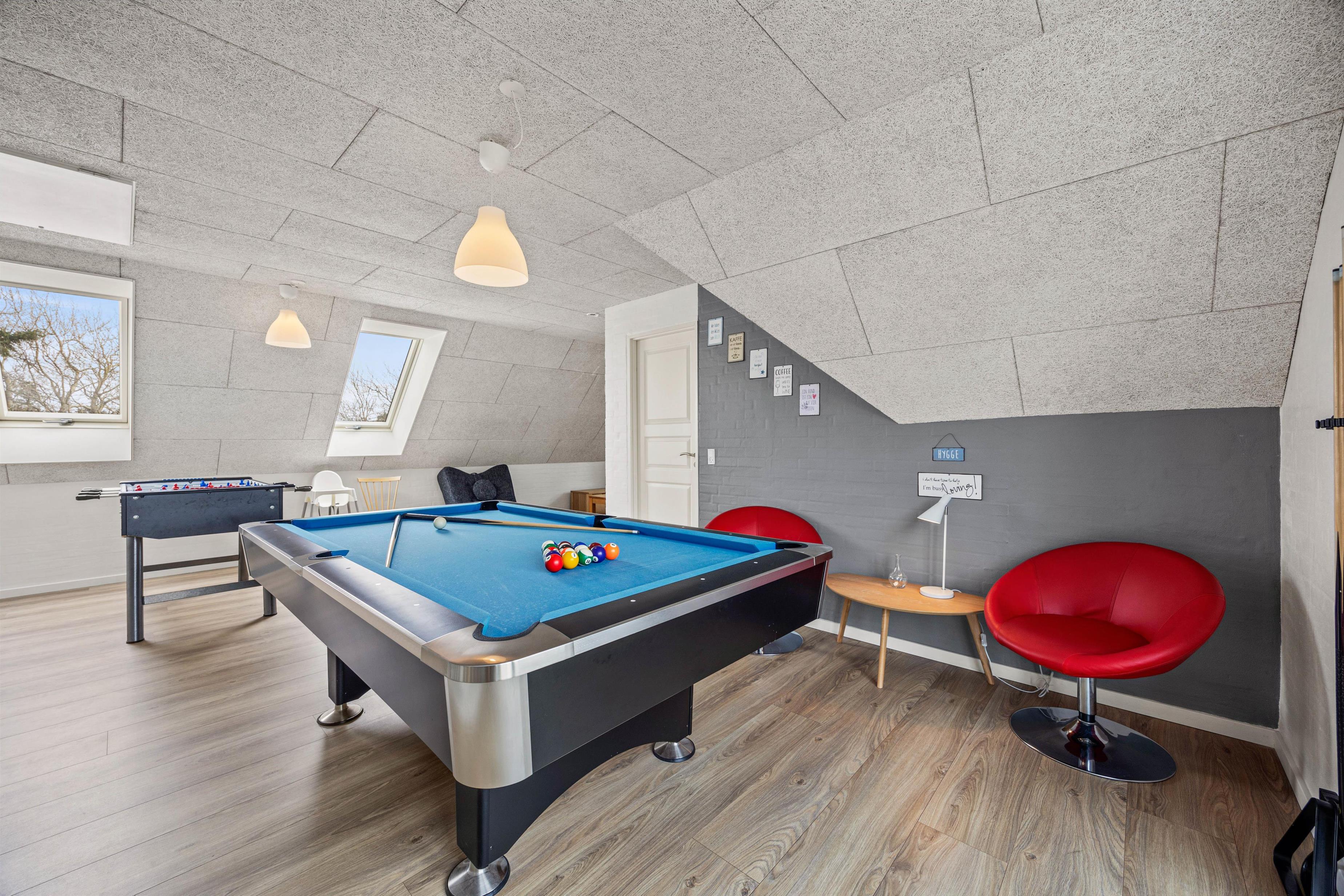 Sommerhusets højdepunkt er uden tvivl det omfattende aktivitetsområde. Forkæl jer selv i den udendørs jacuzzi eller nyd varmen i den udendørs sauna. For dem, der elsker aktivitet, er der et billardbord til spændende spilleaftener. Feriehuset er det perfekte sted at være både aktiv og samtidig lade sjælen finde ro - her kan hver gæst finde sin egen lille plet af lykke, hvor fællesskab og individuel afslapning går hånd i hånd. I dagene her er der tid til fordybelse såvel som fornøjelse.